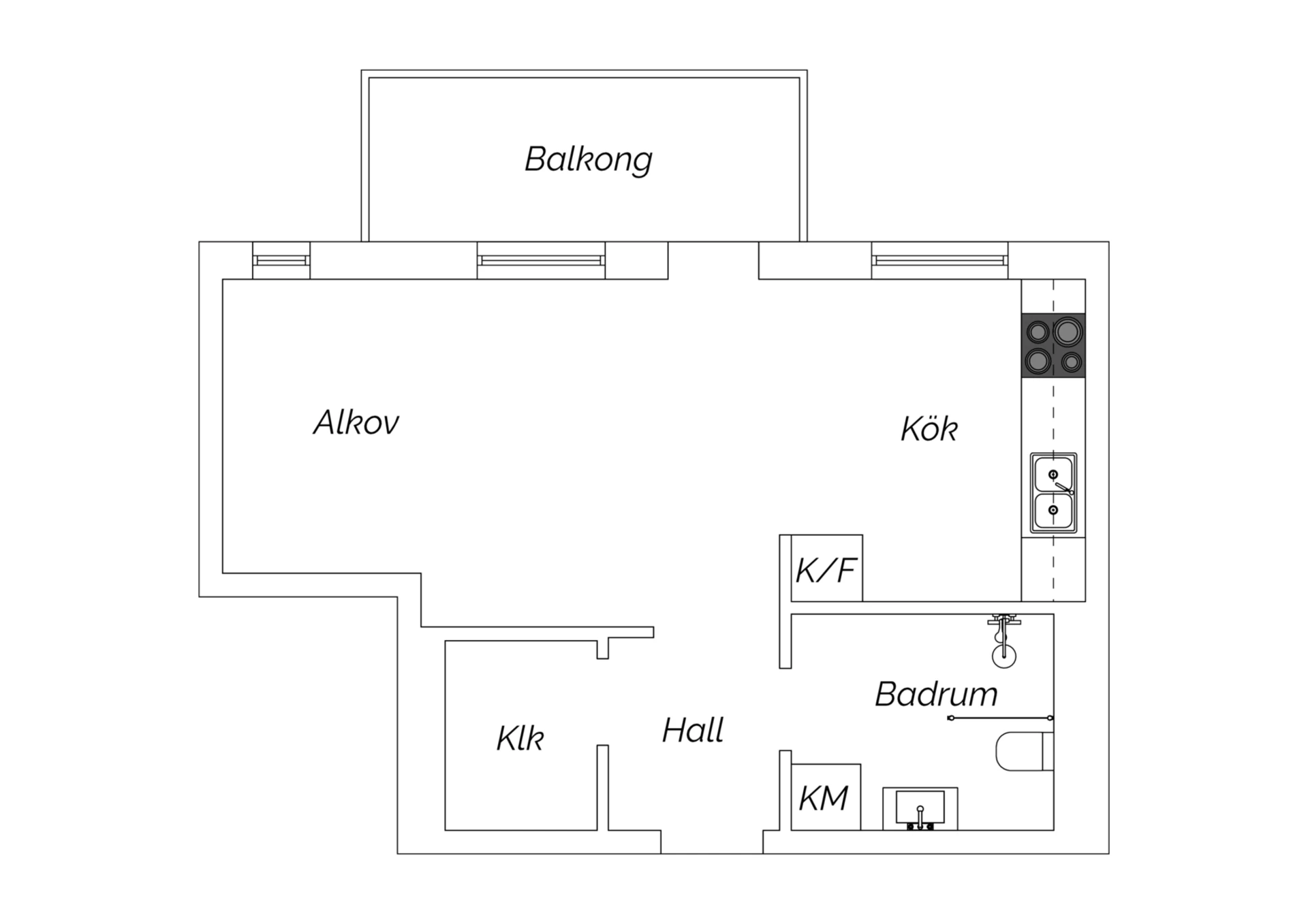 Här möter du en modern och välplanerad enrummare där varje kvadratmeter används på bästa sätt. Den öppna planlösningen mellan kök och vardagsrum, de ljusa ytorna och balkongen i östläge ger en inbjudande och luftig känsla.