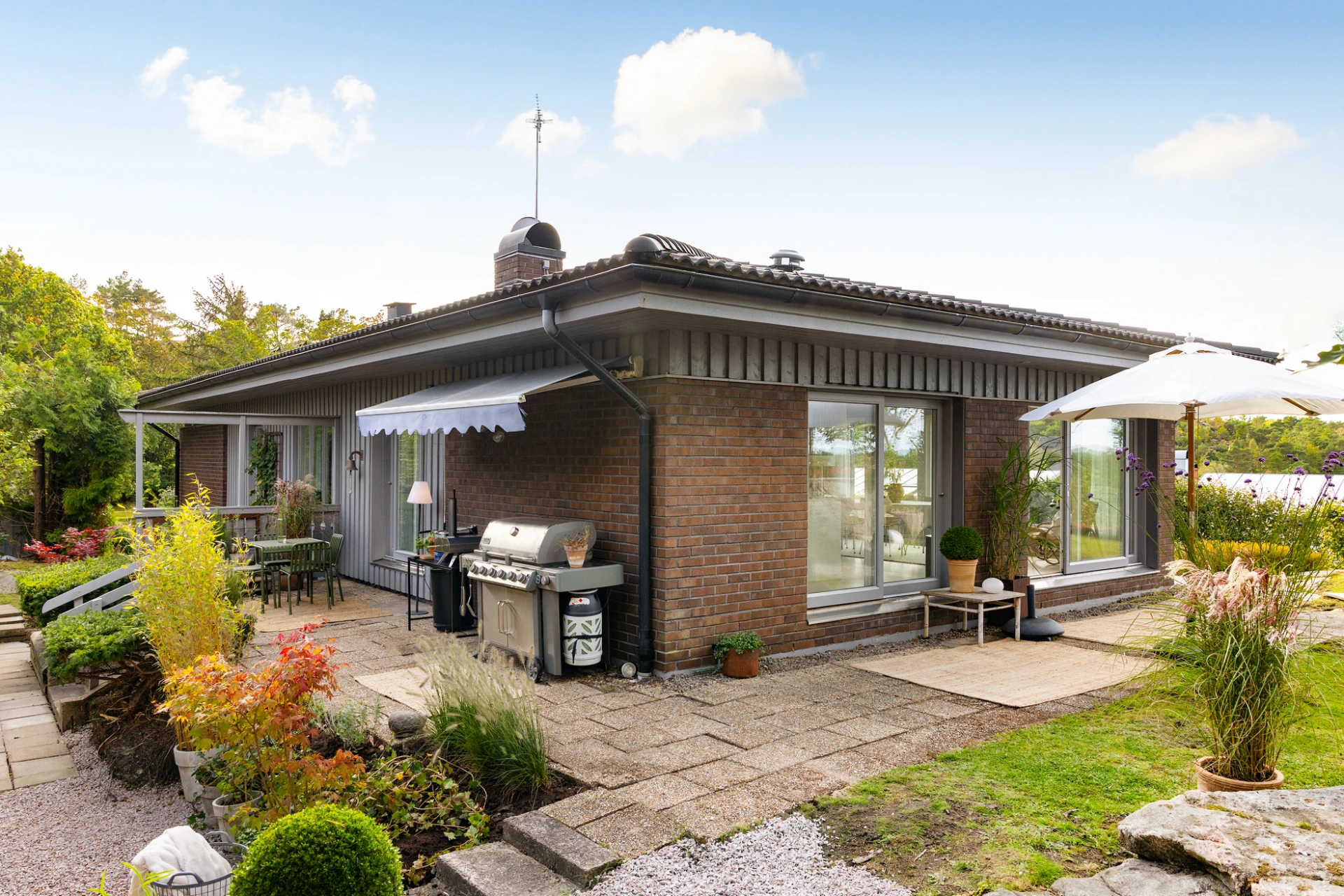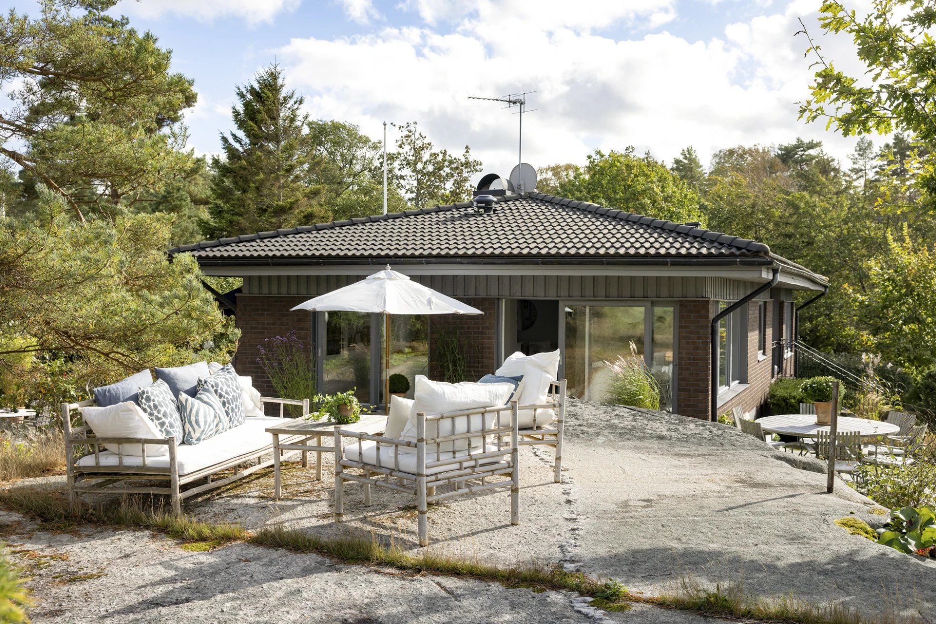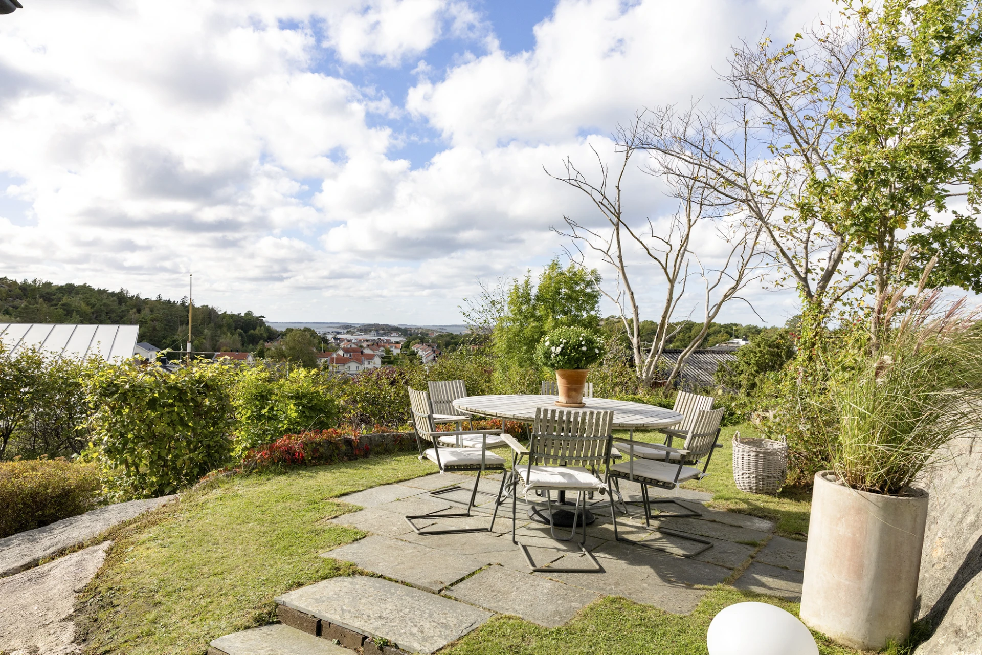 Den generösa tomten om 1100 kvm bjuder på grönska, fruktträd och flera uteplatser för både umgänge och avkoppling. Här finns plats för odling, lek och framtida pool. Uthuset med el, dubbeldörrar och altan kan bli gästhus, ateljé eller hemmakontor – alltid med naturen och havet som kuliss. Ett rymligt garage med plats för både bil och förvaring kompletterar fastigheten.