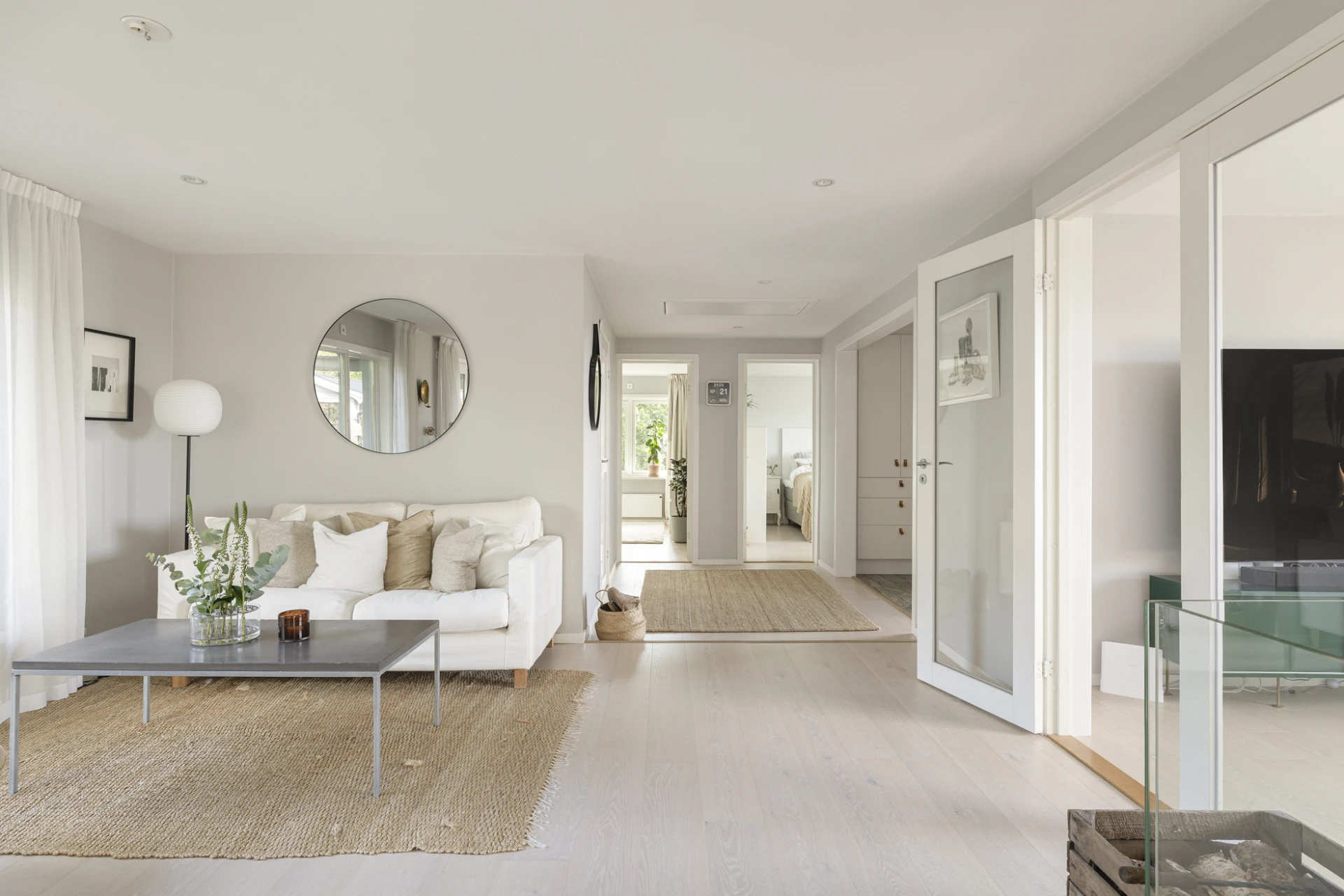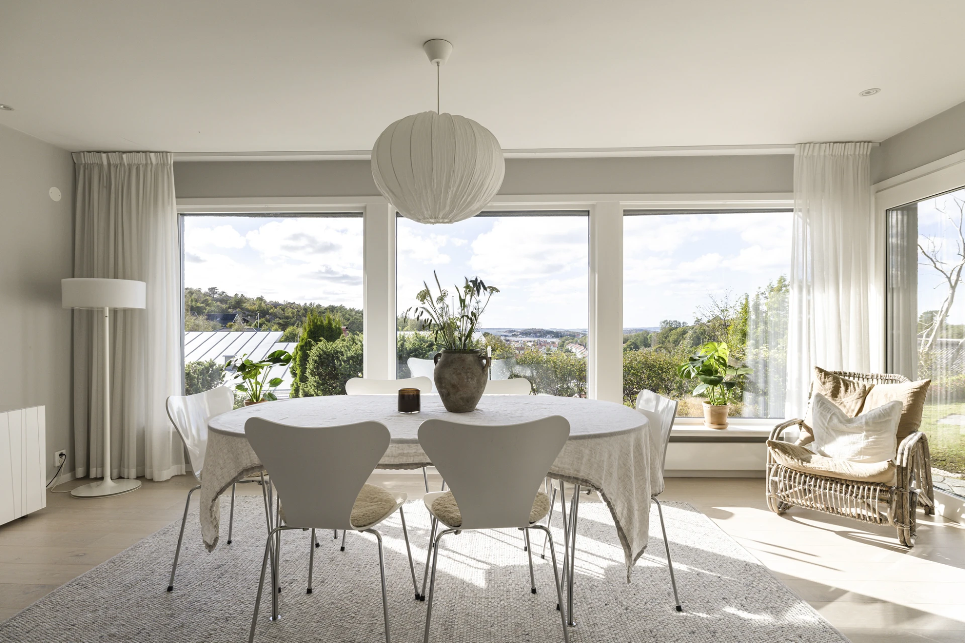 Välkommen till en totalrenoverad villa där modern komfort möter charm och karaktär. Här bor du högt och fritt med panoramautsikt över havet och södra skärgården – en vy som skiftar med dagens alla timmar, från soluppgång till solnedgång.