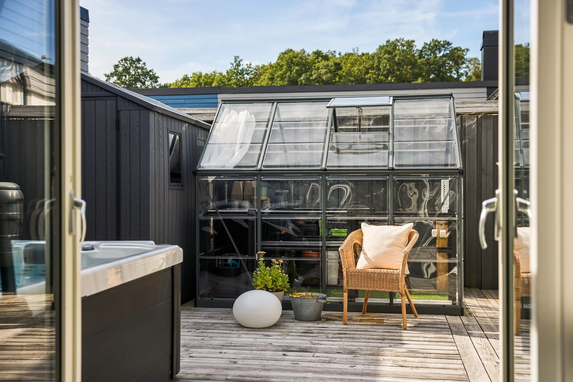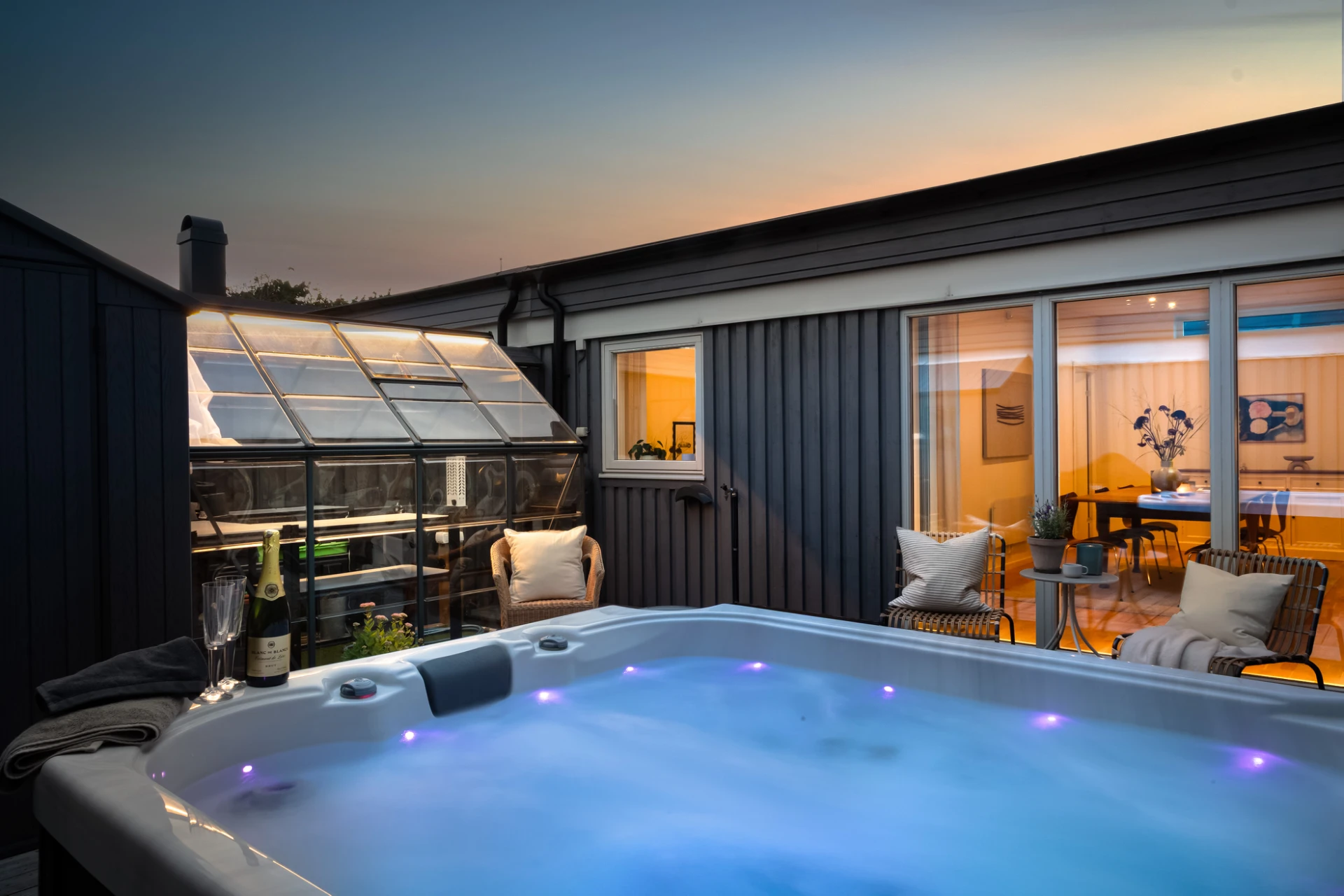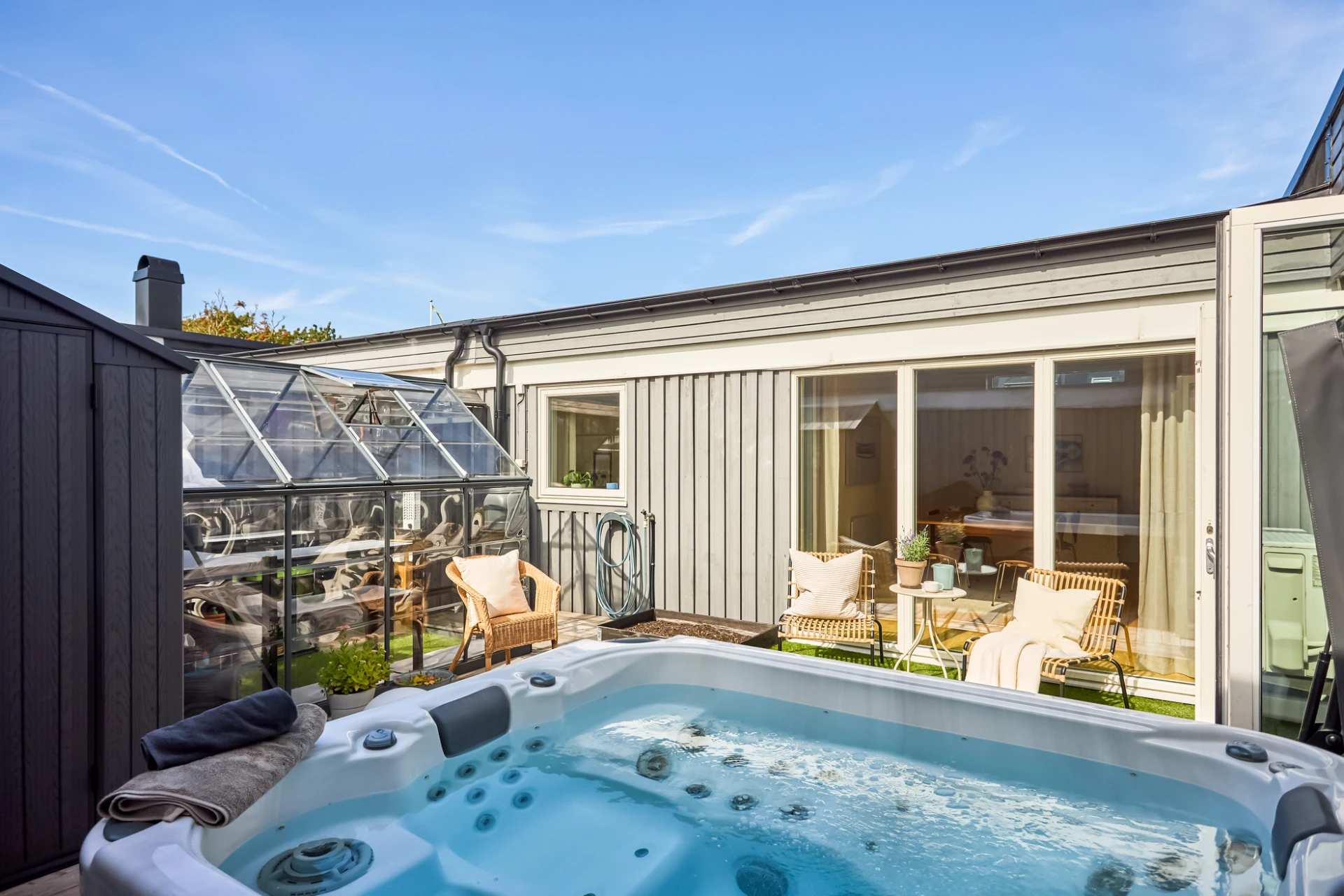 Ljust gavelradhus med jacuzzi, växthus och tre uteplatser!