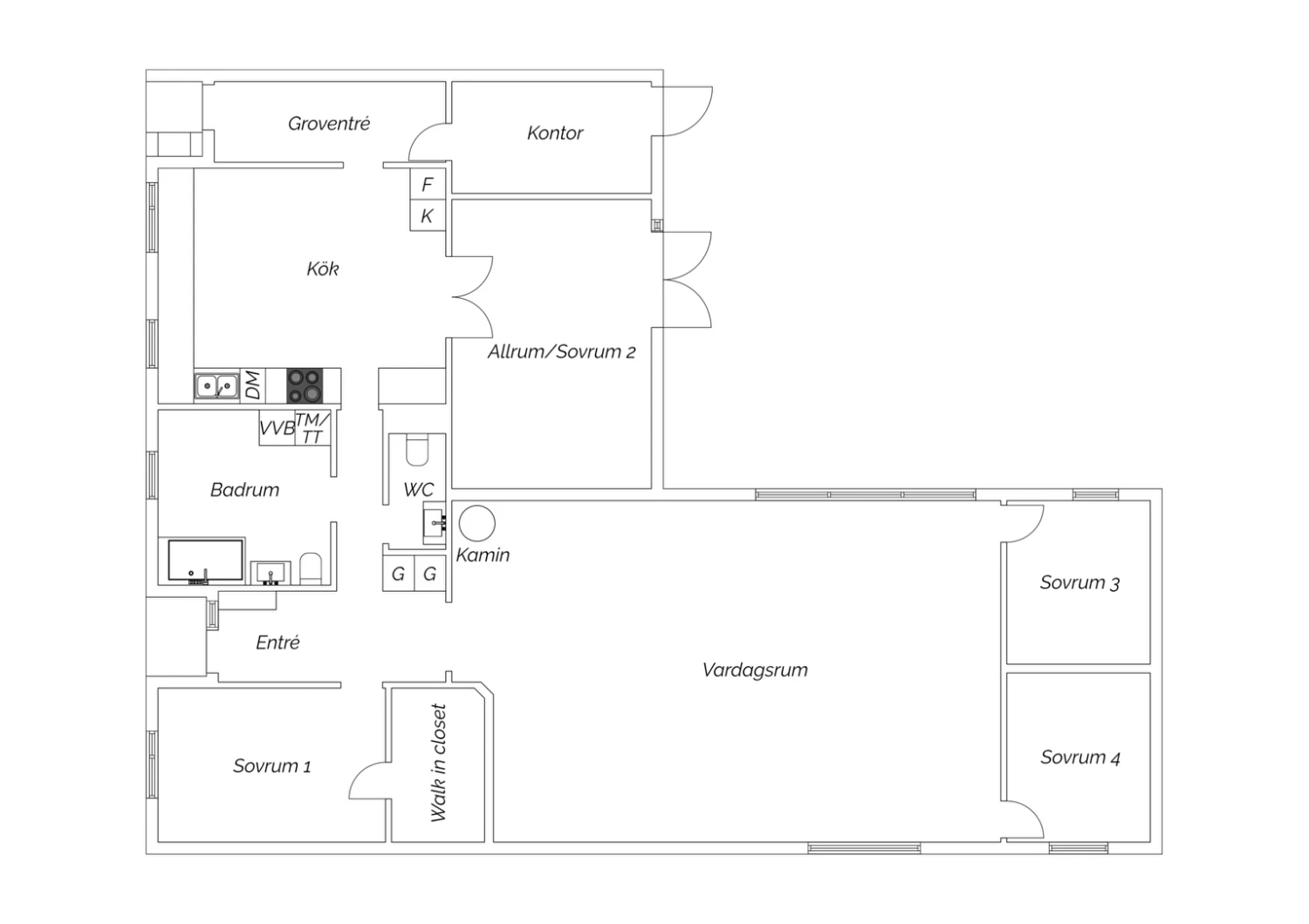 - 2015 Utbyggnad med förlängning av vardagsrum samt byggnation av sovrum 1 & sovrum 2