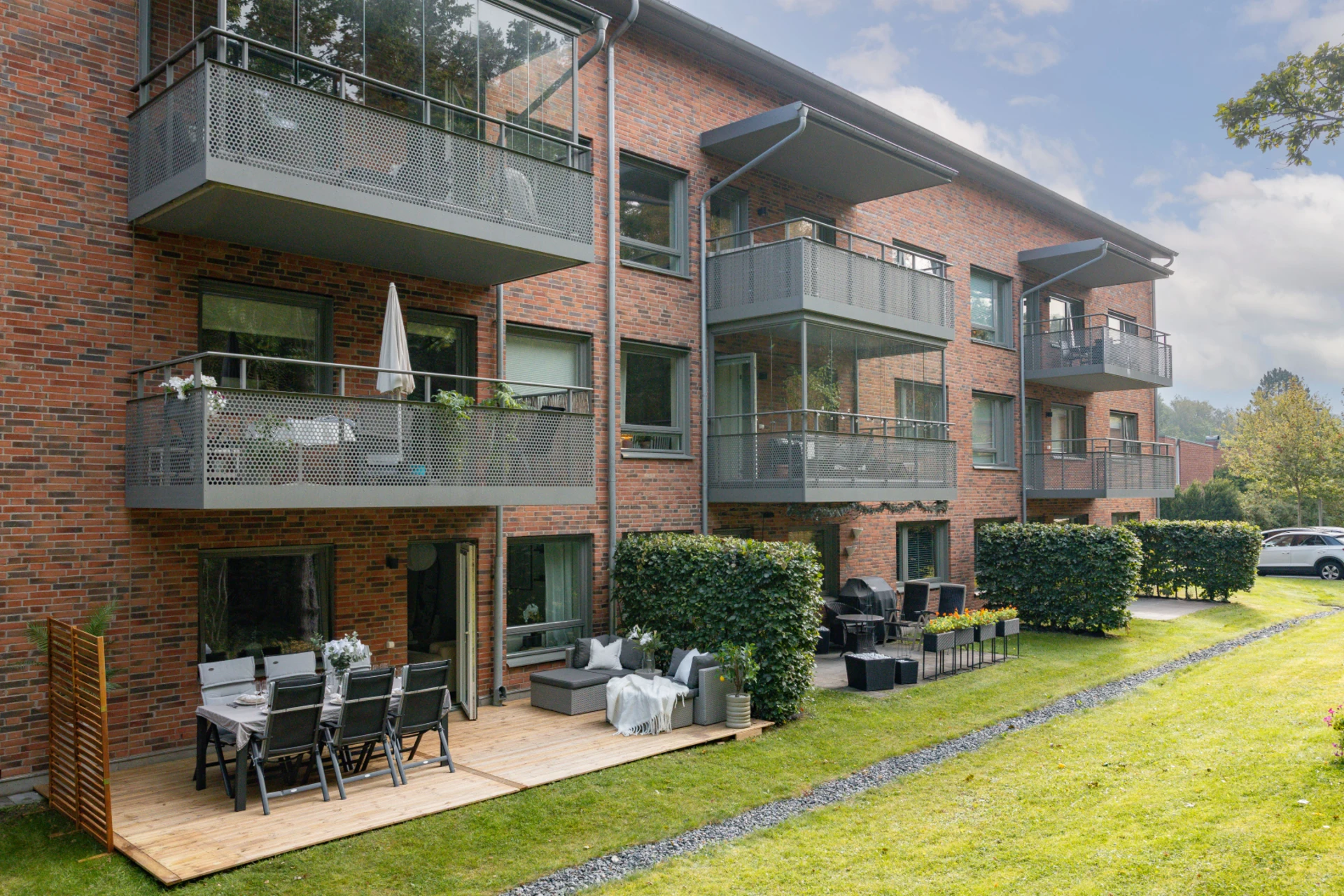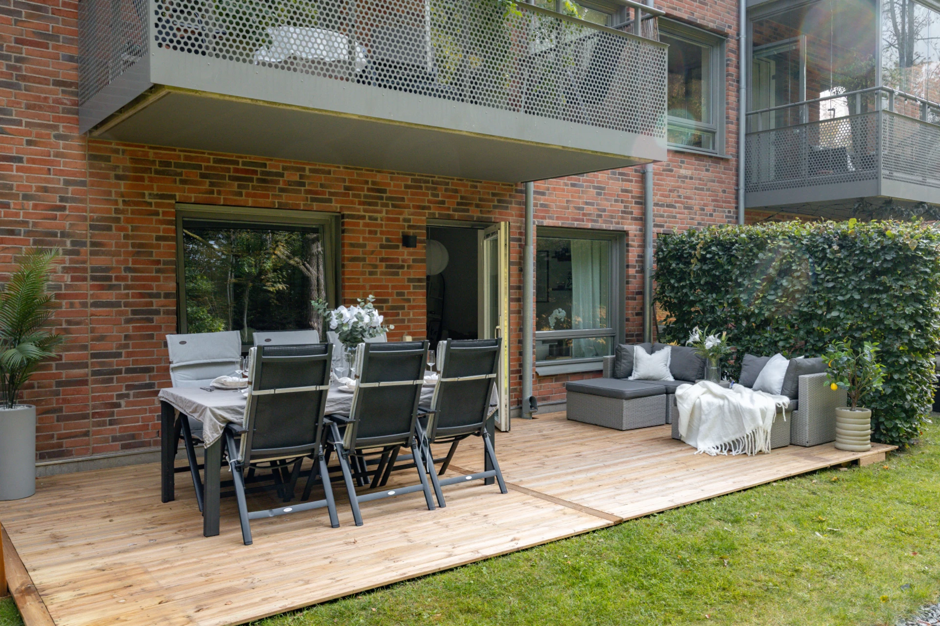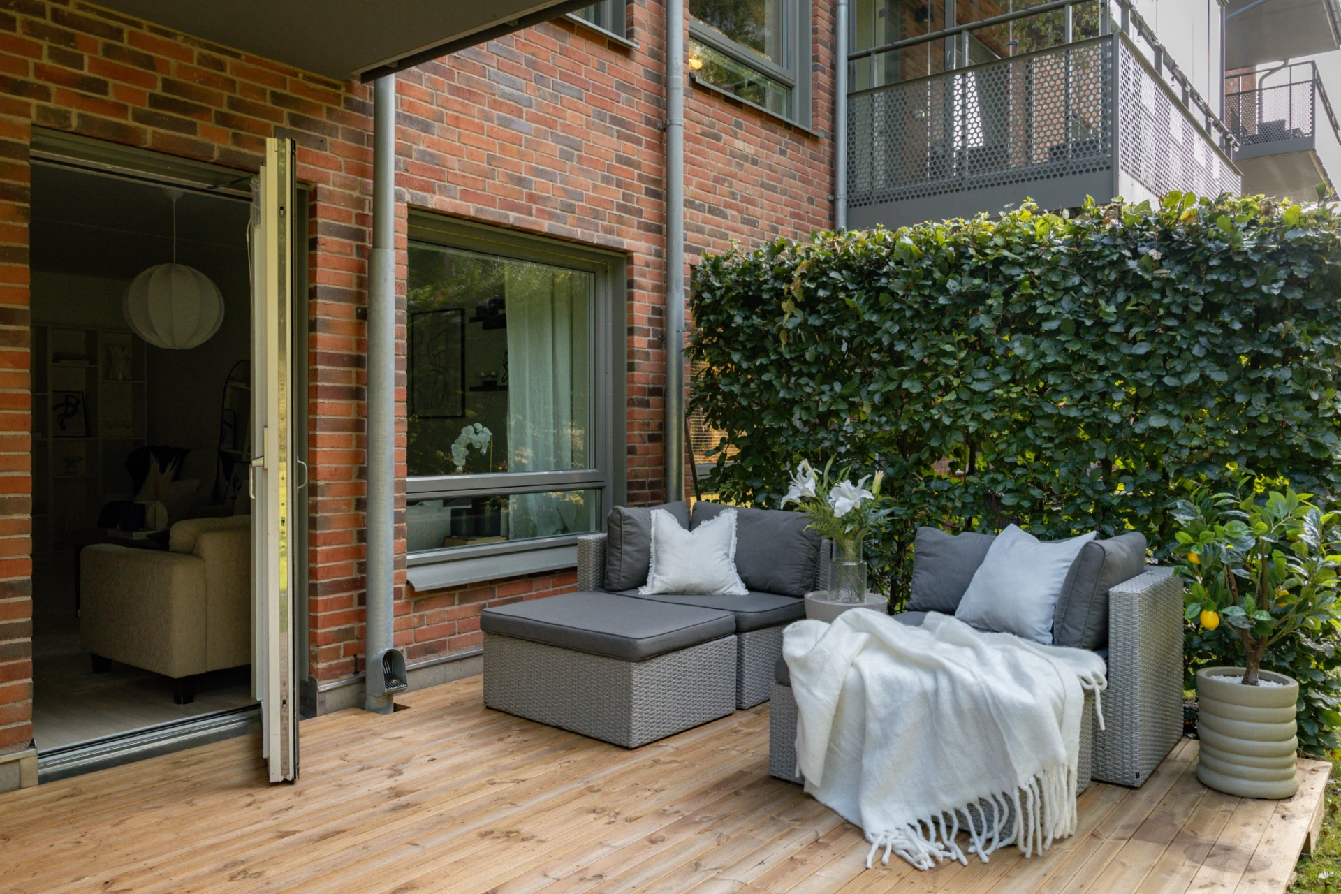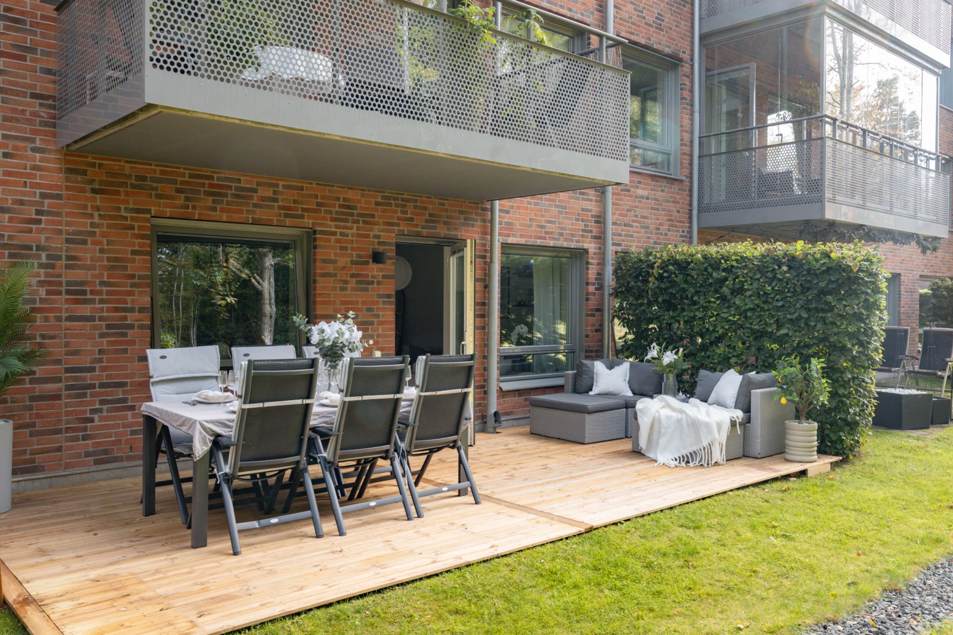 - Generös träbelagd uteplats i soligt läge