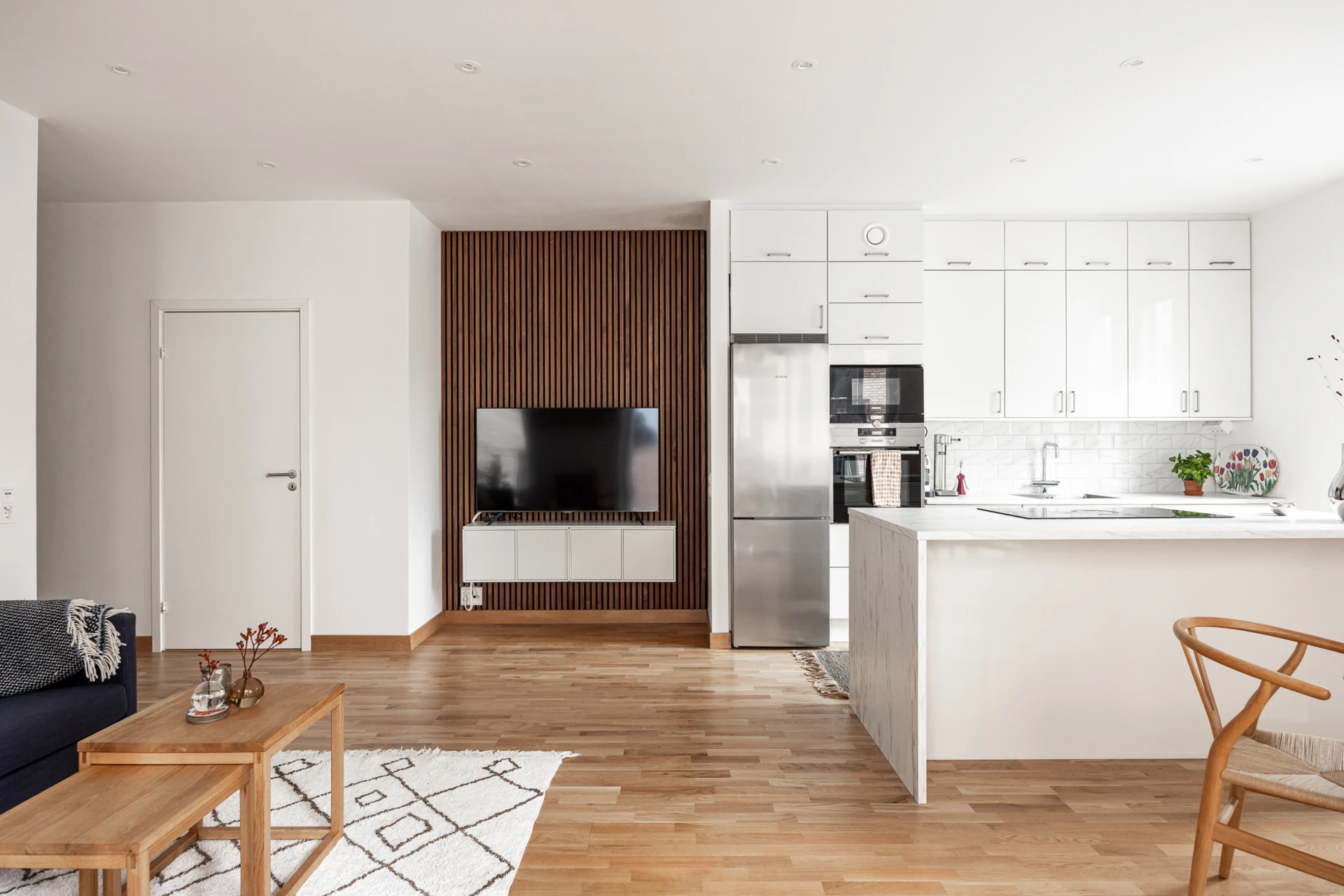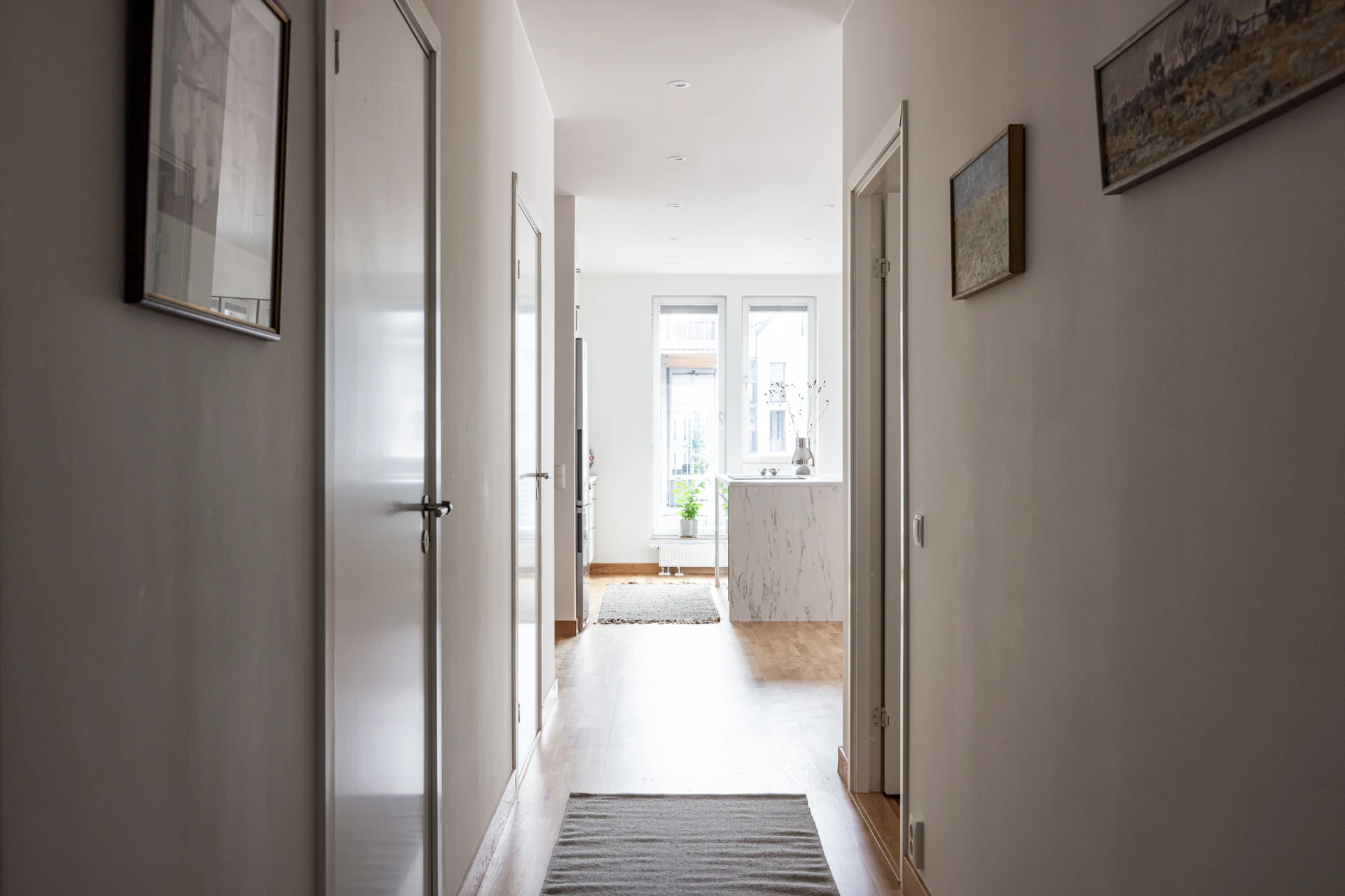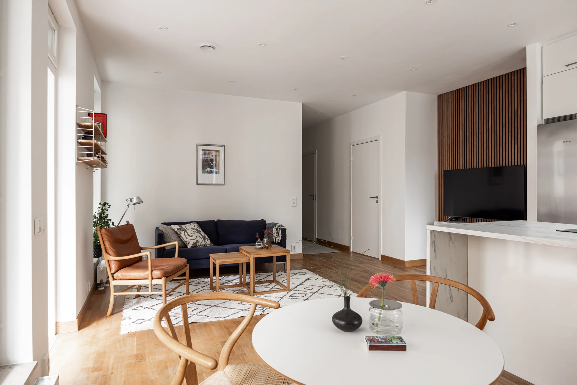 Här möts du av en lägenhet som andas kvalitet och omtanke i varje detalj. Genomgående exklusiva materialval skapar en sober och modern helhet som gör det enkelt att trivas från första stund.
