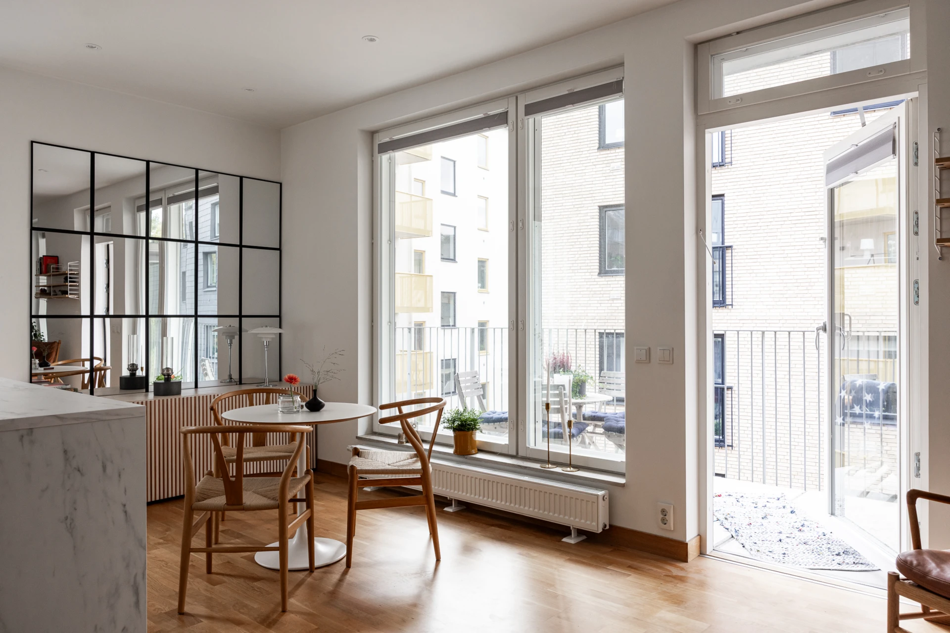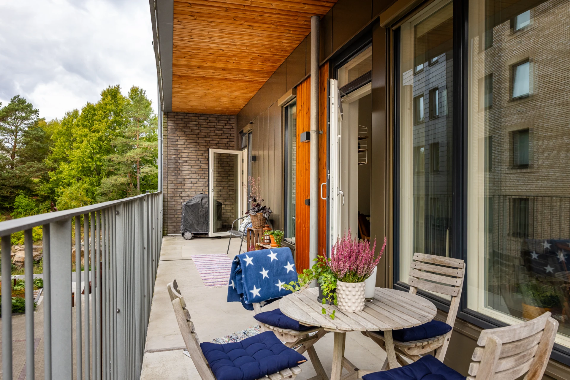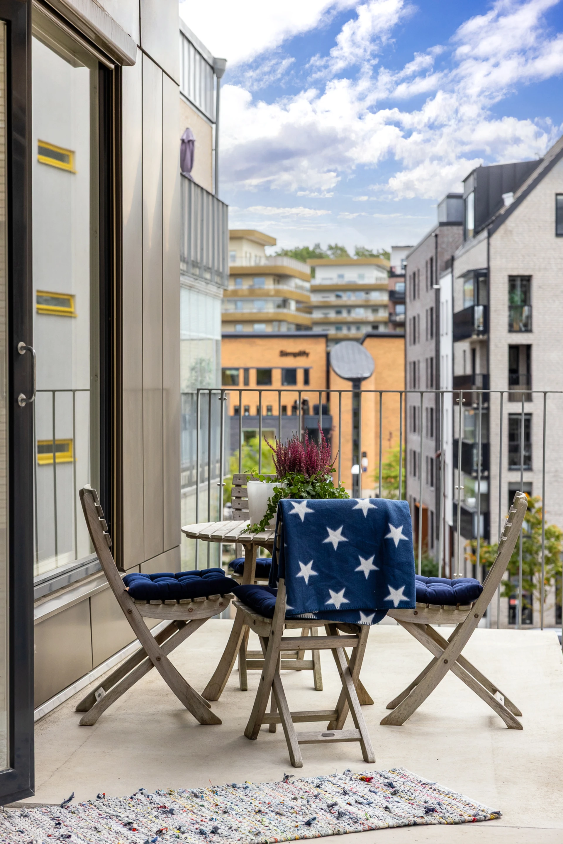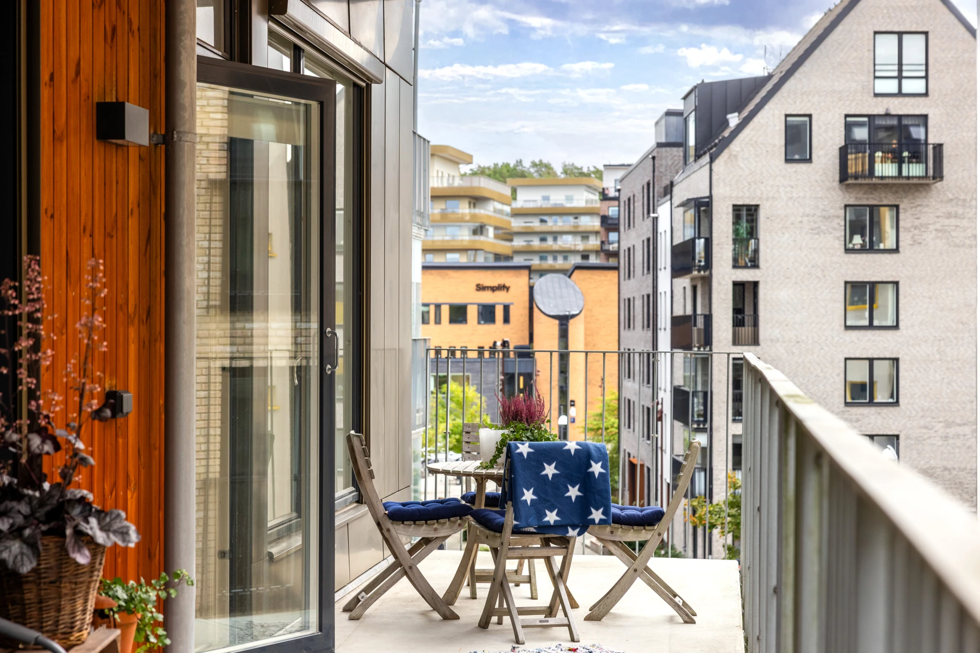 Från vardagsrummet kliver du rakt ut på den generösa balkongen, en plats som förlänger hemmets sociala ytor och låter dig njuta från morgon till kväll.