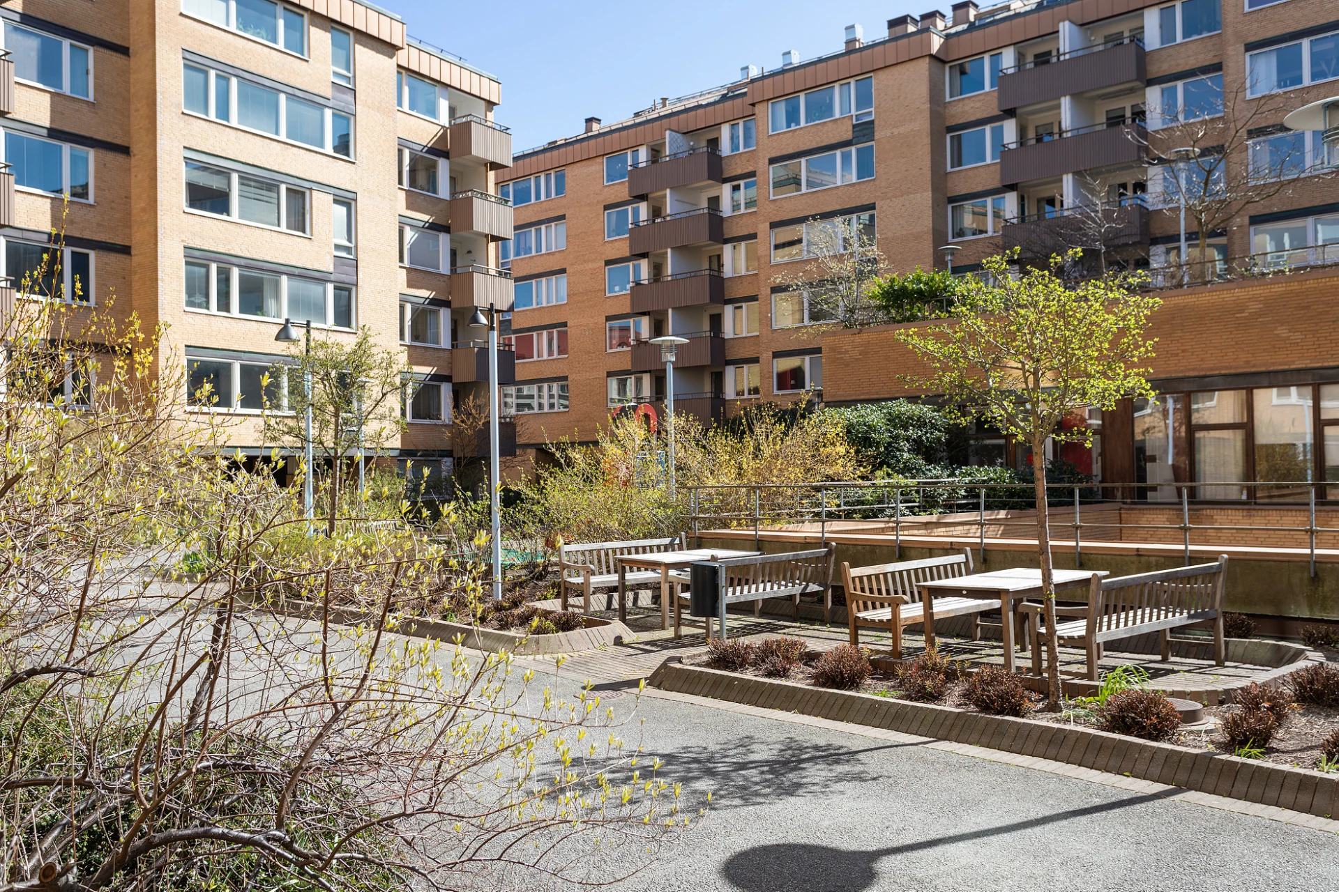 Föreningen är stabil och välskött med stark ekonomi, goda lokalintäkter och kvarvarande hyresrätter som på sikt ger ett extra tillskott. Innergården är en grön oas med plats för både avkoppling och umgänge – här finns grillplats, boulebana, lekplats, utemöbler och en övernattningslägenhet för gäster.