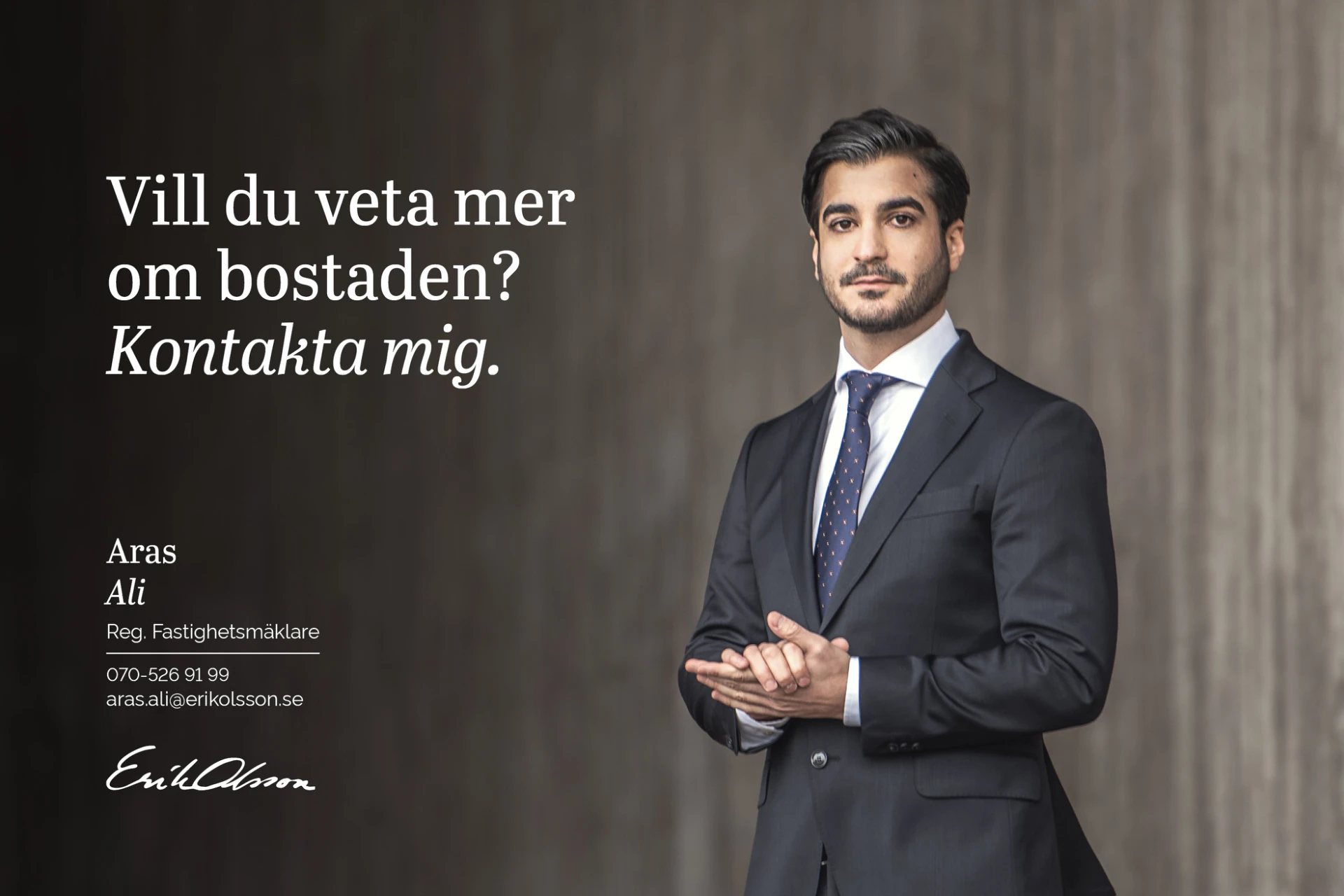 Informationen ovan är tagen från styrelsen, föreningens årsredovisning samt stadgar. Vi råder dig som köpare att kontrollera fakta som är av vikt för dig. Vi som mäklare eller Erik Olsson ansvarar ej för att uppgifterna från dessa källor är korrekta. Senaste kontroll utfördes 2025-03-21.