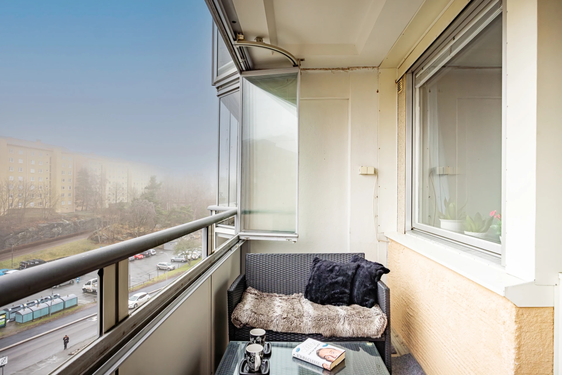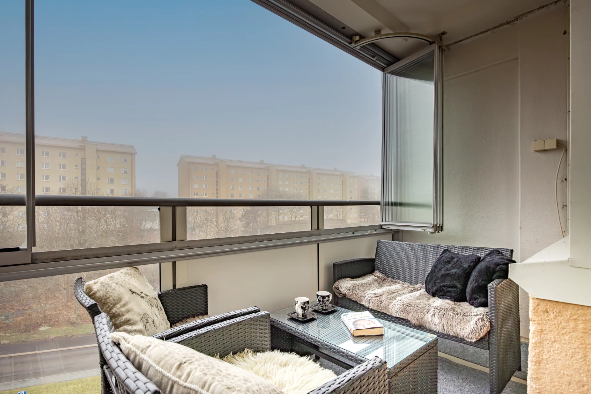 3 rok med trivsam inglasad balkong i högt och fritt läge!