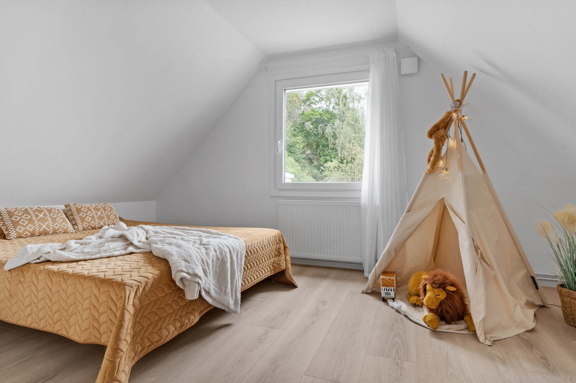 Nytt 2016-2017 i samband med tillbyggnad. Laminatgolv och vita väggar. Här finns plats för säng och förvaringsmöbel.
