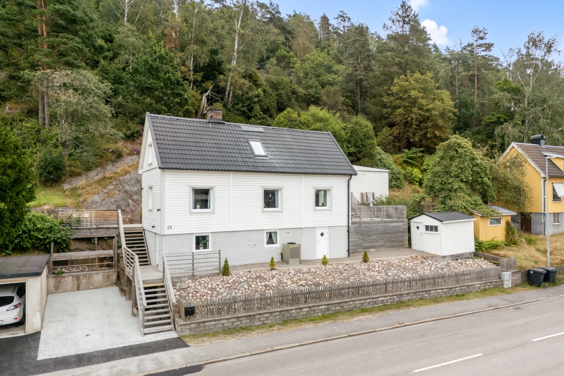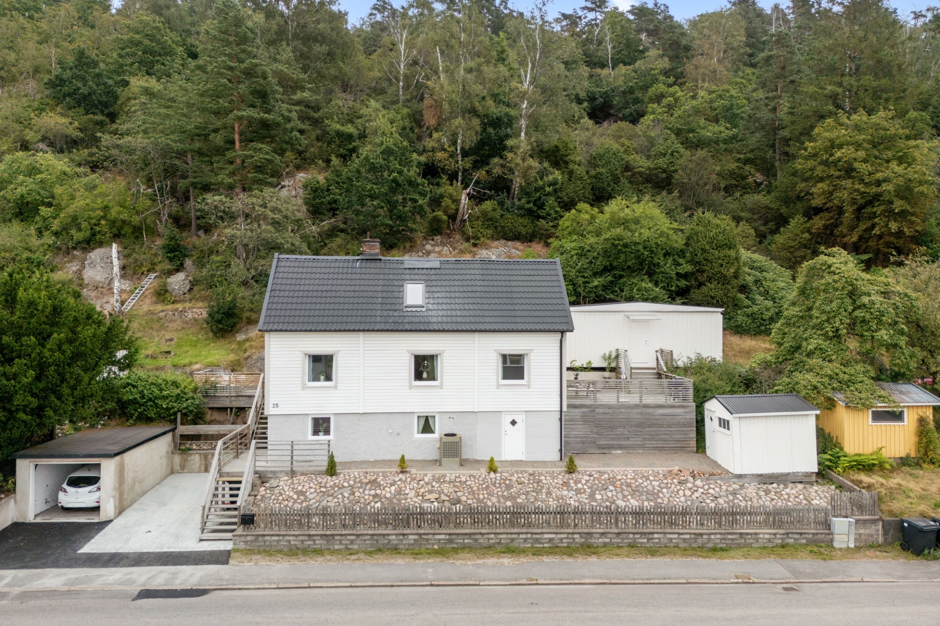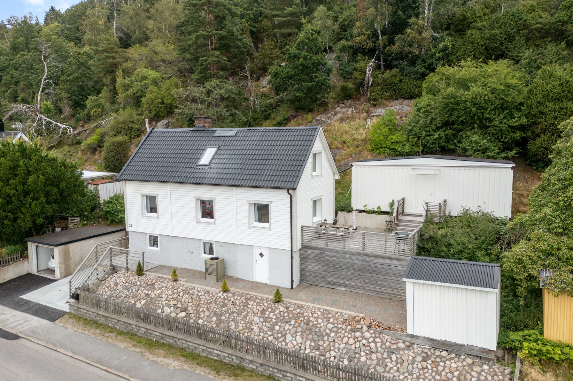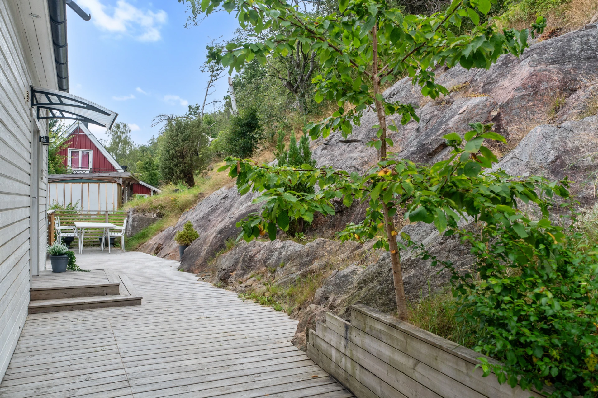 Renoverat 2018-2019. Laminatgolv och vita väggar. komplementbyggnaden är inredd med vitt kök med tillhörande kombinerad kyl/frys och kombinerad ugn/mikro samt diskho. Badrummet är inrett med handfat, WC och dusch samt förberett för tvättmaskin och sovrummet ger plats åt säng med tillhörande möblemang.