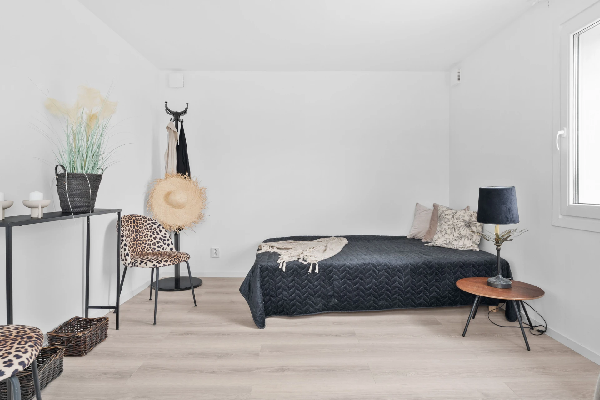 Nytt 2016-2017 i samband med tillbyggnad. Laminatgolv och vita väggar. Här finns plats för dubbelsäng och förvaringsmöbel.
