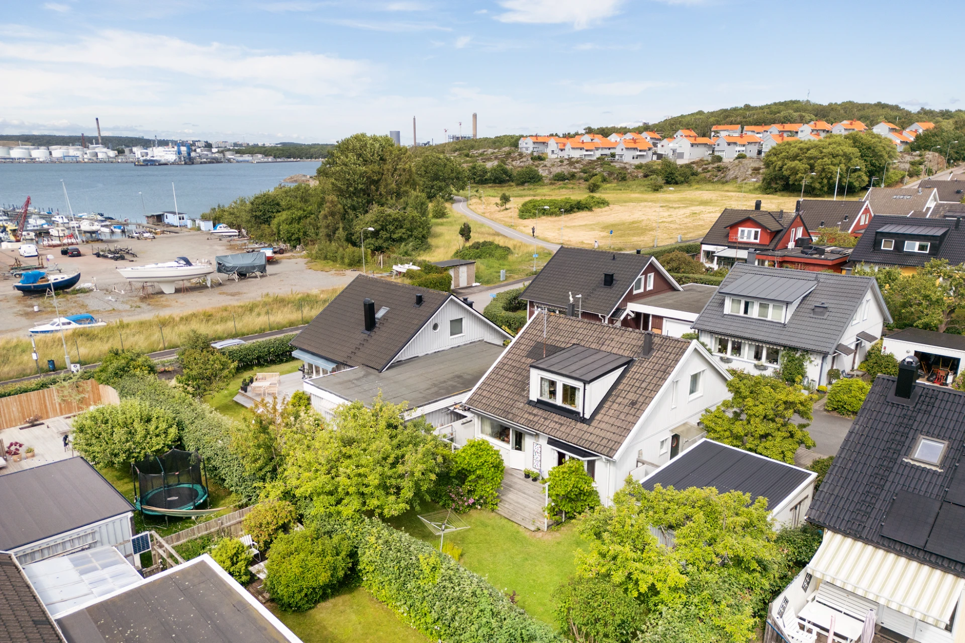 Området är ett av Göteborgs mest natursköna och attraktiva, med kort promenadavstånd till vackra klippor och salta bad. För båtälskare finns båtplats i den närliggande hamnen i Nya Varvet vilket ger möjligheten att njuta av livet vid vattnet på bästa sätt. Inom gångavstånd finns ett brett utbud av restauranger, bagerier och mysiga caféer. Västerleden ligger endast en kilometer bort, vilket gör bilpendling smidig, och kollektivtrafiken tar dig till Järntorget på bara 10 minuter. Här kombineras natursköna vyer med närhet till stadens puls.