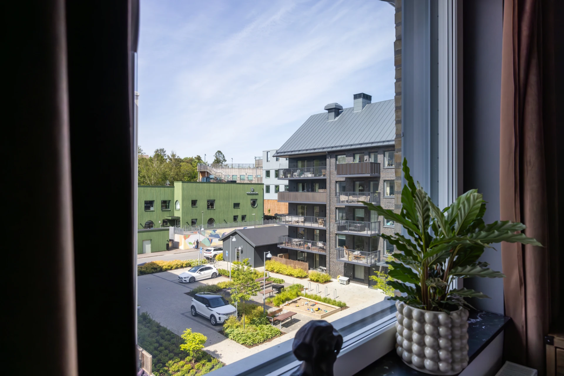 Precis utanför porten nås Nya Hovås mittpunkt som erbjuder ett brett serviceutbud såsom gym, apotek, matvarubutik, blomsterhandel, caféer, restauranger och klädbutiker. Dessutom bor ni med direkt närhet till såväl förskola som skola. Ni finner även bekvämt gång- och cykelavstånd till badplatser vid havet och natursköna omgivningar vid Amundön. Goda förbindelser med expressbuss tar er smidigt runt i denna familjära stadsdel samt in till Göteborgs rika nöjesliv