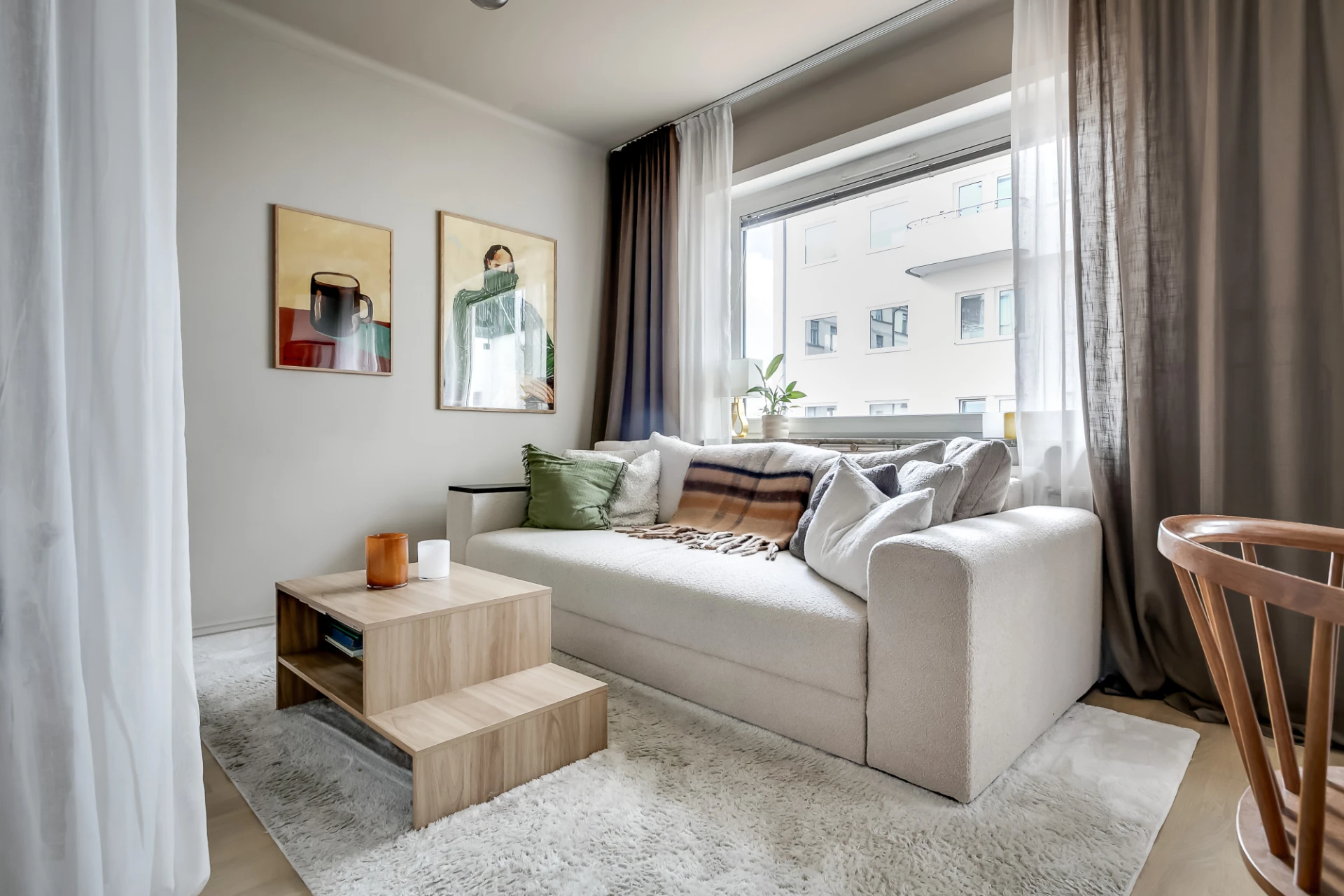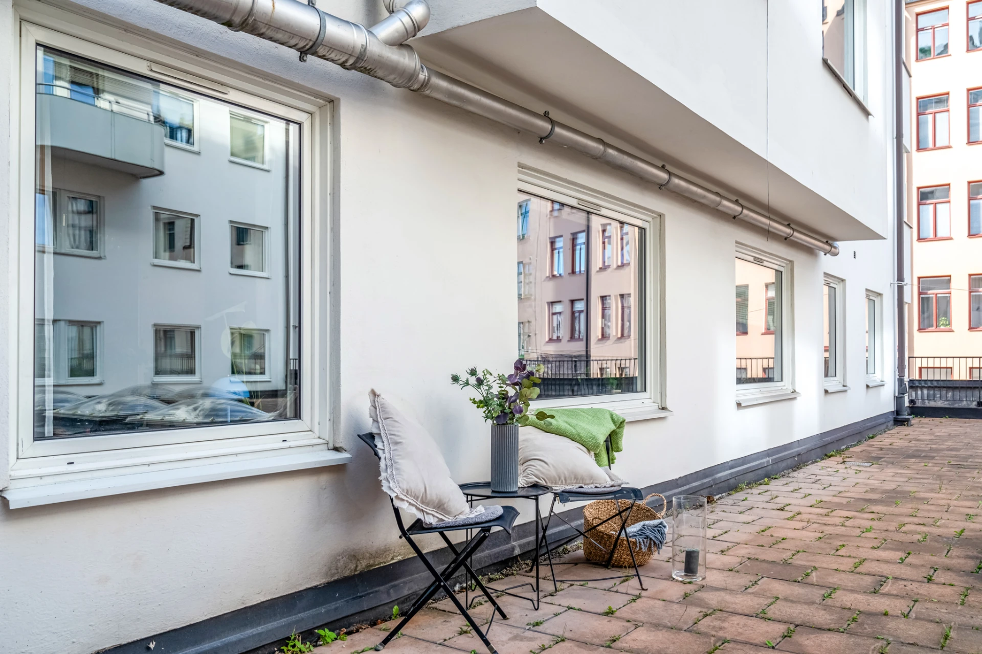 Den öppna planlösningen fördelar kvadratmetrarna väl och ger ljus och rymd ett fritt spelrum. Två stora fönster ger ett härligt dagsljusinsläpp. Hela lägenheten förutom badrum, är nyligen (2023), Hall (2024) målad i en varm och mjuk ljusbeige kulör, Sand/Jotun. På golvet ligger parkett, som nyligen är slipat och pigmenterat i en ljusare färg (sand) (2024). Bostadsrätterna som likt denna har fönster mot gårdens takterrass ska få möjlighet att hyra en del för att kunna inreda själva, enligt beslut klubbat på årsstämman förra året. Formen för detta är inte helt spikad ännu men är alltså i vardande. Terrassen är idag öppen för alla men inga andra brukar nyttja den. Brf Kungsklippan bildades 1934 och består av 1031 lägenheter och 47 hyreslokaler i totalt tolv hus. Det är Sveriges största bostadsrättsförening efter Masthugget i Göteborg. I föreningen finns också ett stort antal faciliteter att tillgå; fem takterrasser, fyra övernattningsrum, fyra tvättstugor, två grillplatser, en boulebana, flera cykelrum, barnvagnsrum, kanotrum, grovsoprum, garage och parkeringsplatser. Lägenheten disponerar ett förråd i källarplanet.