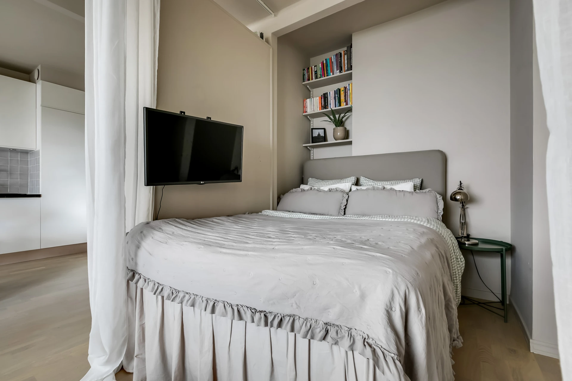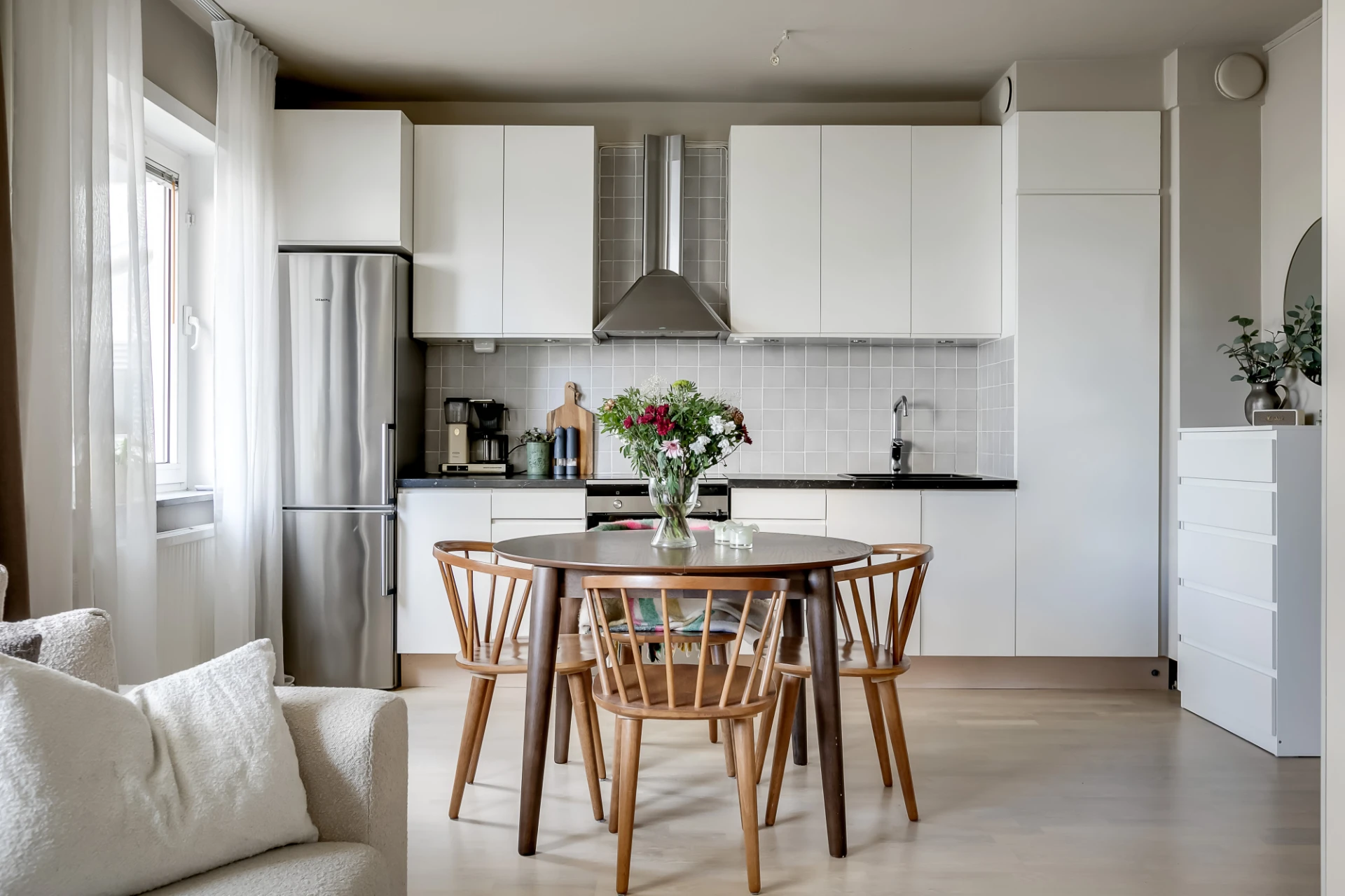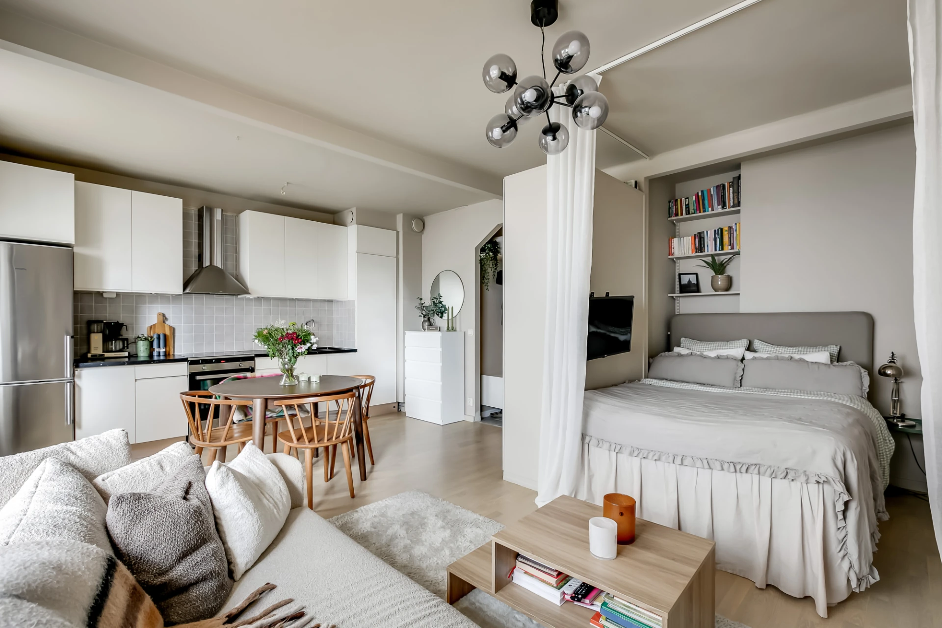 Välkommen till Kungsholmsgatan 13, en mysig och citynära funkisetta, lugnt belägen mot en innergård och på en central adress med det mesta i stan på promenadvänligt avstånd. Lägenheten är ljus och välplanerad, utformad som en etta men med separata rumsdelar. Här bor man med ett kök med bra förvaring och rymliga arbetsytor, ett öppet och lättmöblerat sällskapsrum med plats för stort matbord och soffgrupp och en mysig, avskild sovalkov. Alla funktioner som behövs är lätta att passa in. Dessutom finns ett alldeles nyrenoverat och stambytt badrum med dusch och tvättmaskin/torktumlare. Föreningen har en terrass som ligger precis utanför lägenheten, och högst upp i huset bredvid finns en takterrass med häftig utsikt över stan – perfekt för både sommarfester och nyårsskål! Brf Kungsklippan är en av Sveriges största bostadsrättsföreningar och man har ytterligare en mängd tillgångar som man som boende kan nyttja, exempelvis övernattningsrum, grillplatser och boulebana. Adressen har ett svårslaget läge i stan i kvarter som både är lugna och extremt citynära.