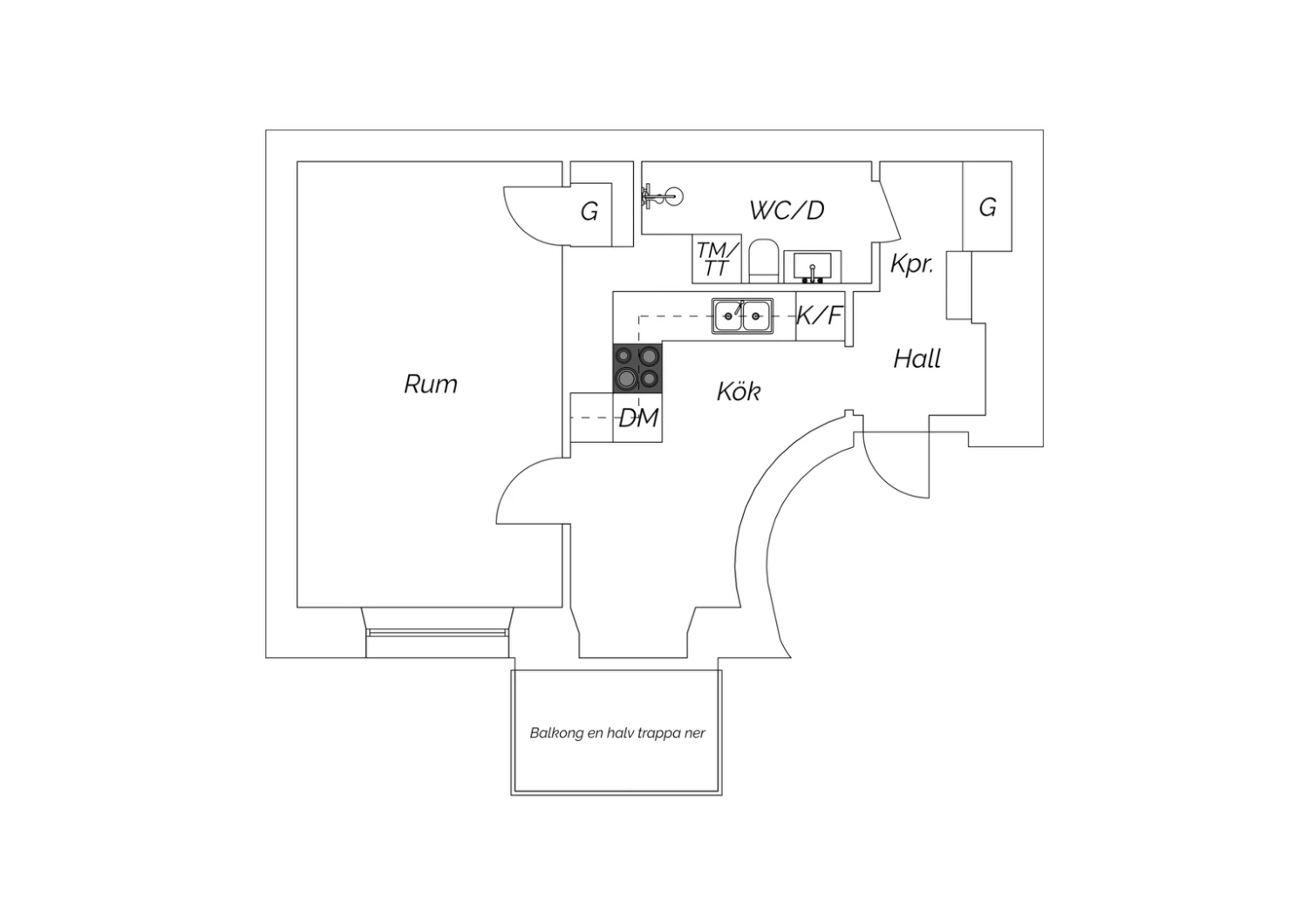 Storlek: 1 rum, 43 kvm boarea
