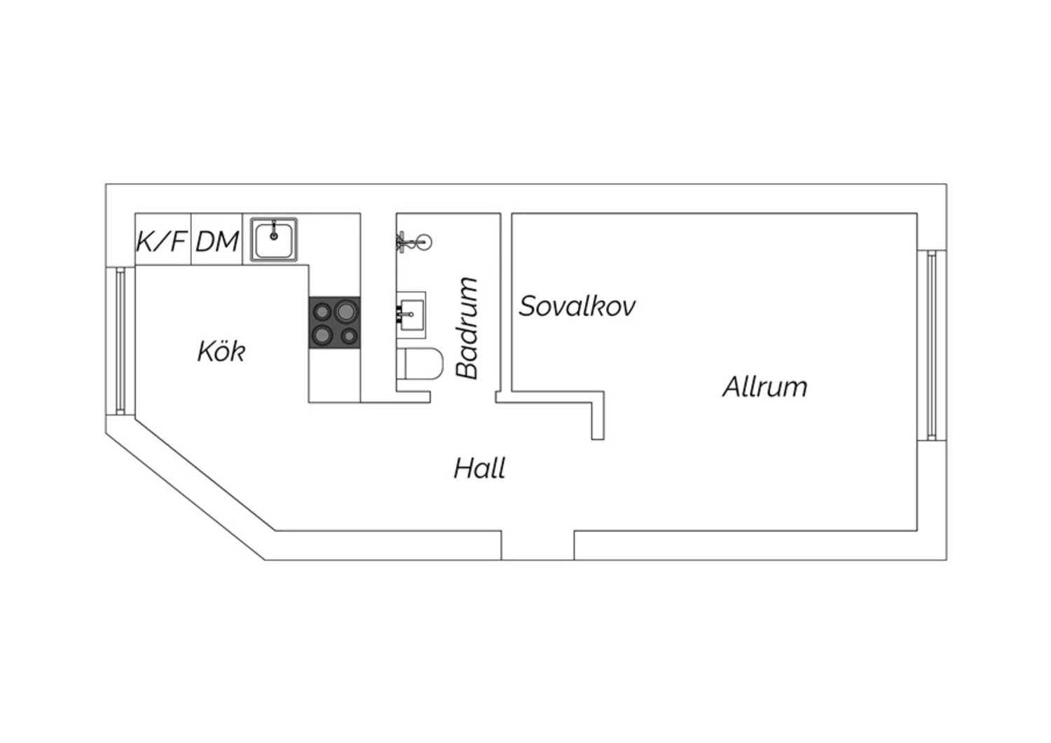 1 rum och kokvrå