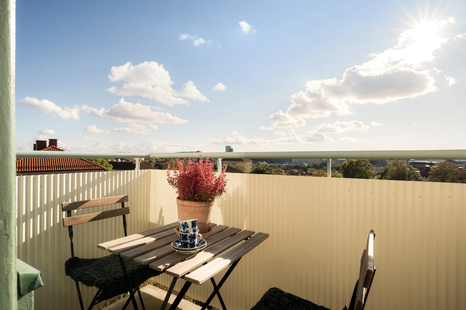 Hörnetta med ljuvlig utsikt & solig balkong högst upp i huset!