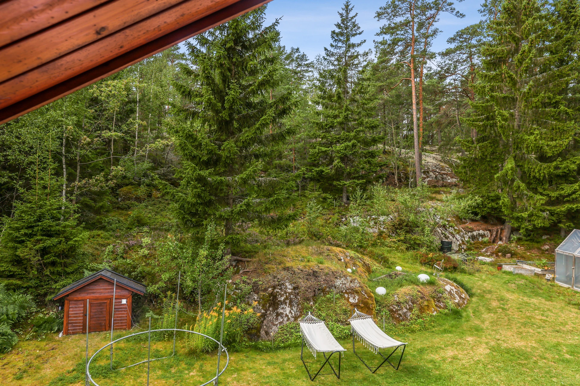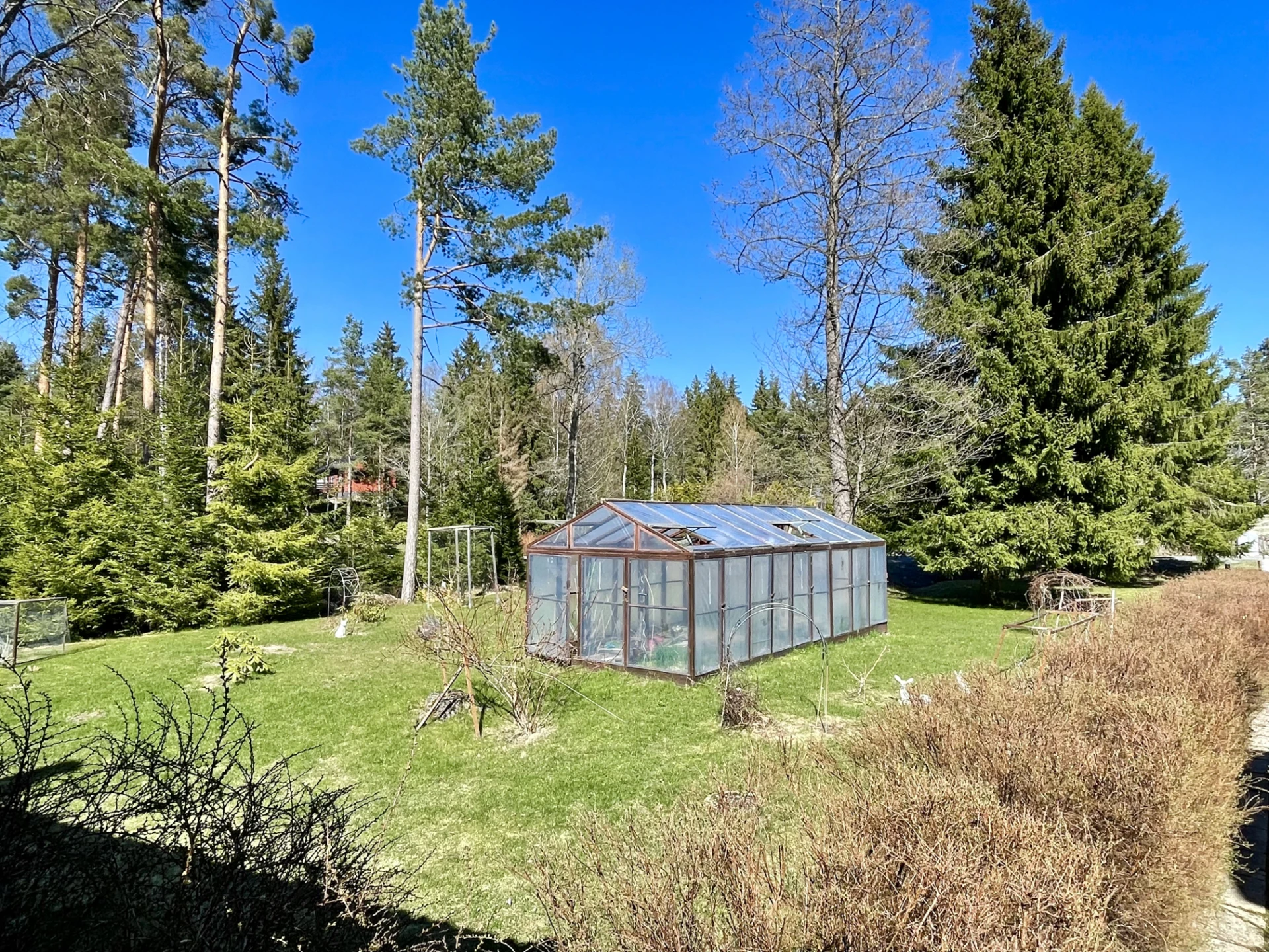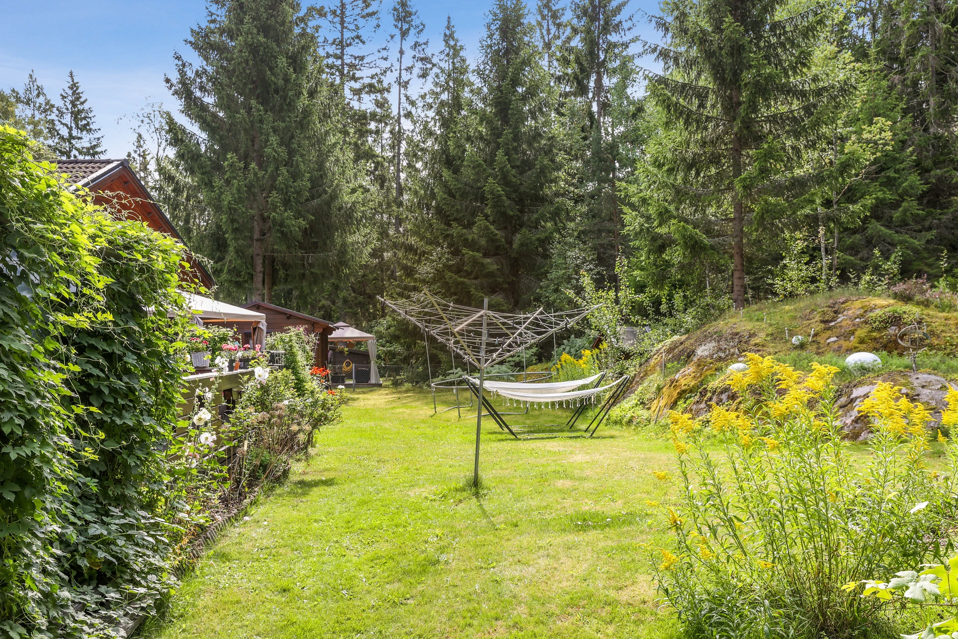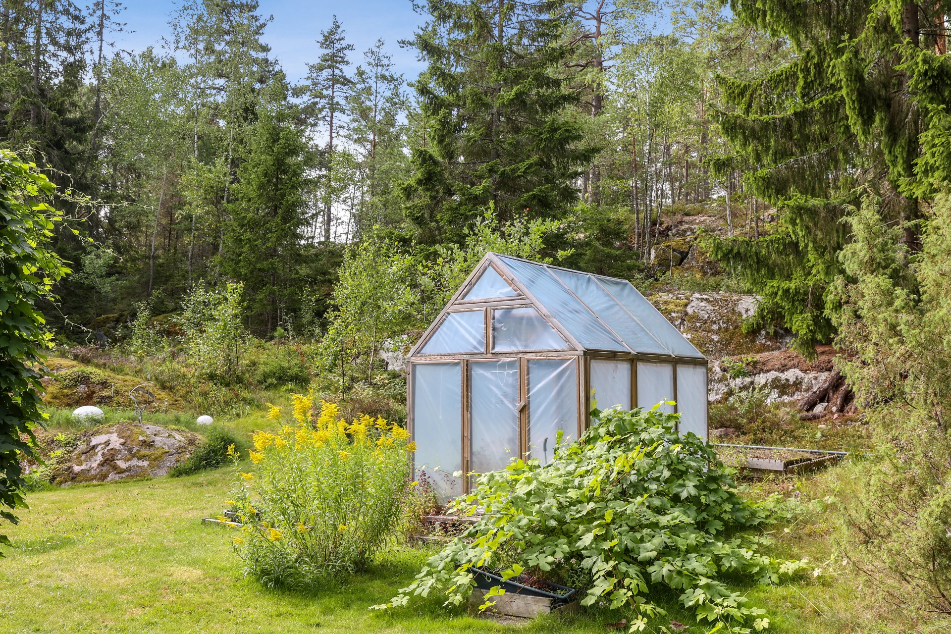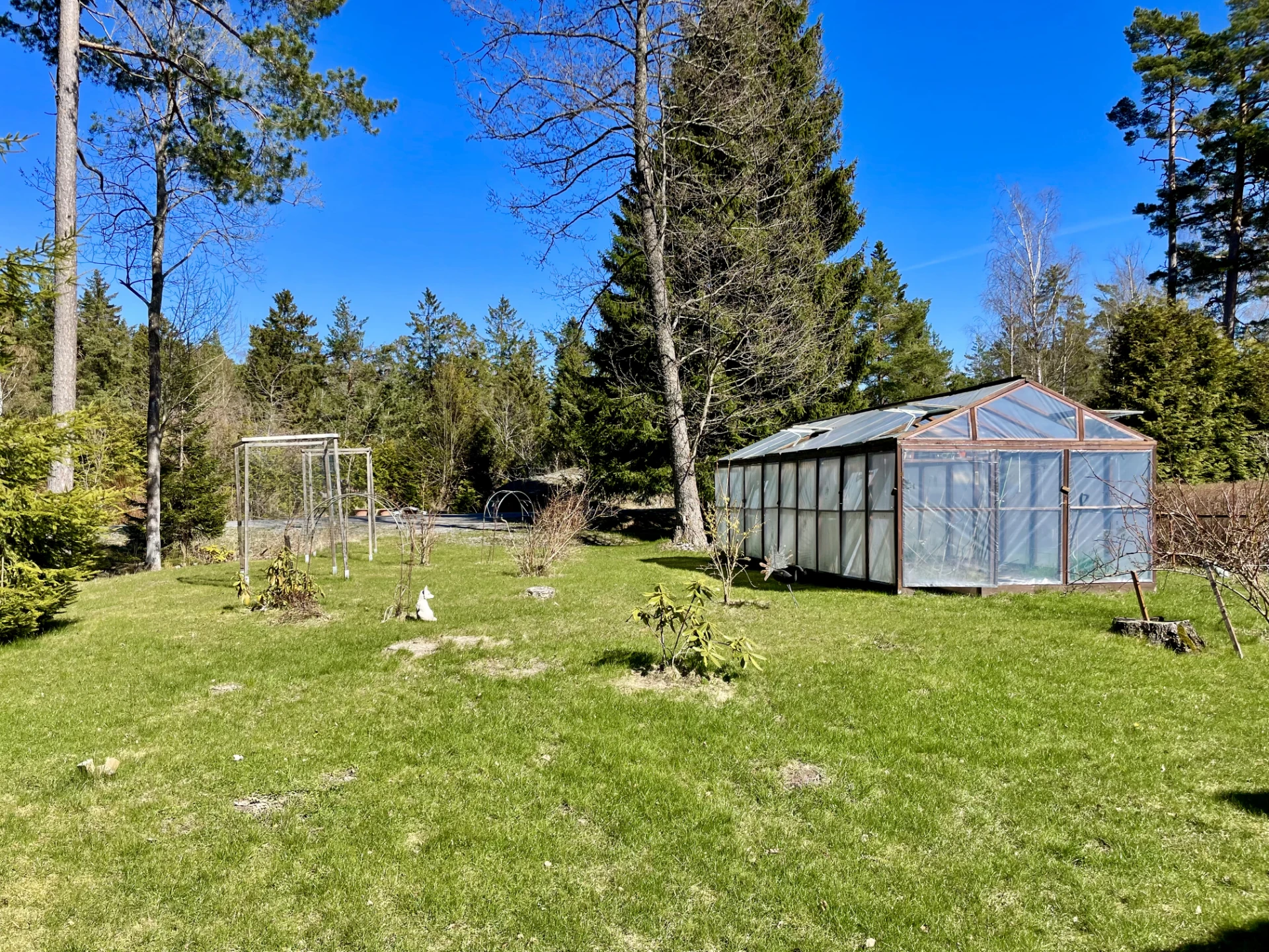 Stor grönskande trädgård om 2 813 kvm, som är omgiven av lummiga buskage, träd och vackra blommor. Tack vare sina kvm rymmer både ett minder men större växthus, som tilltalar den med gröna fingrar som vill kunna odla valfria grönsaker. Runt om på trädgården finns även flera planteringar där du kan plantera valfria blommor. Här bort du ostört med ett fåtal grannar och med ett insynsskyddat läge tack vare bergen runtom.