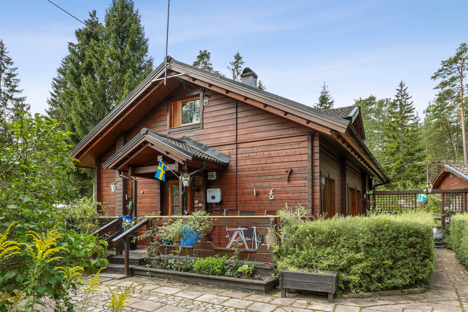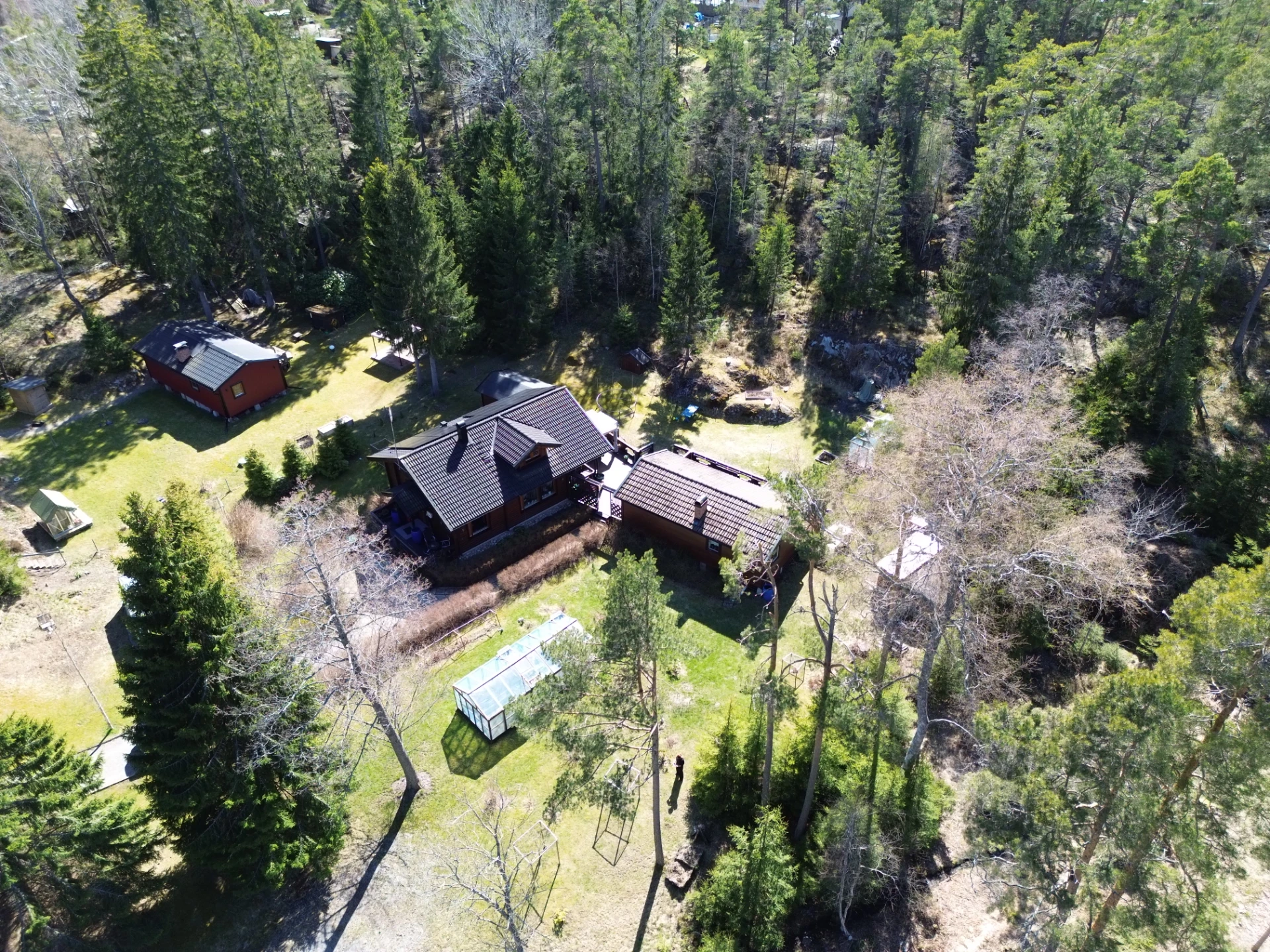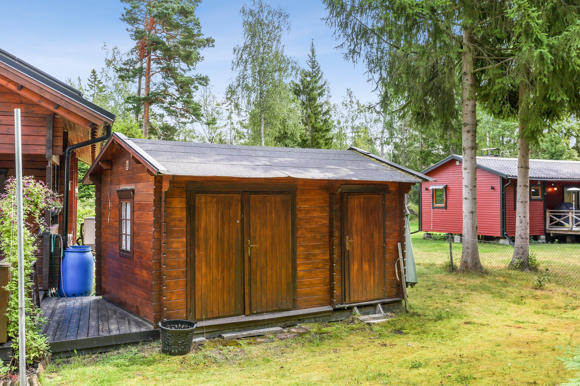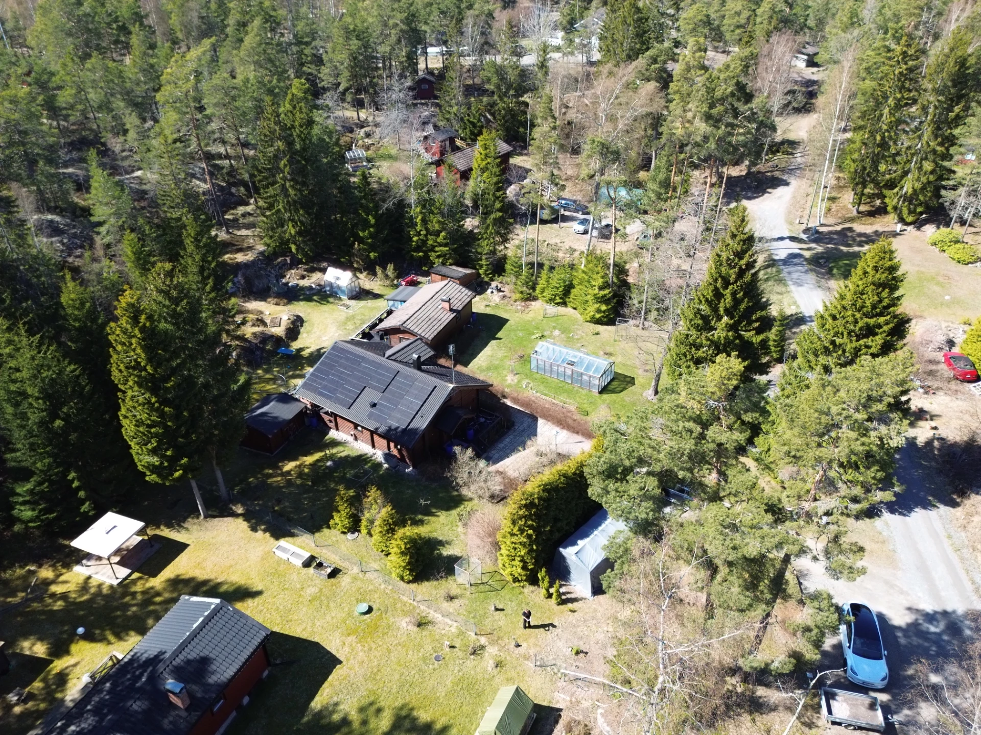 Fantastisk veranda som går ihop med det andra husets uteplats. En rogivande plats med en fin vy mot den grönskande trädgården, som blir en naturlig och trivsam plats att spendera sommaren på. Ett litet uterum finns på en del av verandan som passar perfekt för regniga dagar, med plats för möblemang. På den andra delen av verandan finns plats för loungegrupp och växter.