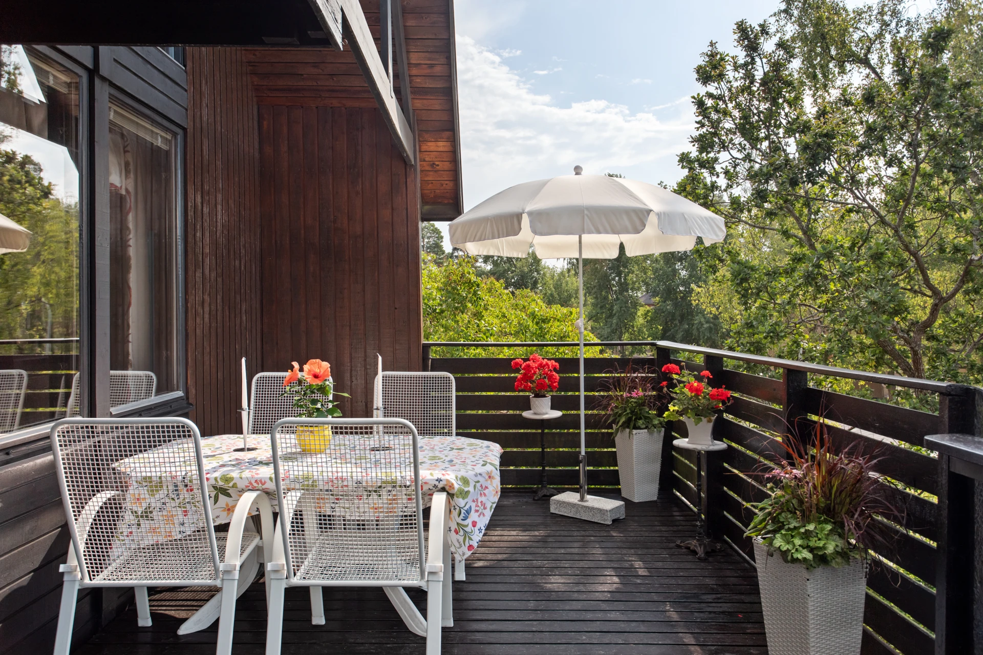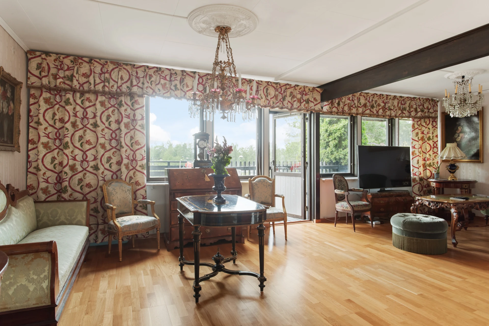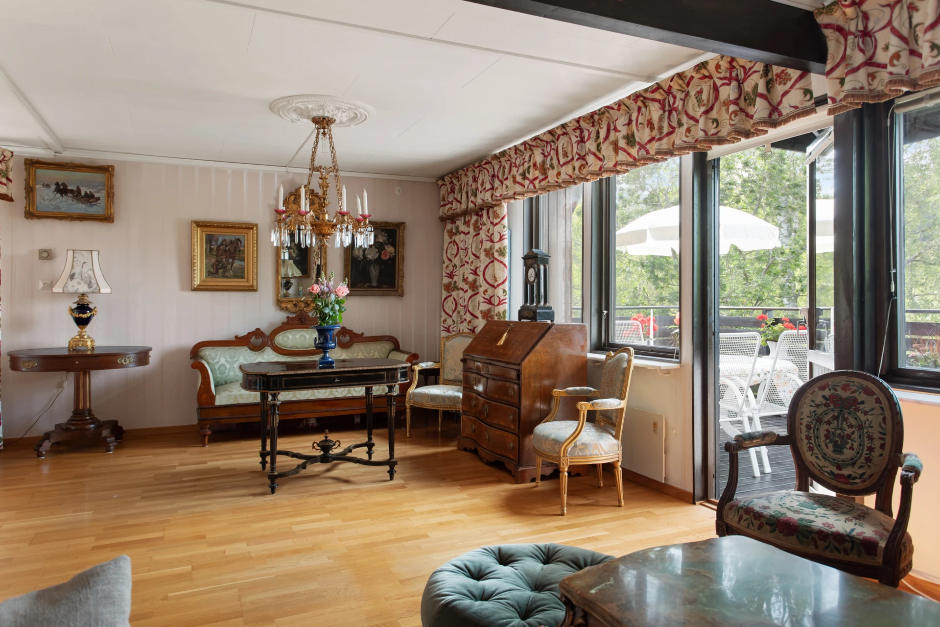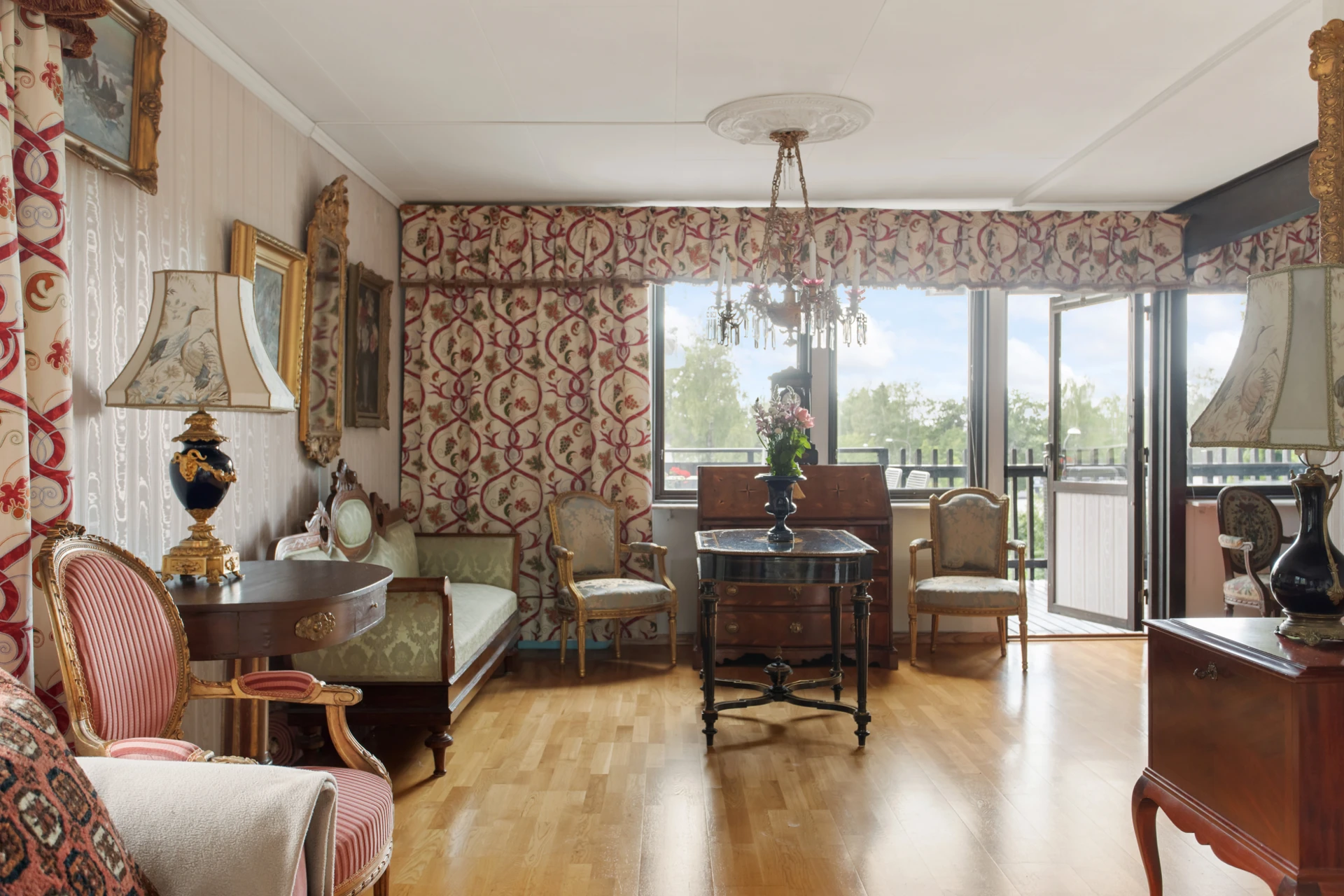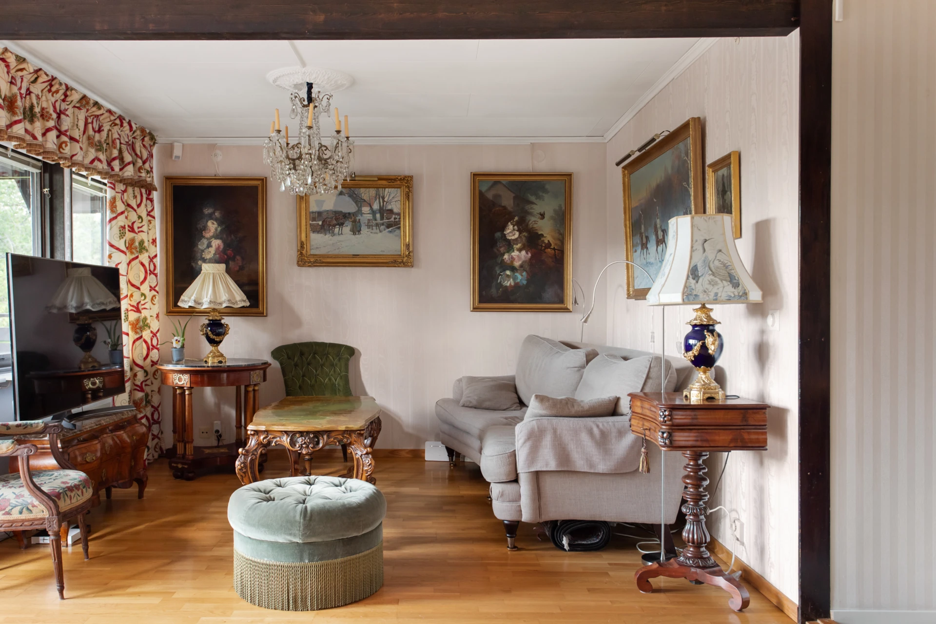 Parkettgolv och tapetserade ljusa väggar. Rummet går att dela av till ytterligare ett sovrum. Fönsterpartier och utgång till altan.