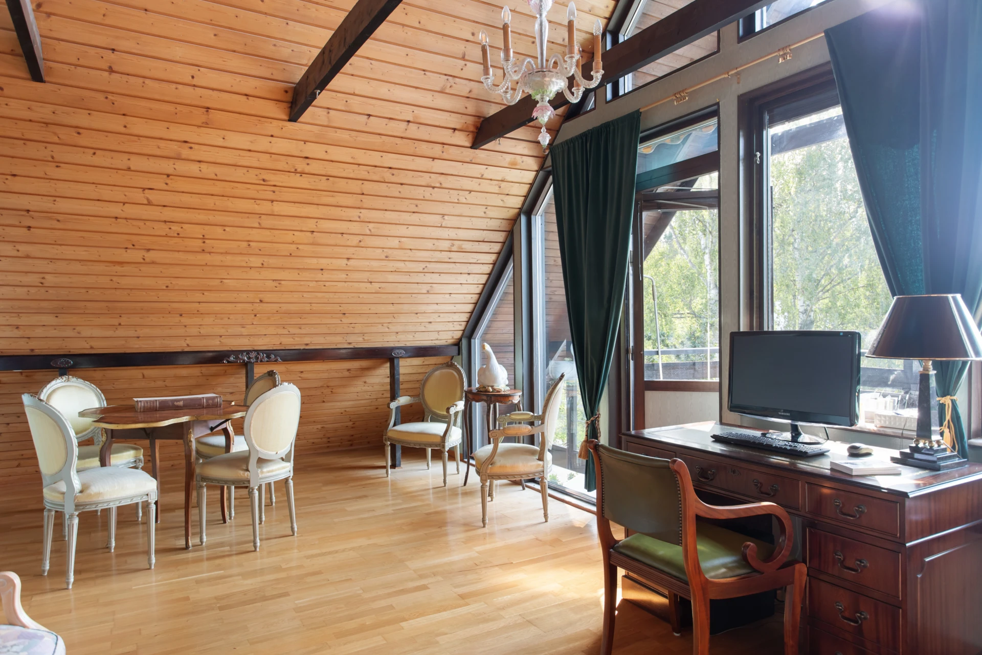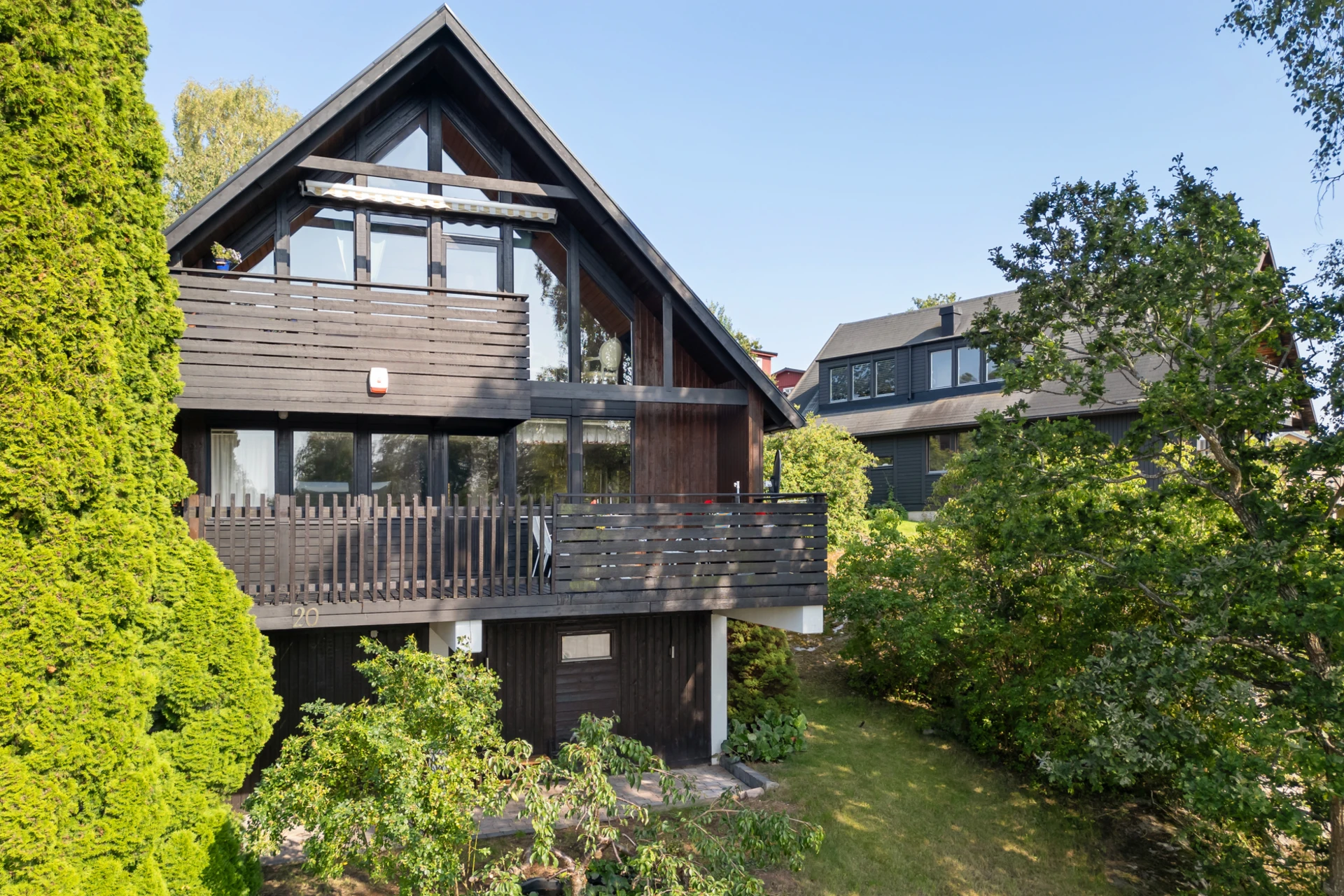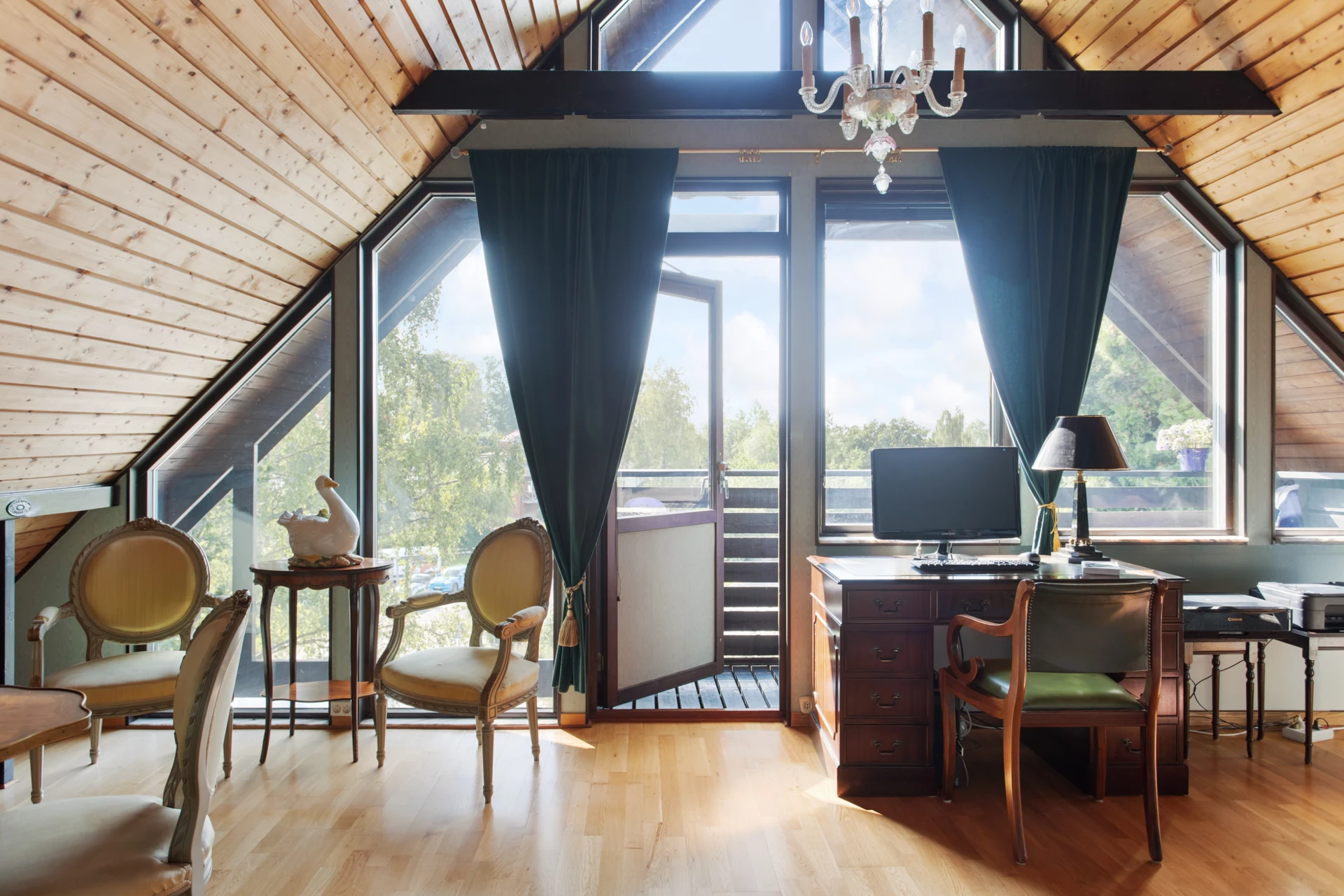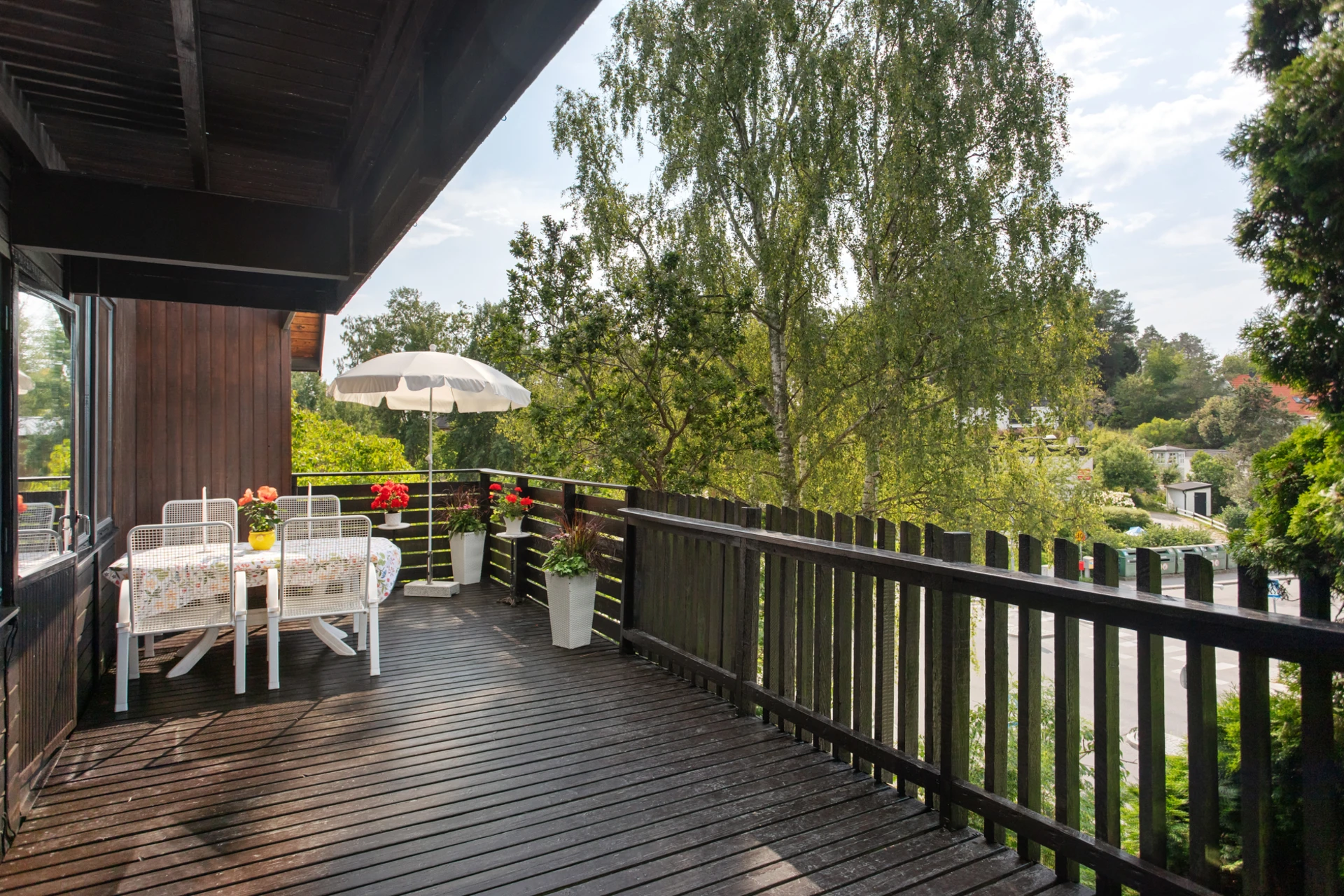 Parkettgolv och ljusa väggar samt snedtak. Stort fönsterparti och utgång till balkong. Tre inbyggda garderober intill trappen. Takvärme.