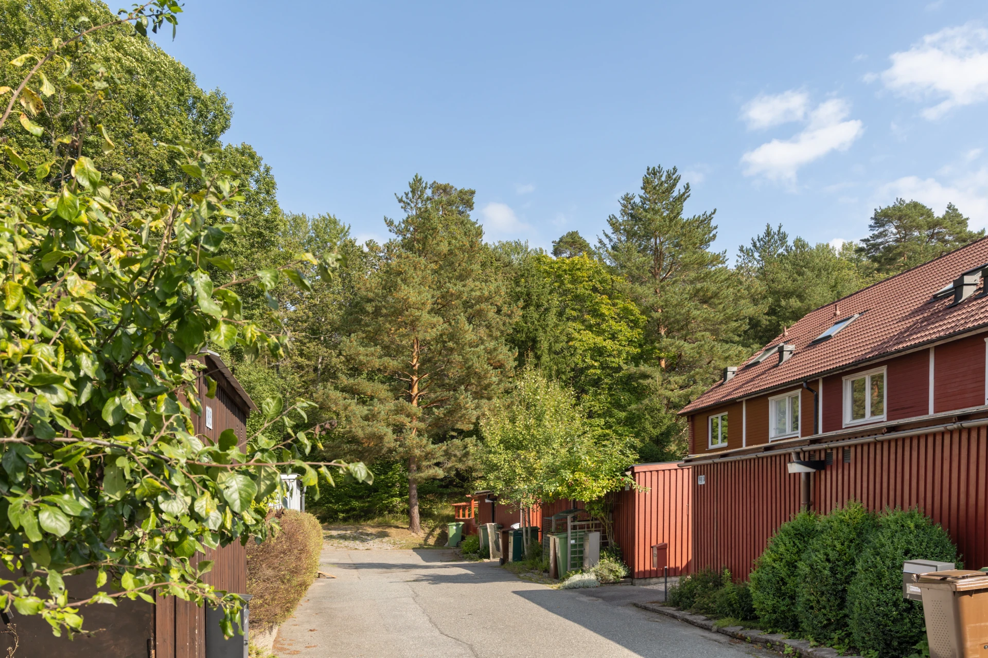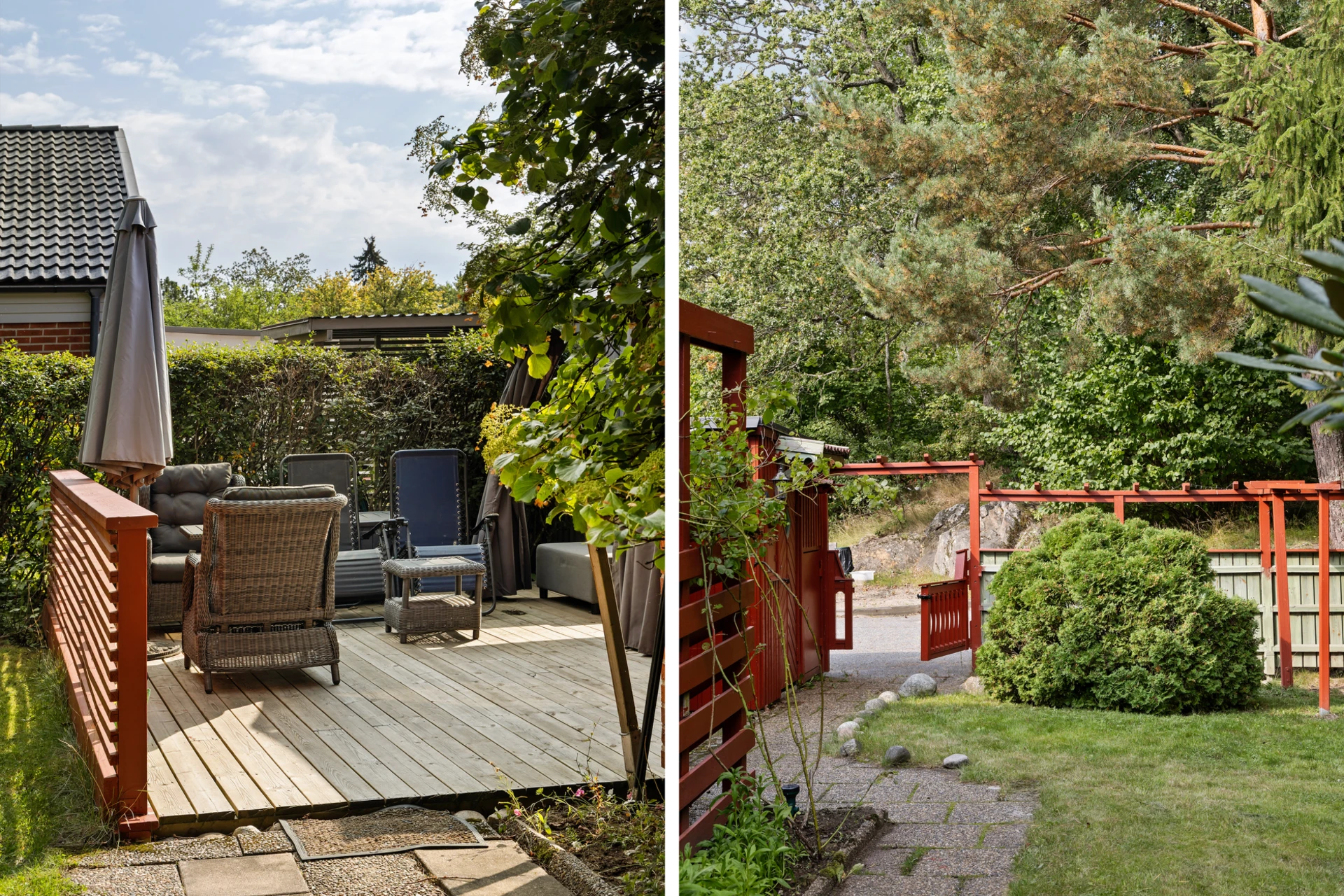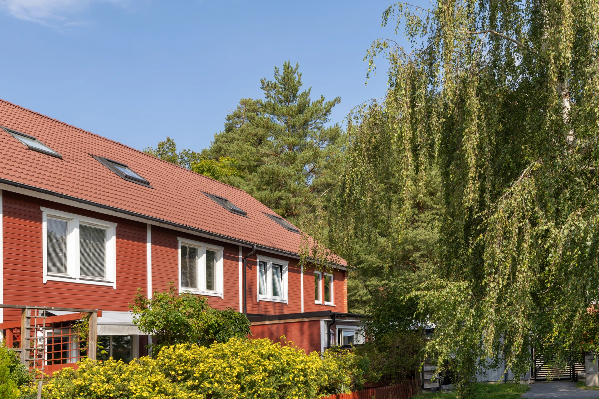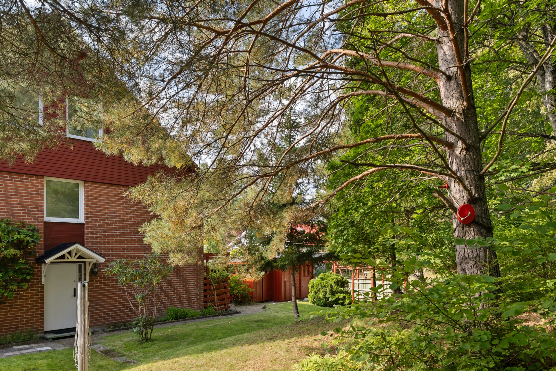 Välkommen till detta fina gavelradhus längst in på gatan och med ett av områdets bästa läge med skogen som granne. Huset är disponerat på tre plan med de sociala ytorna på entréplan. Härifrån nås bostadens båda altaner och den enastående trädgården. Här finner man ro och avkoppling med natur direkt in på knuten. Det privata läget ger en avskildhet och ett insynsskydd som är få förunnat. På mellanplanet finns två bra sovrum, ett väl tilltaget badrum och gott om förvaring. I dagsläget disponeras det övre planet som ett allrum, men det går att dela av till fler sovrum för den som så önskar.