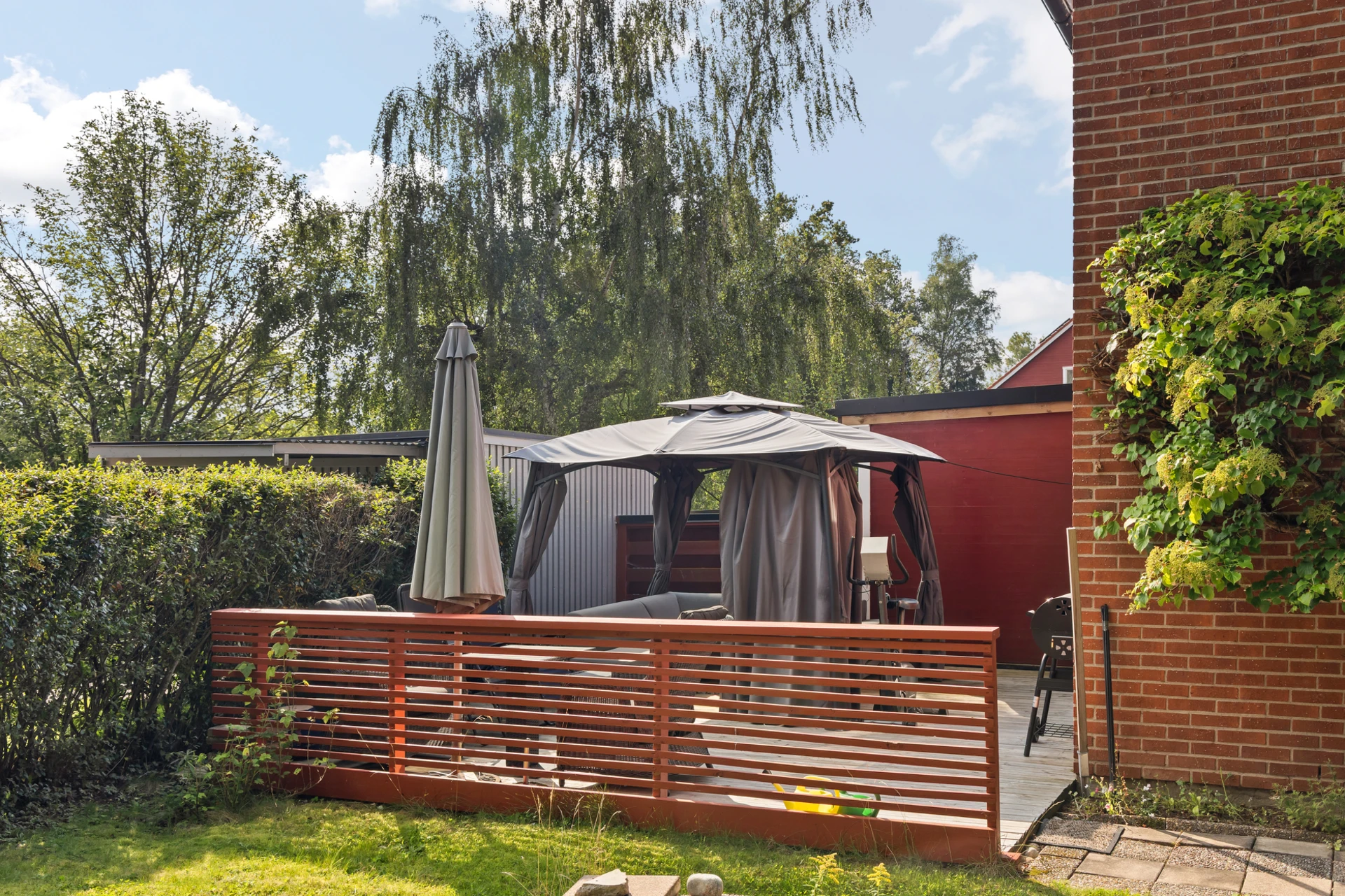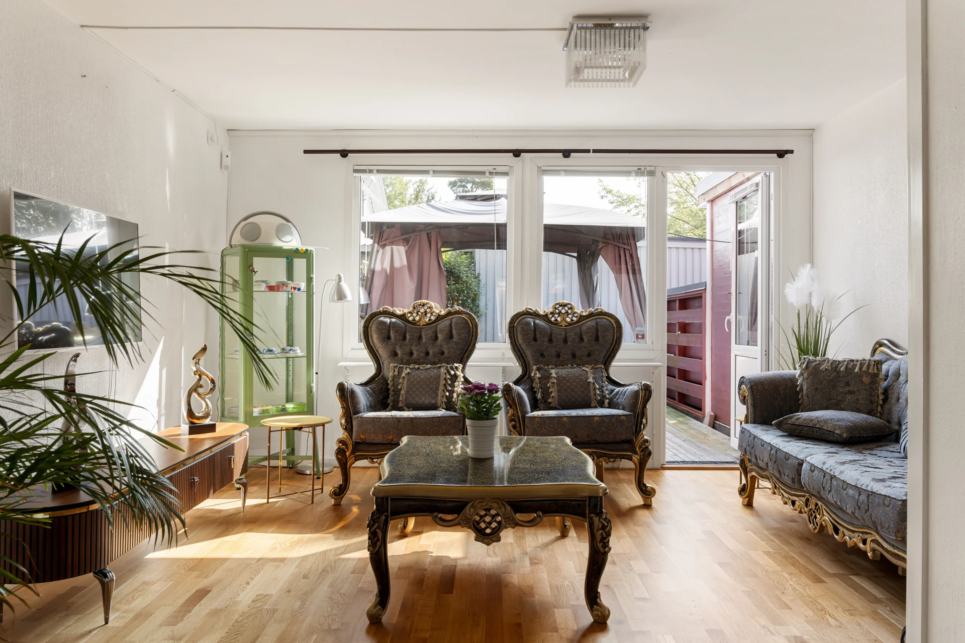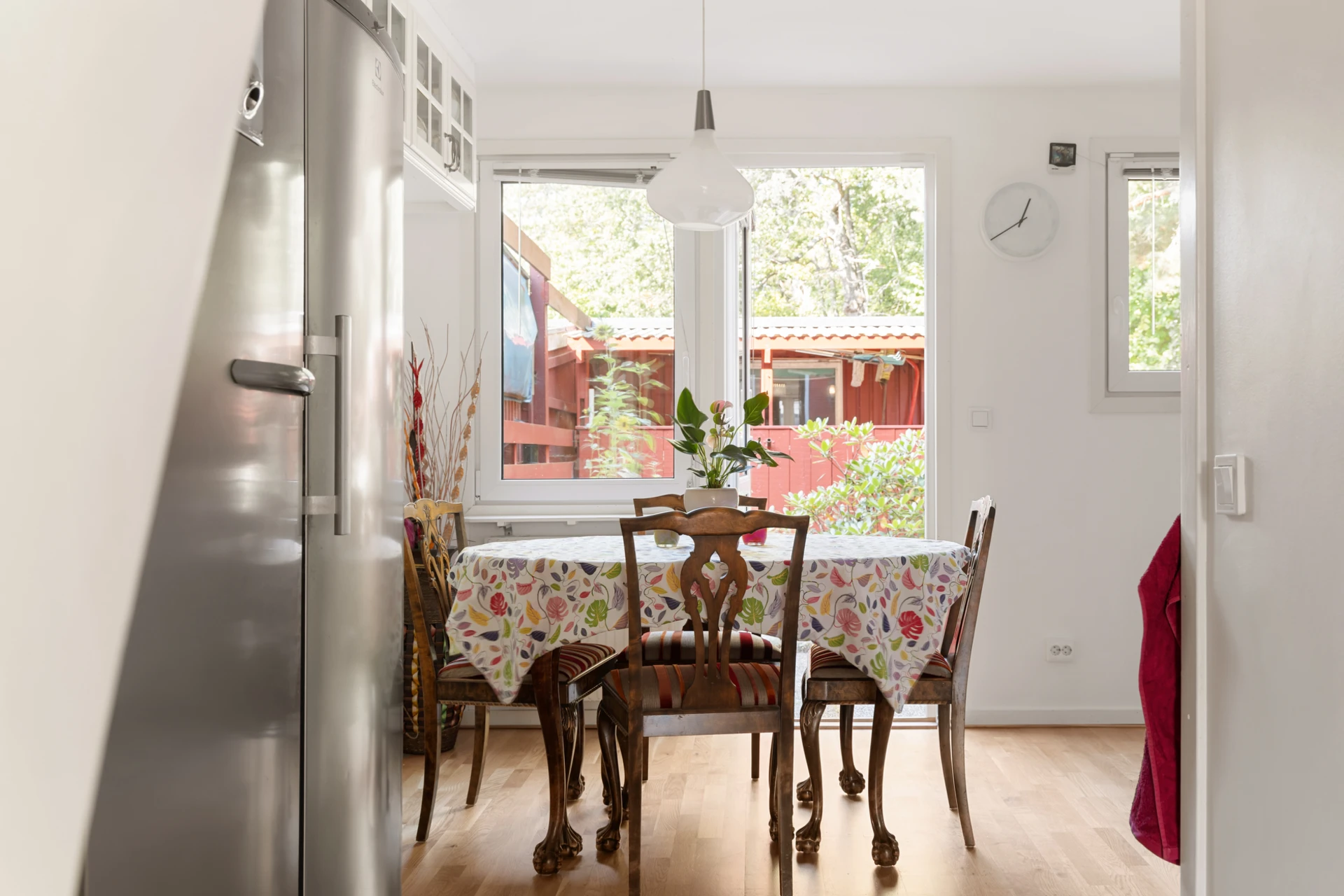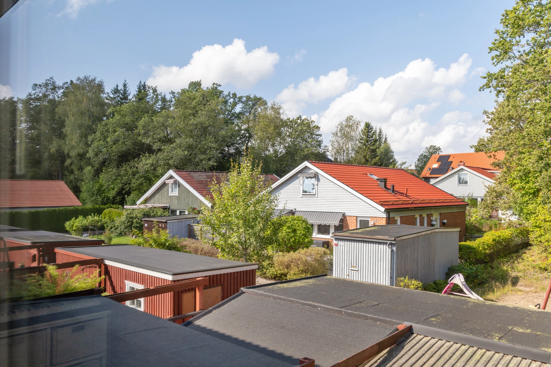 Välkommen till detta fina gavelradhus längst in på gatan och med ett av områdets bästa läge med skogen som granne. Huset är disponerat på tre plan med de sociala ytorna på entréplan. Härifrån nås bostadens båda altaner och den enastående trädgården. Här finner man ro och avkoppling med natur direkt in på knuten. Det privata läget ger en avskildhet och ett insynsskydd som är få förunnat. På mellanplanet finns två bra sovrum, ett väl tilltaget badrum och gott om förvaring. I dagsläget disponeras det övre planet som ett allrum, men det går att dela av till fler sovrum för den som så önskar.