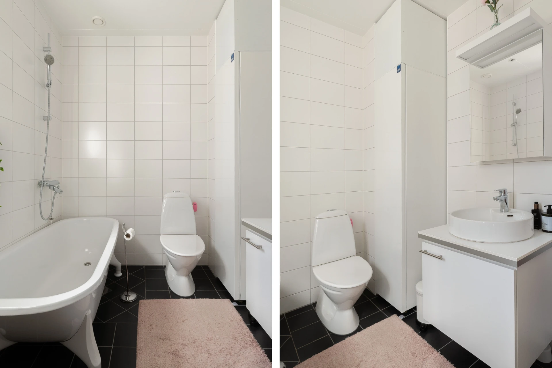 • Två helkaklade badrum med tvättavdelning