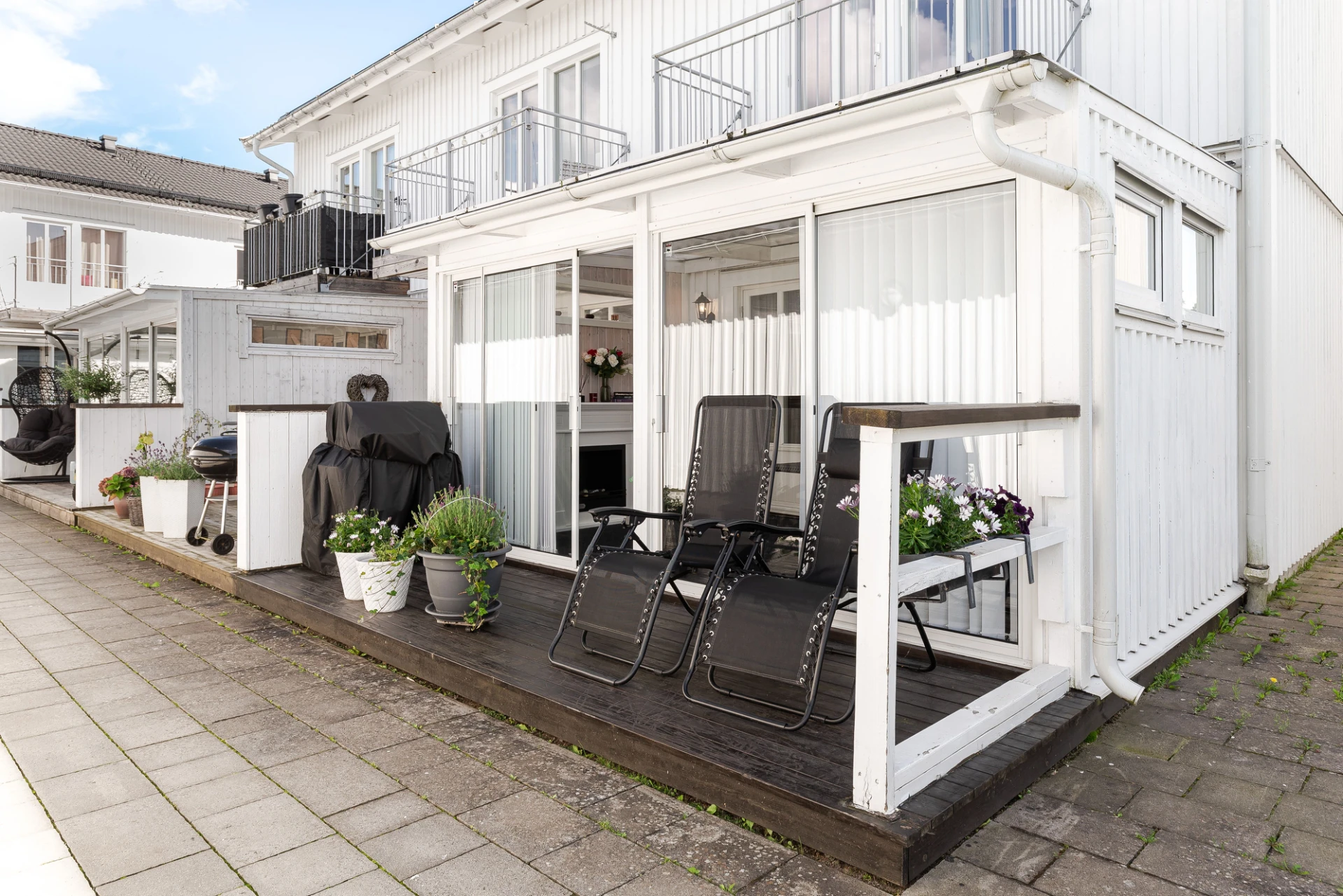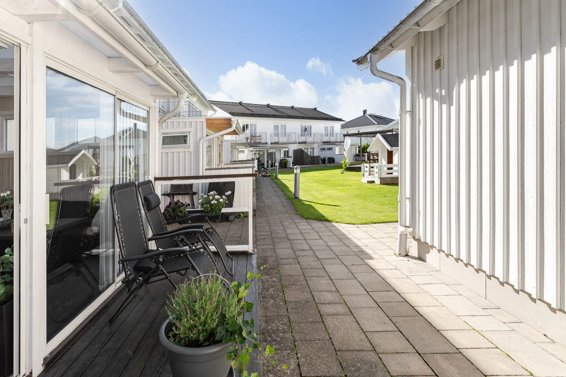 Trivsamt radhus i mycket fint skick med uteplats i nordvästläge och ett generöst uterum som förlänger säsongen och blir en naturlig samlingsplats för både vardag och umgänge. Här bor du bekvämt i ett hem byggt 2014, fördelat på 3 rum och kök om 80 kvm, perfekt för den lilla familjen, det äldre paret eller för dig som vill bo lättskött och hemtrevligt i ett modernt område.
