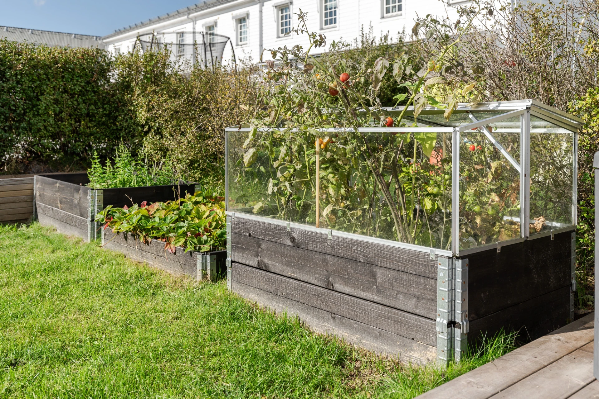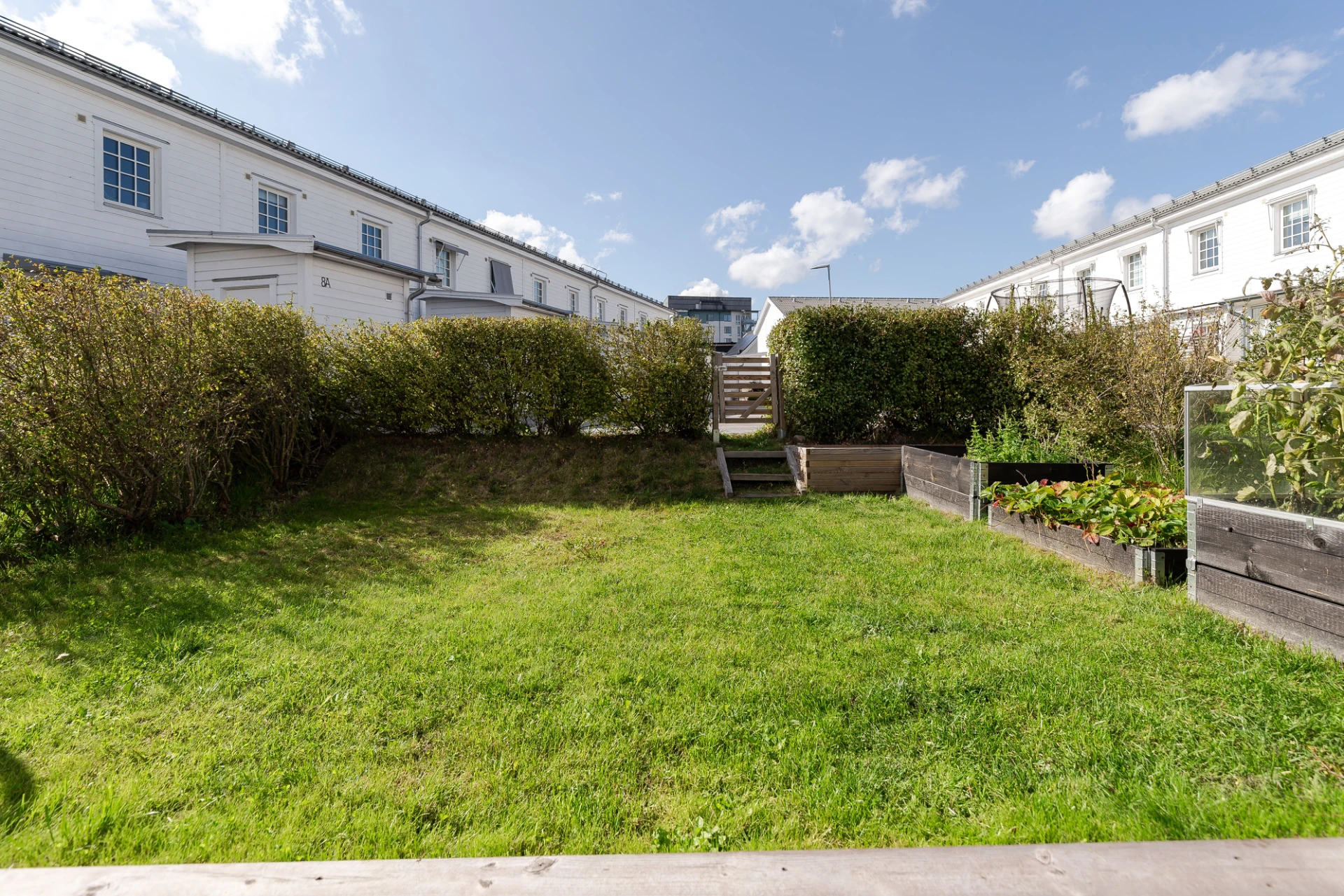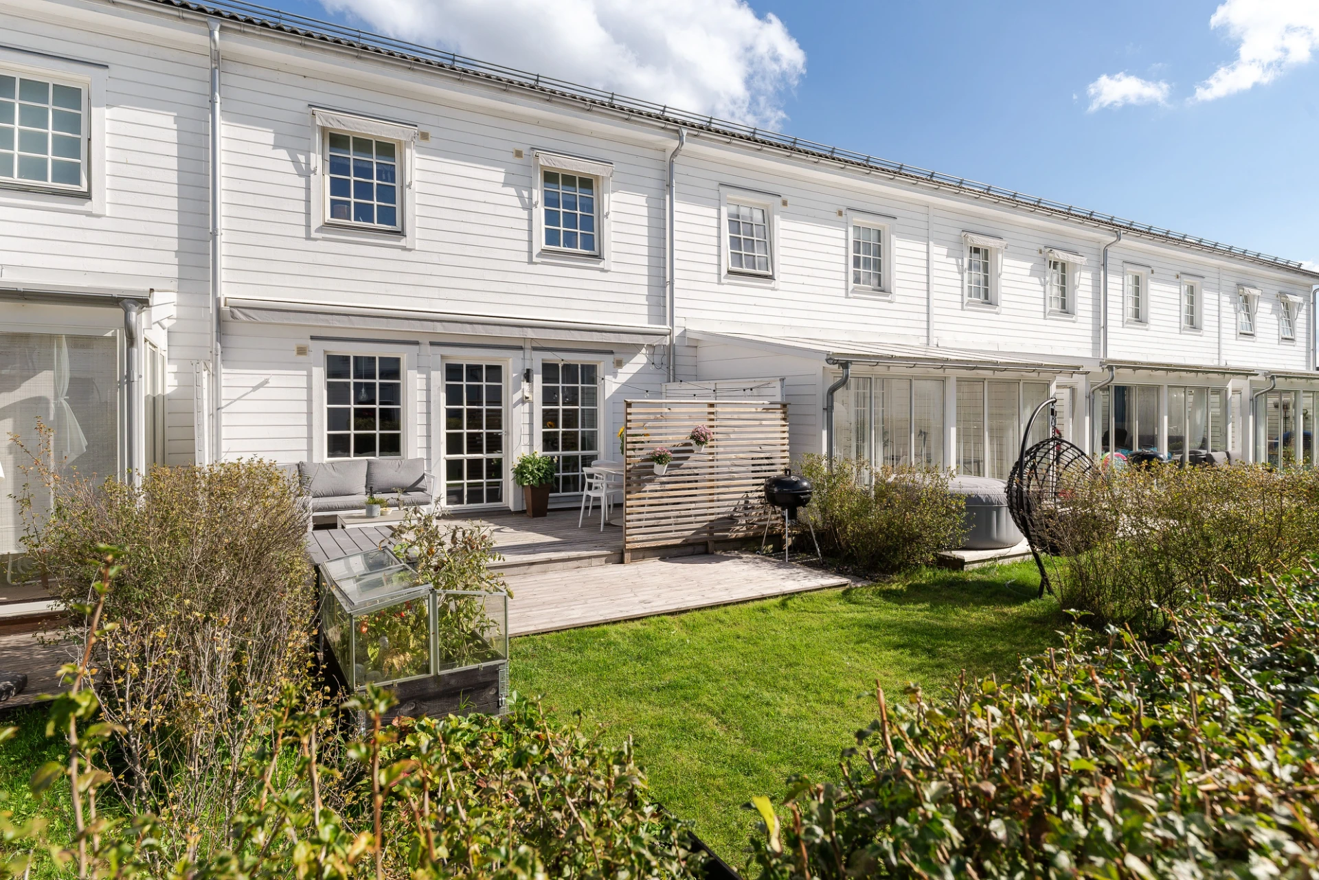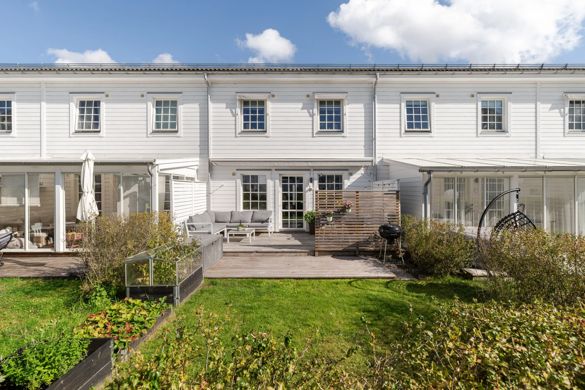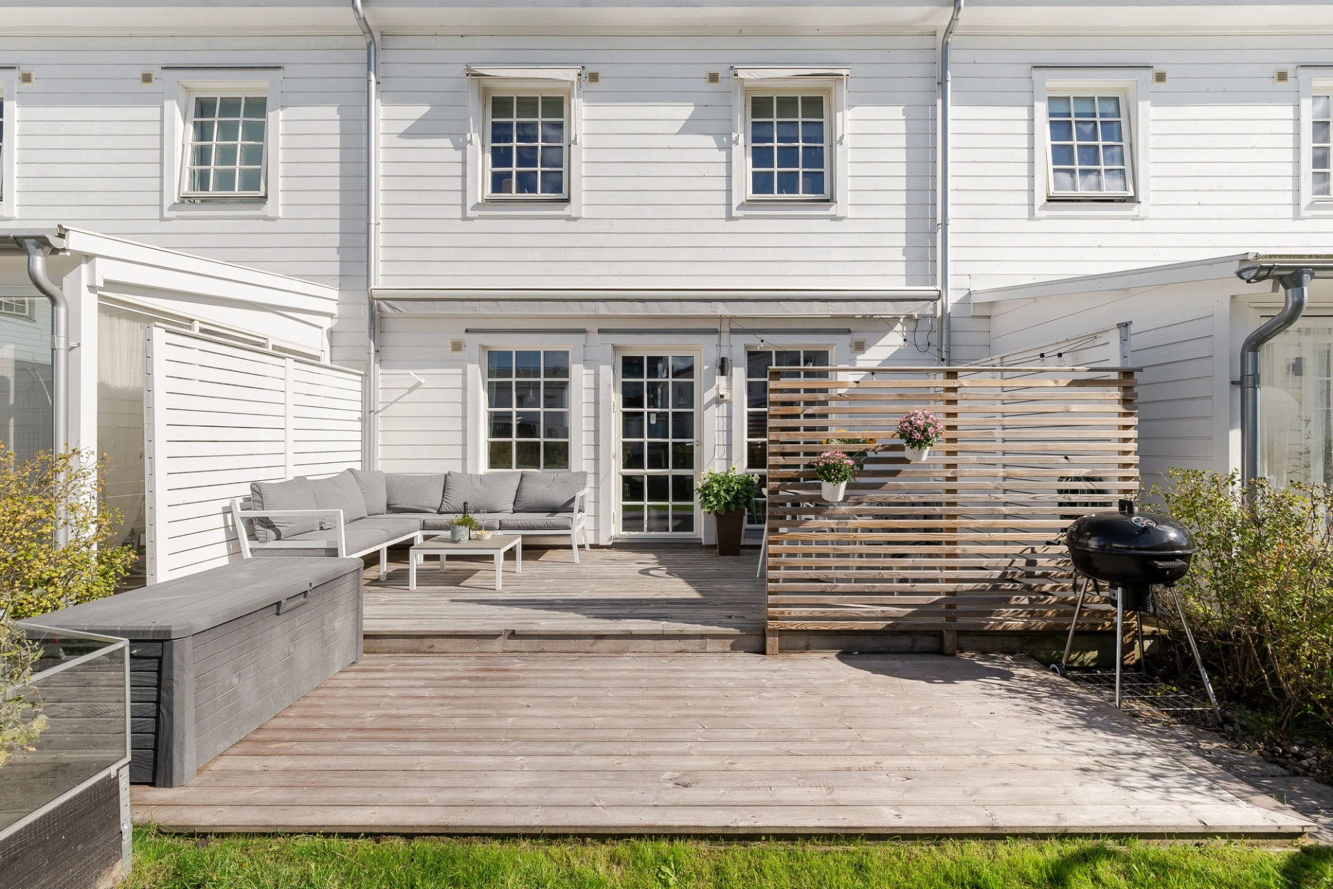 Altan i anslutning till gräsyta direkt västerläge med värmande eftermiddags- och kvällssol.