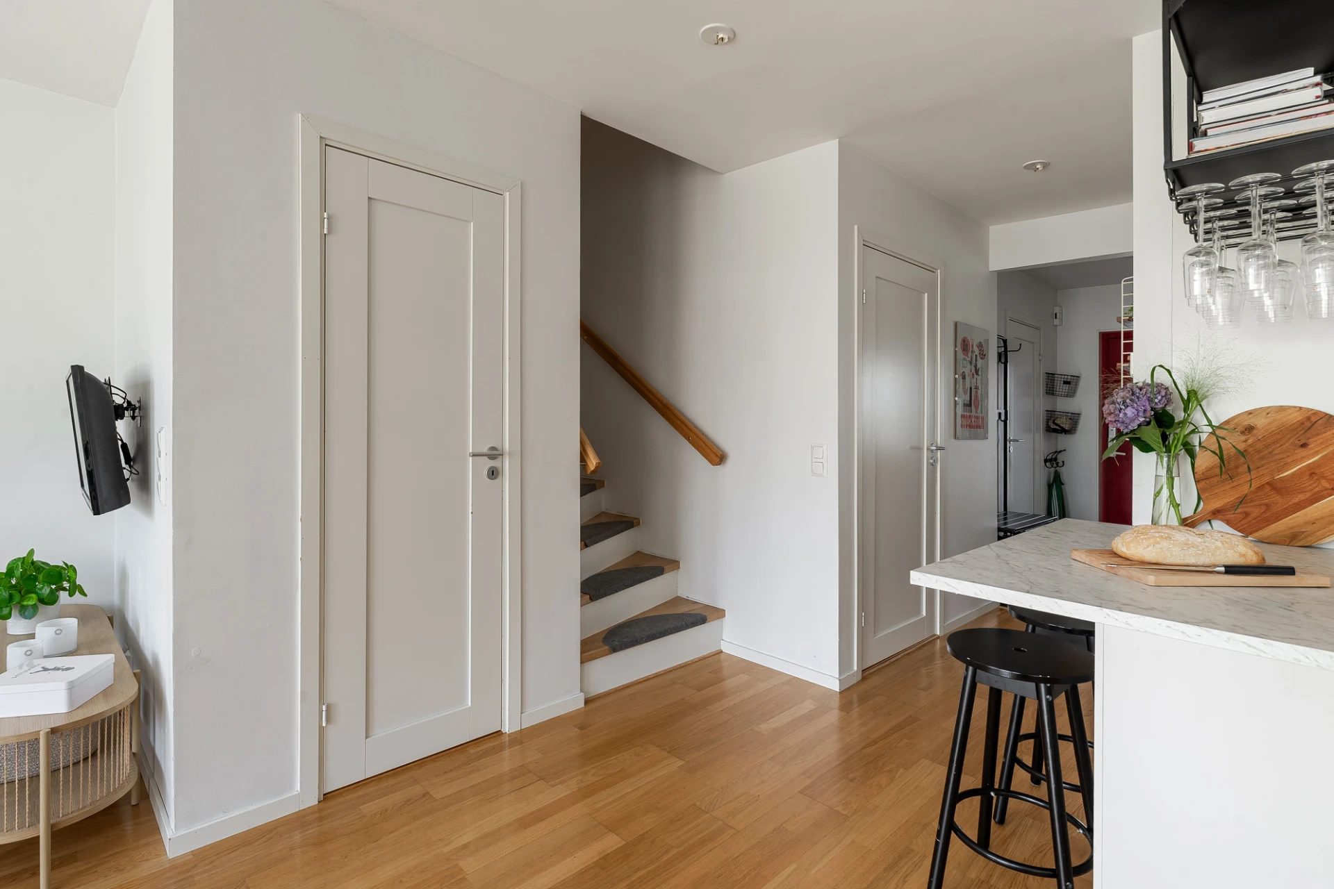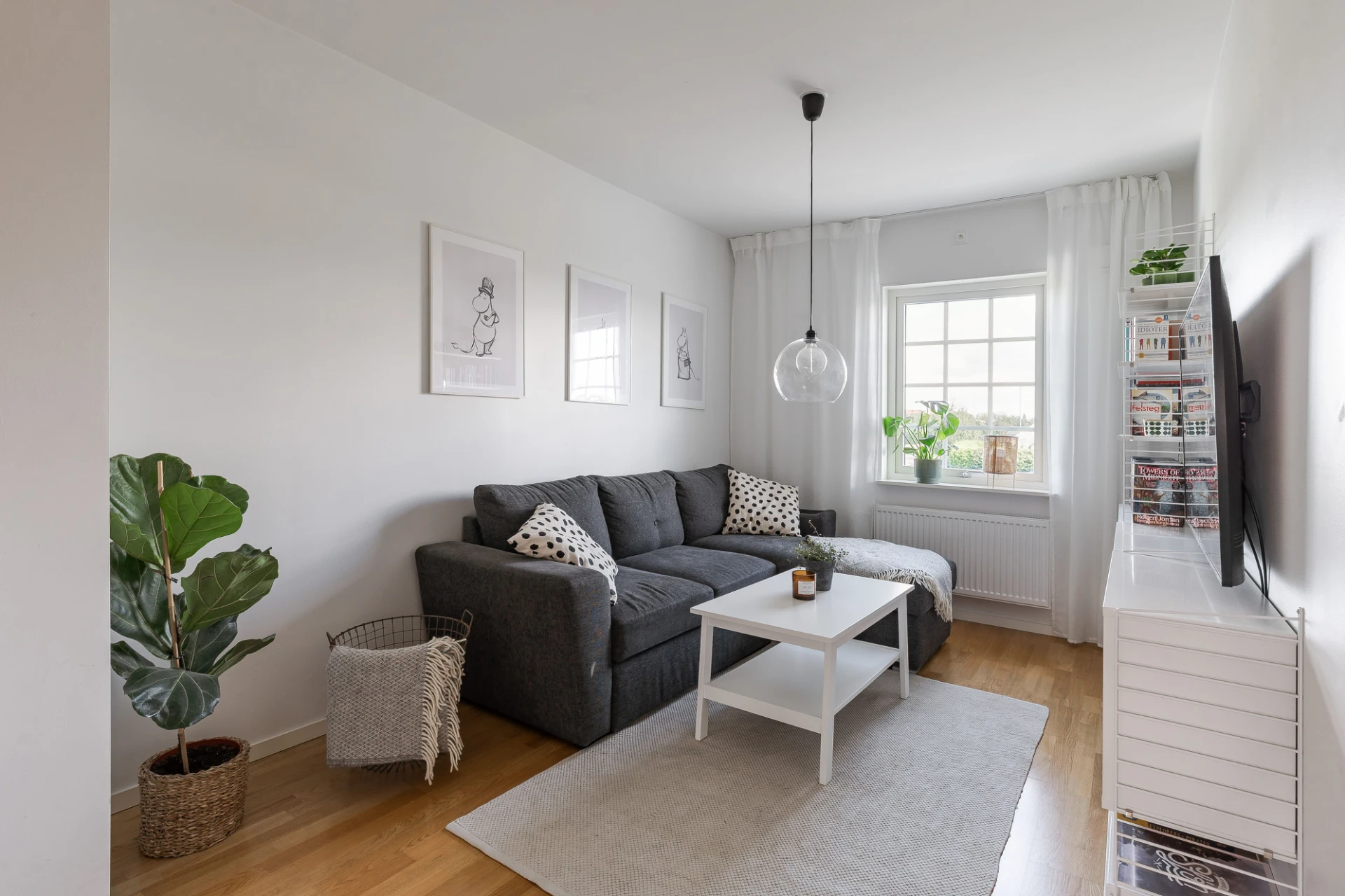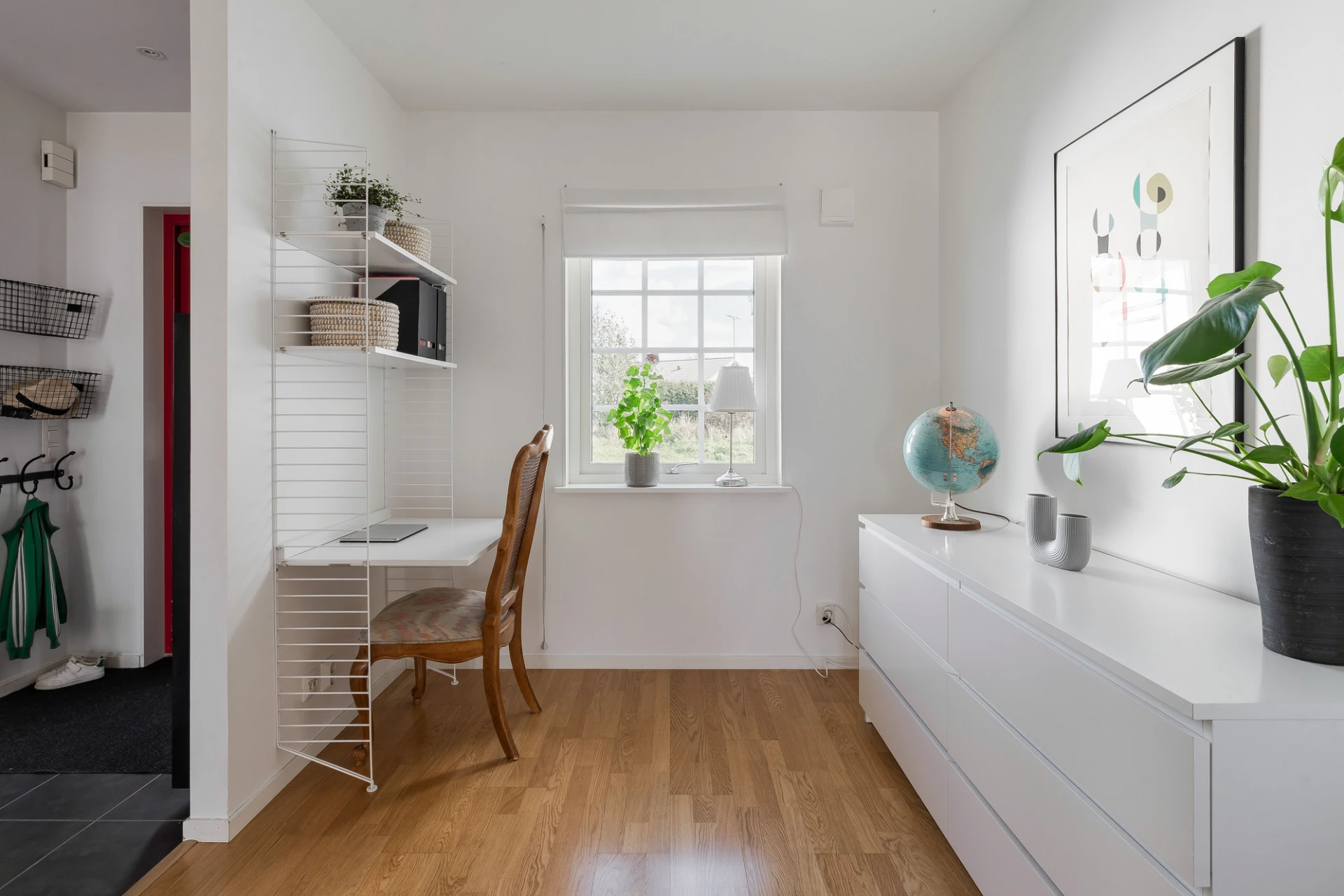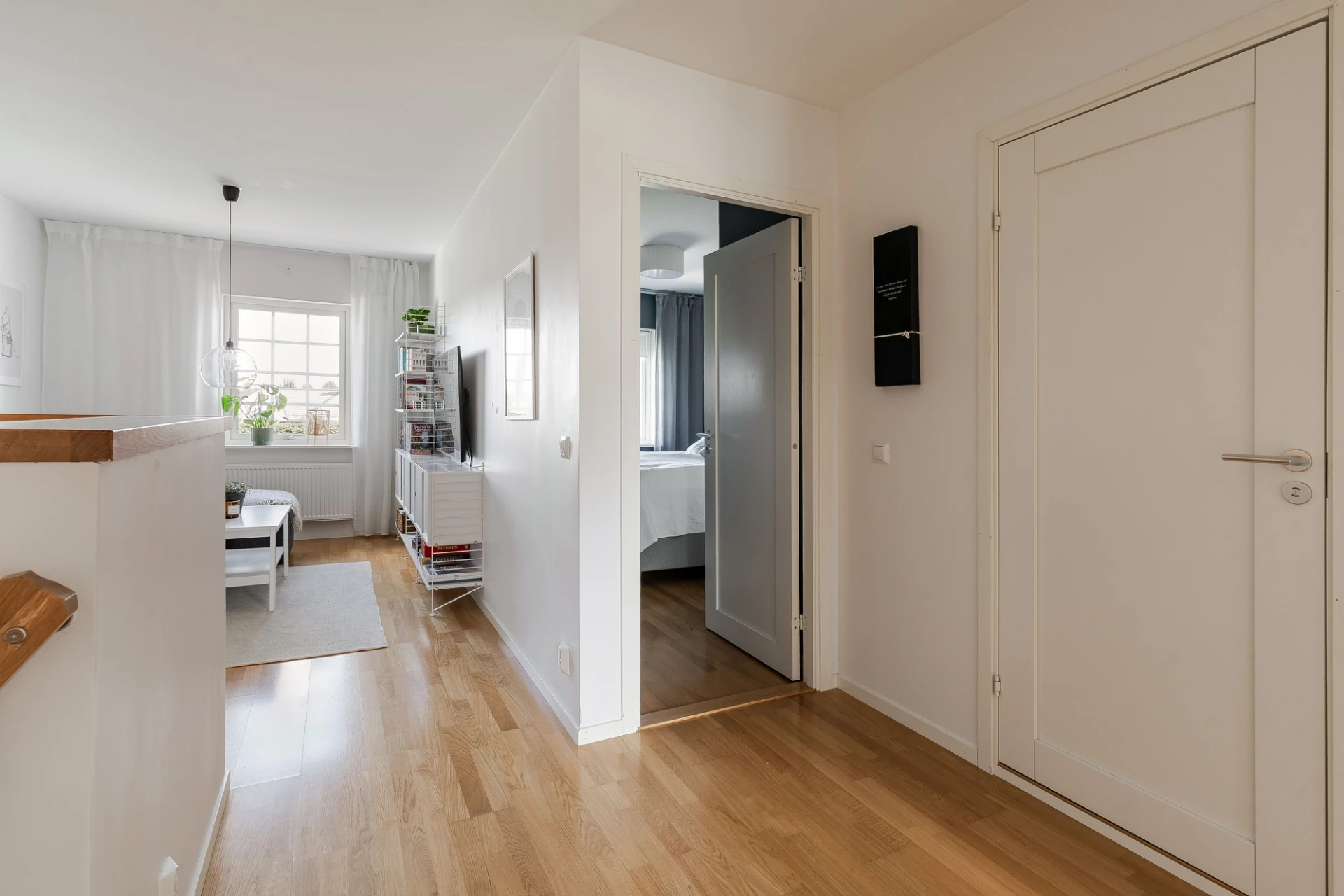 Mysigt allrum med parkettgolv och målade väggar. Kan vid behov nyttjas som ett fjärde sovrum.