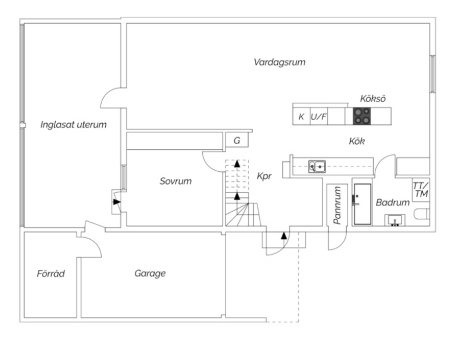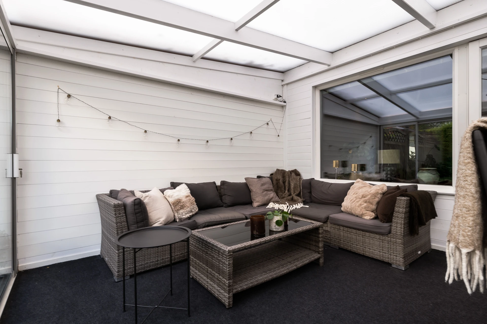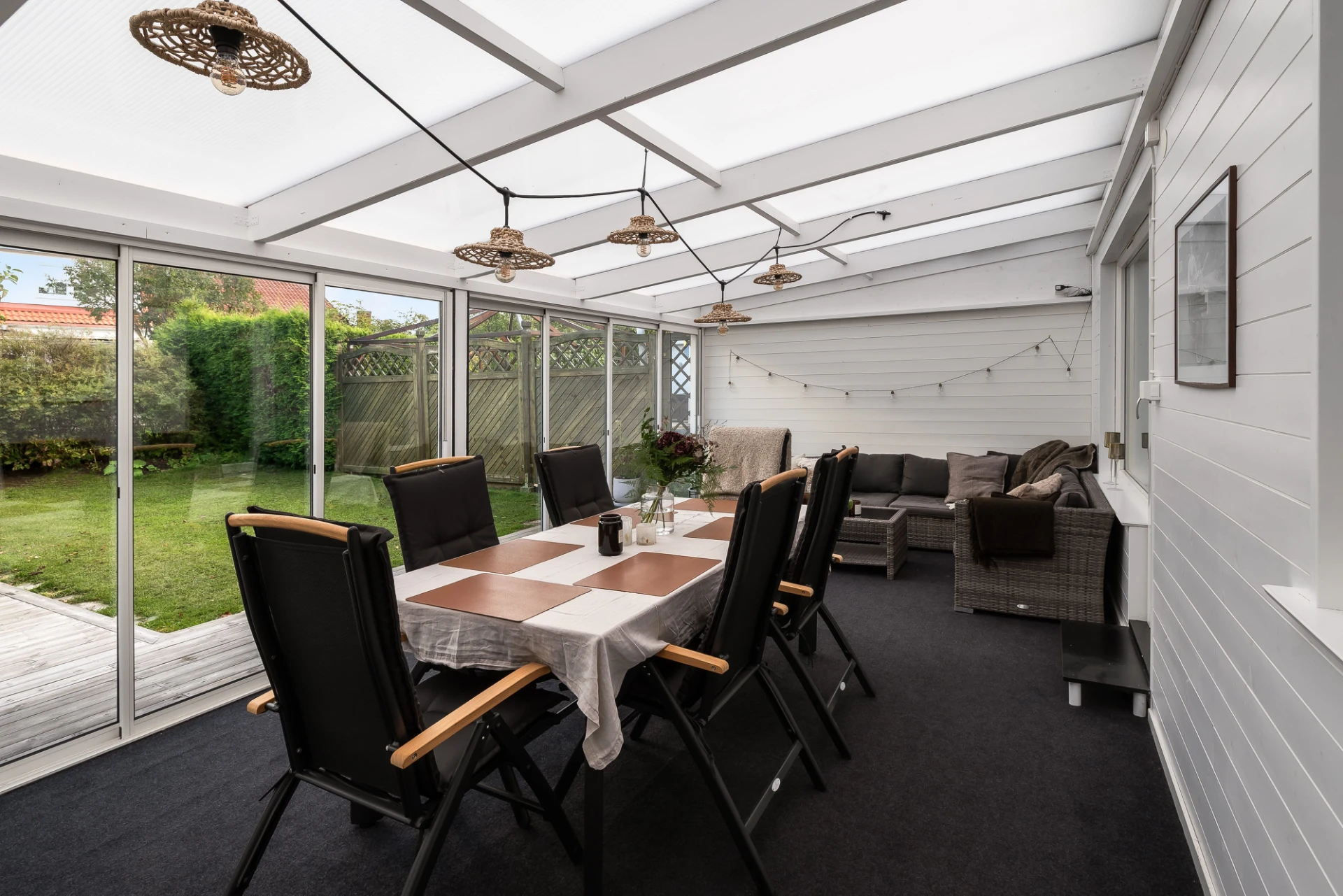 Stort generöst uterum byggt 2018, stora fina fönsterpartier med skjutdörrar och kondensfritt tak. Isolerat vår/höst. Soldäck utanför.