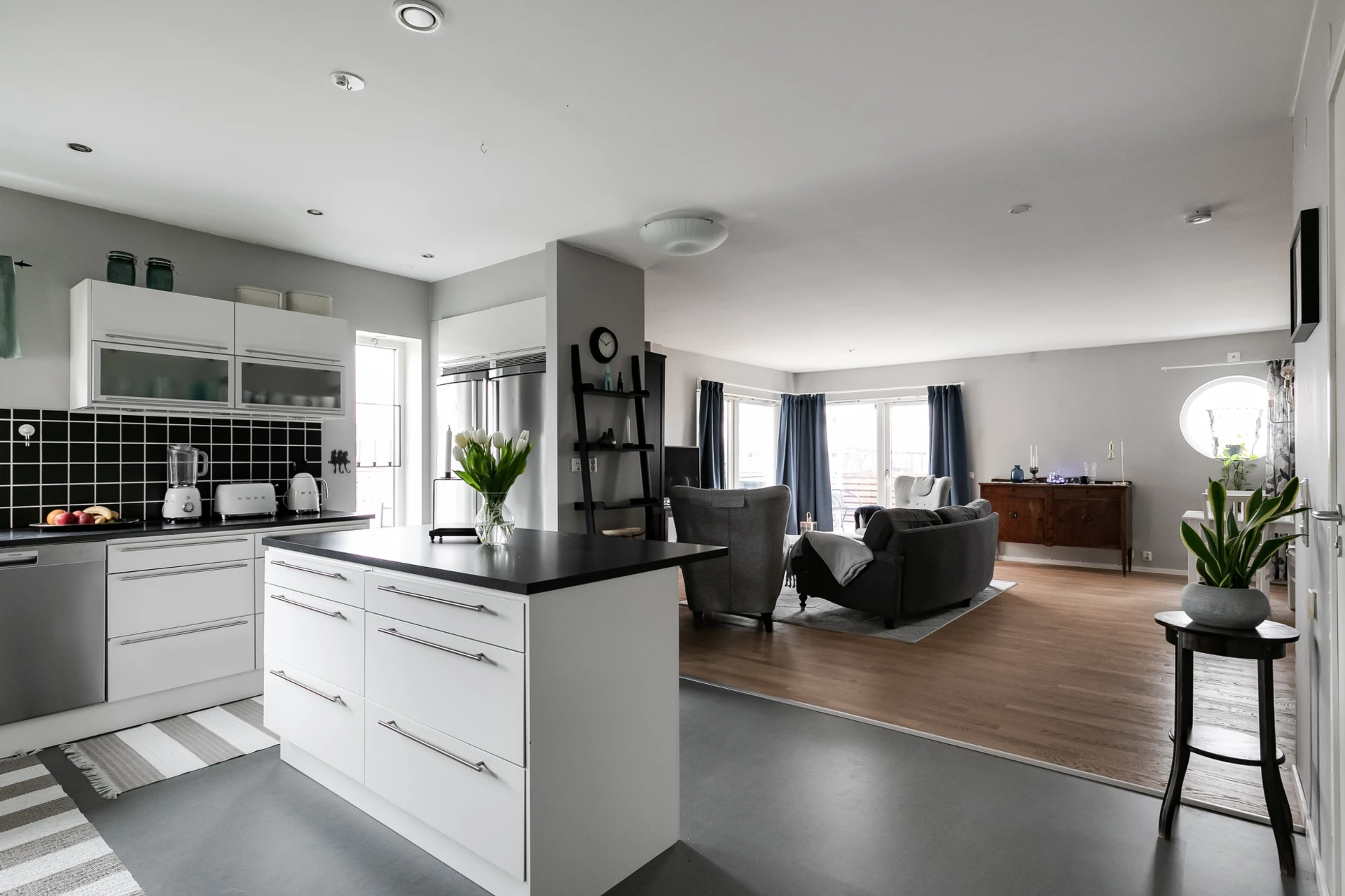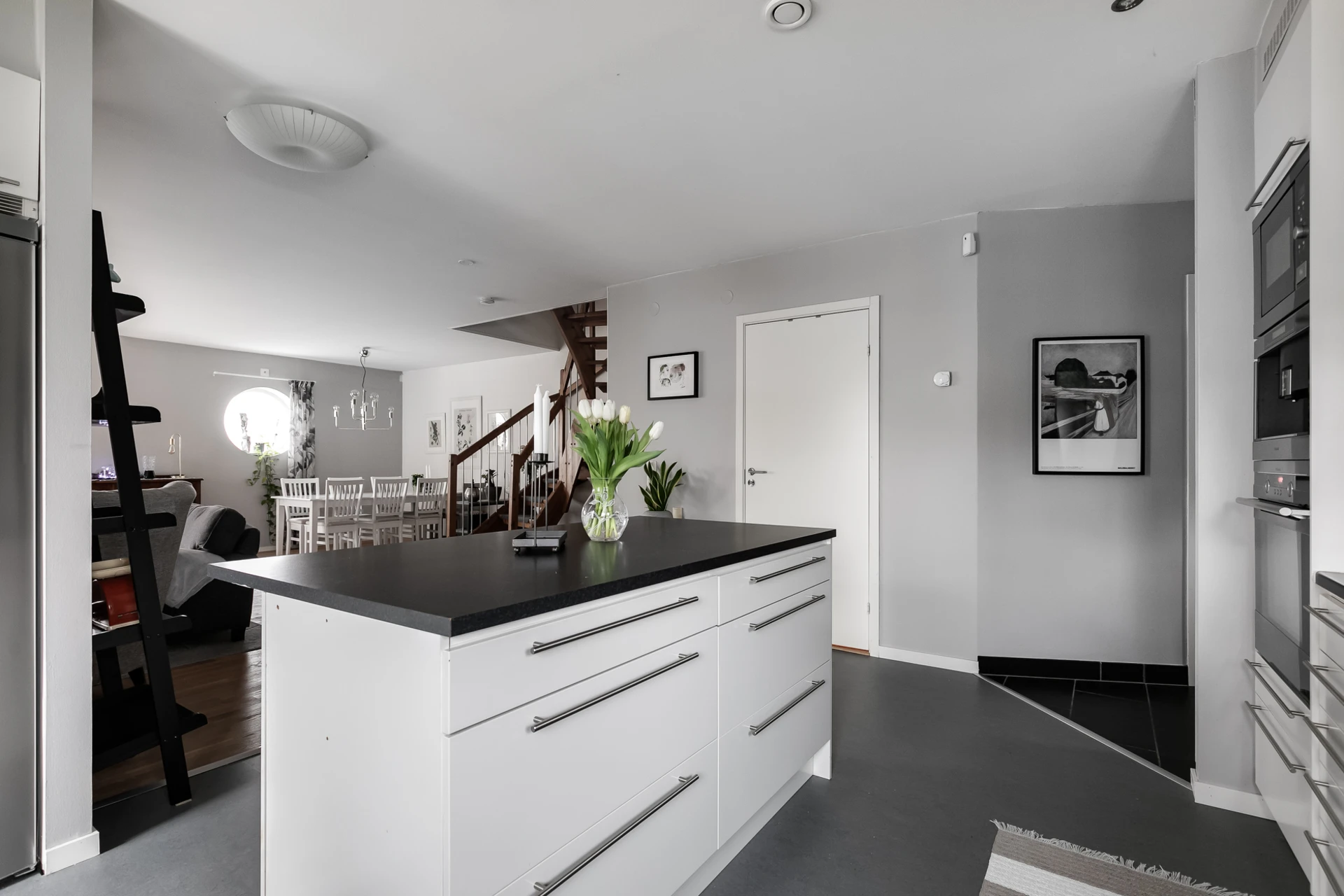 Rummet är inbjudande och perfekt för avkoppling och social samvaro med sin generösa planlösning och fantastiska ljusinsläpp. här finns gott om plats för soffgrupp och matplats. Du har även direkt tillgång till ett inbjudande inglasat uterum. Målade väggar och parkettgolv.