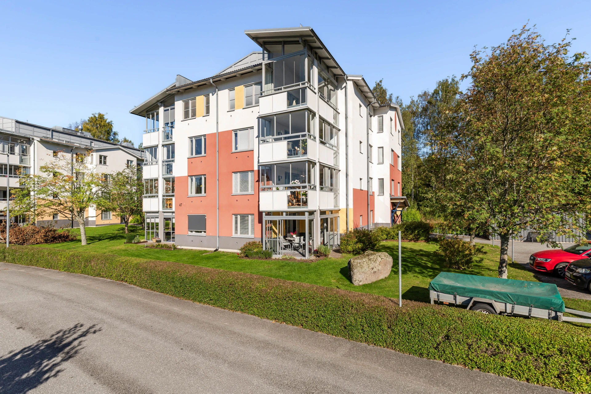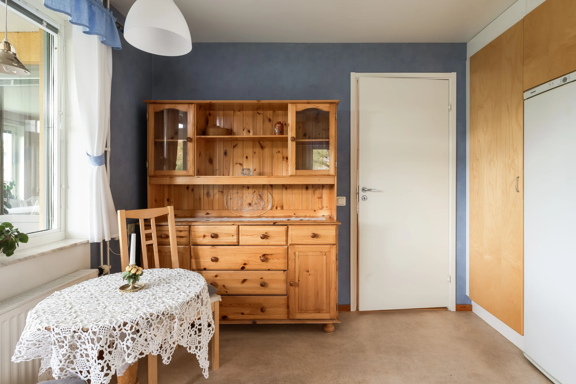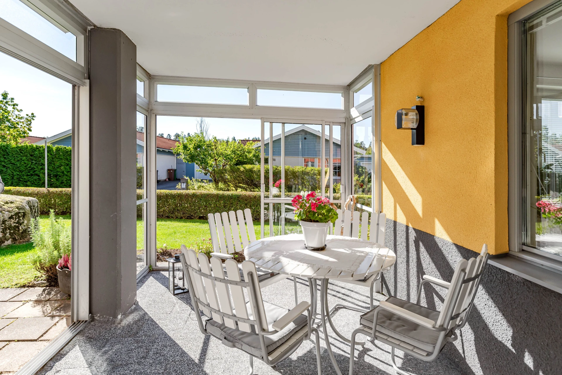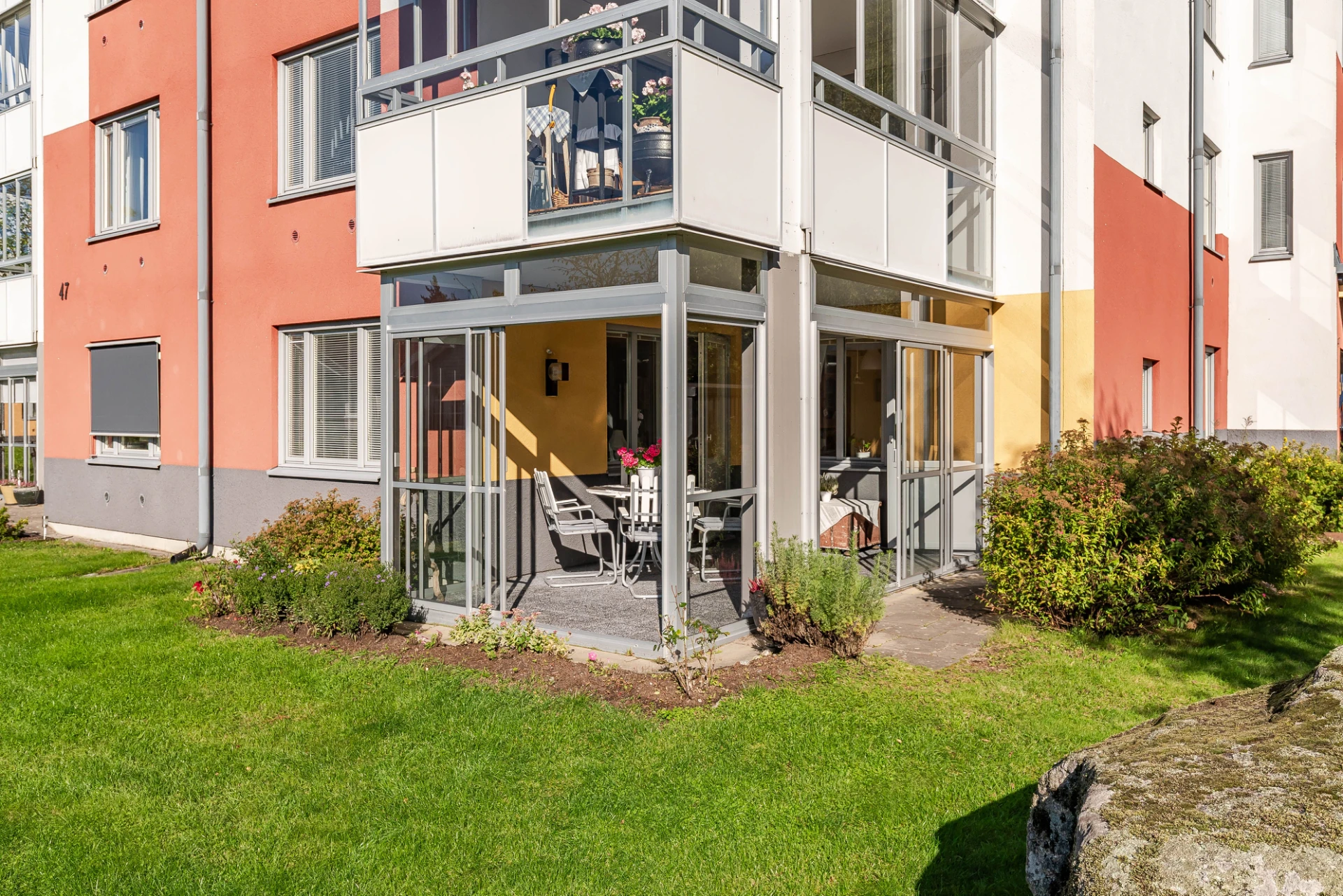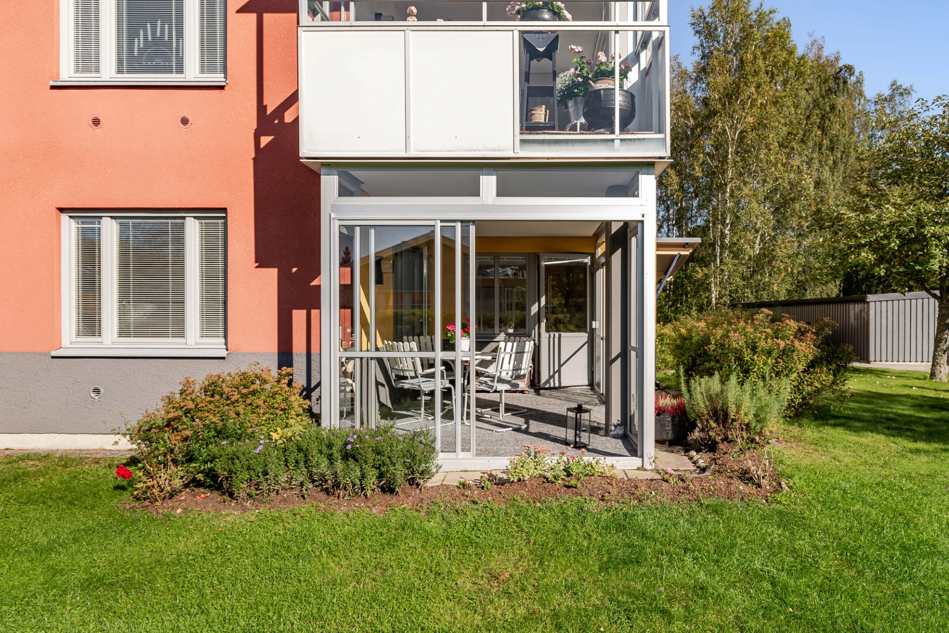 Välkommen till denna trivsamma tvåa med ett stort inglasat uterum! Här finns alla praktiska möjligheter för ett bekvämt boende såsom tvättstuga på samma våning, hiss som går ända upp till det stora vindsförrådet och matbutik, apotek samt gym finns lite drygt 1 km bort. Förutom vindsförrådet finns även en klädkammare i anslutning till hallen, vilket gör att bostaden har otroligt bra förvaringsutrymmen.