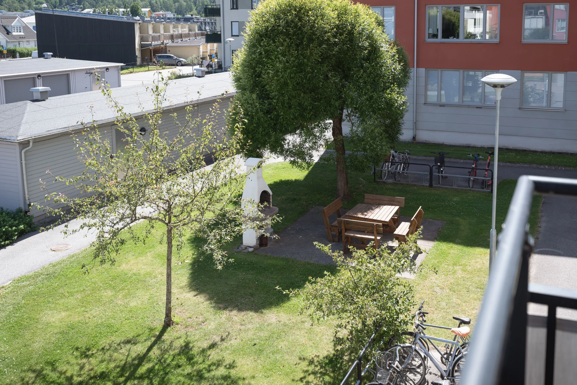 Cykelrum och miljörum med grovsopor och kompostering. Innergård med lekplats.