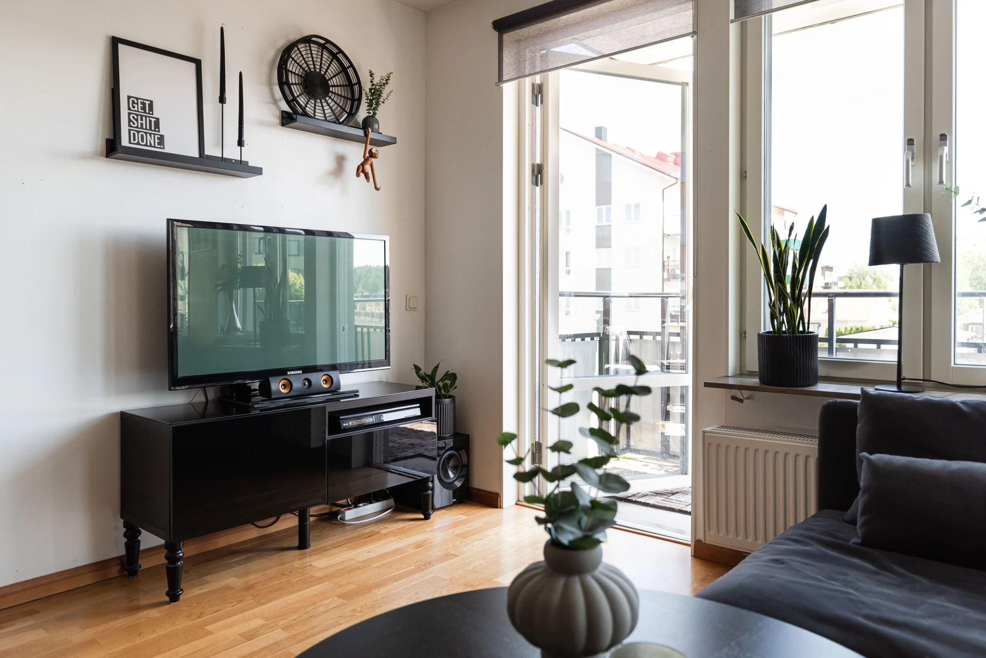 Tv och internet: Tv och bredband (100/100) via Telia. Varje lägenhet har en router och Tv-box.