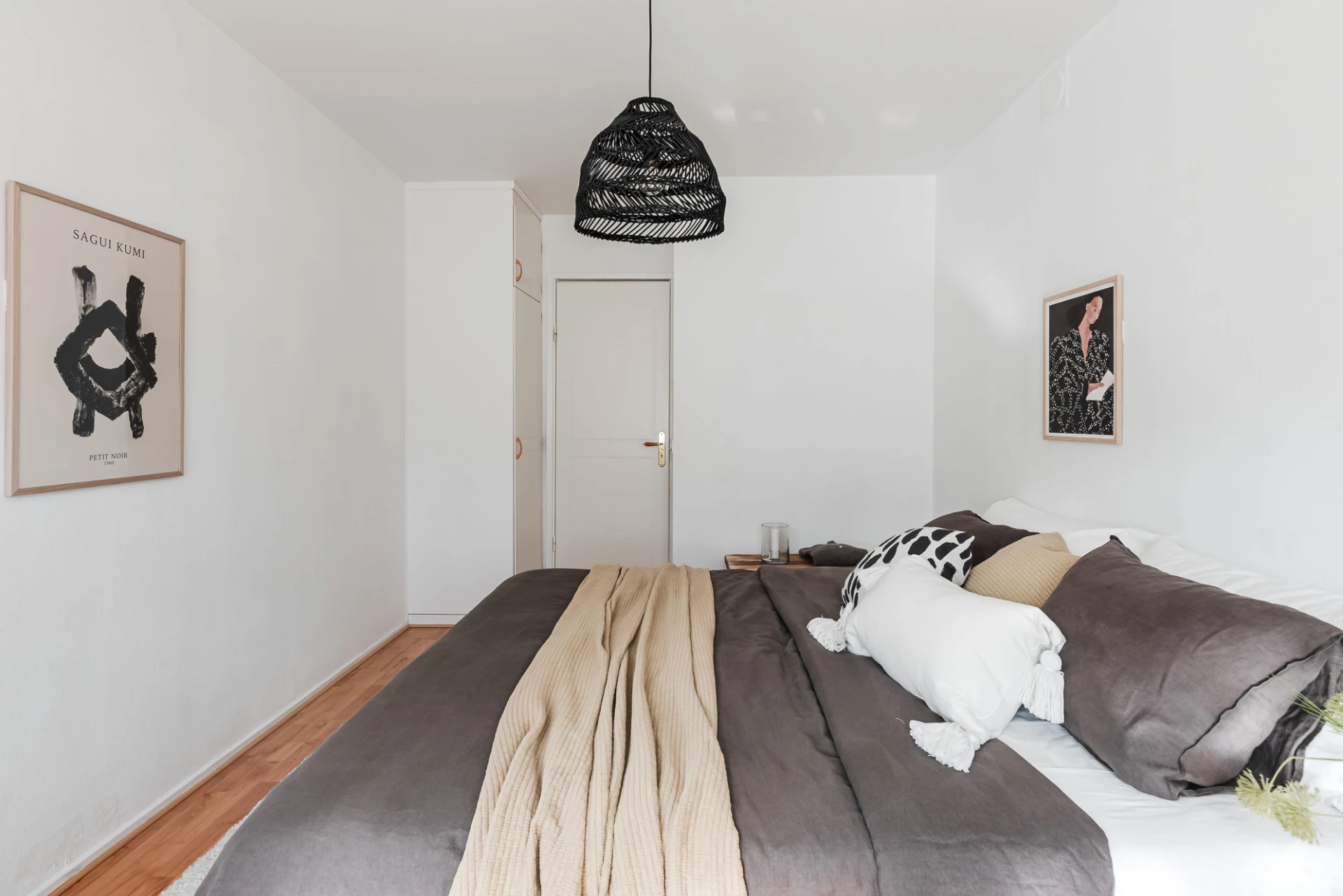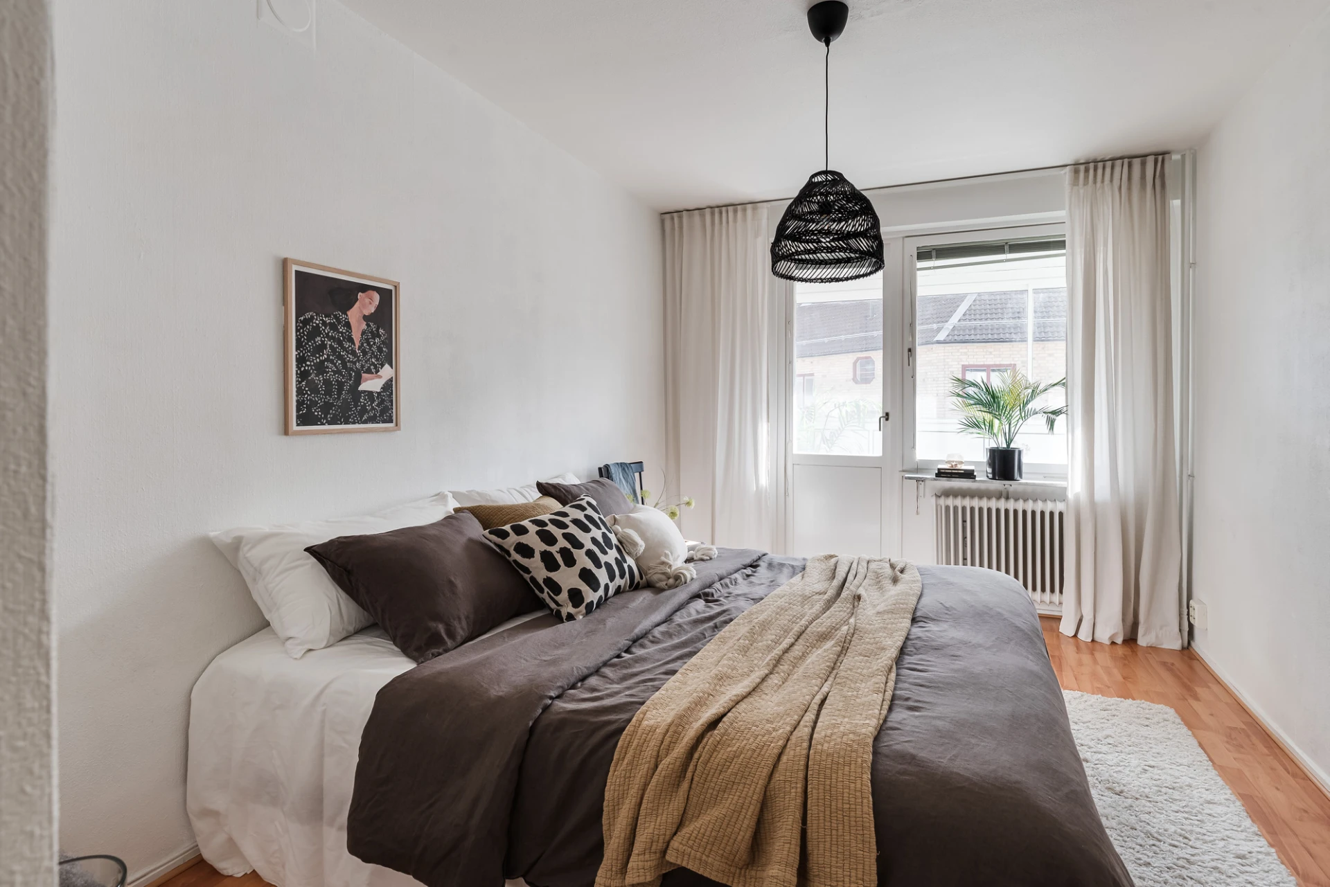 Rymligt sovrum med plats för dubbelsäng och skrivbord. Från rummet nås balkongen som ger fint ljusinsläpp och en härlig förlängning av rummet. Målade väggar och laminatgolv.