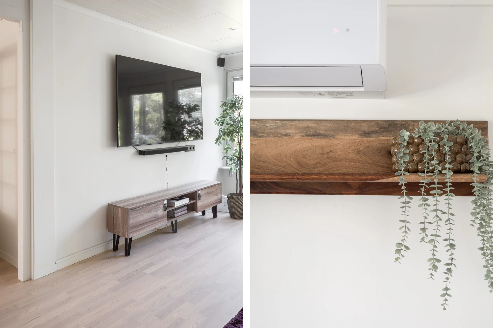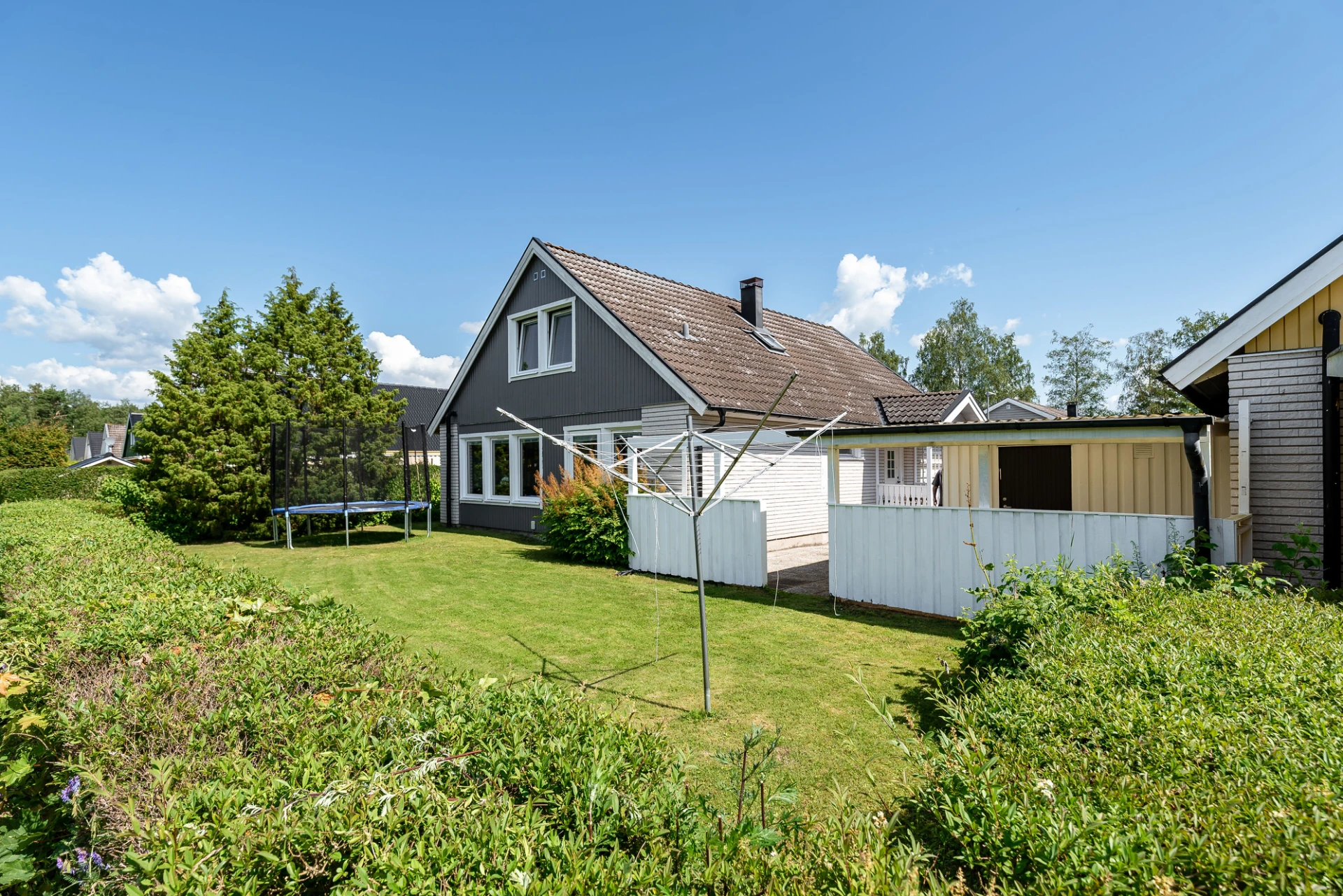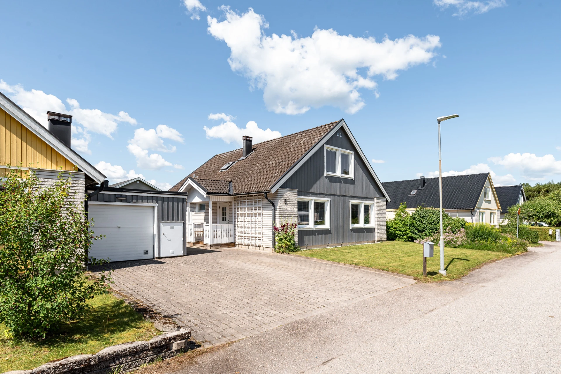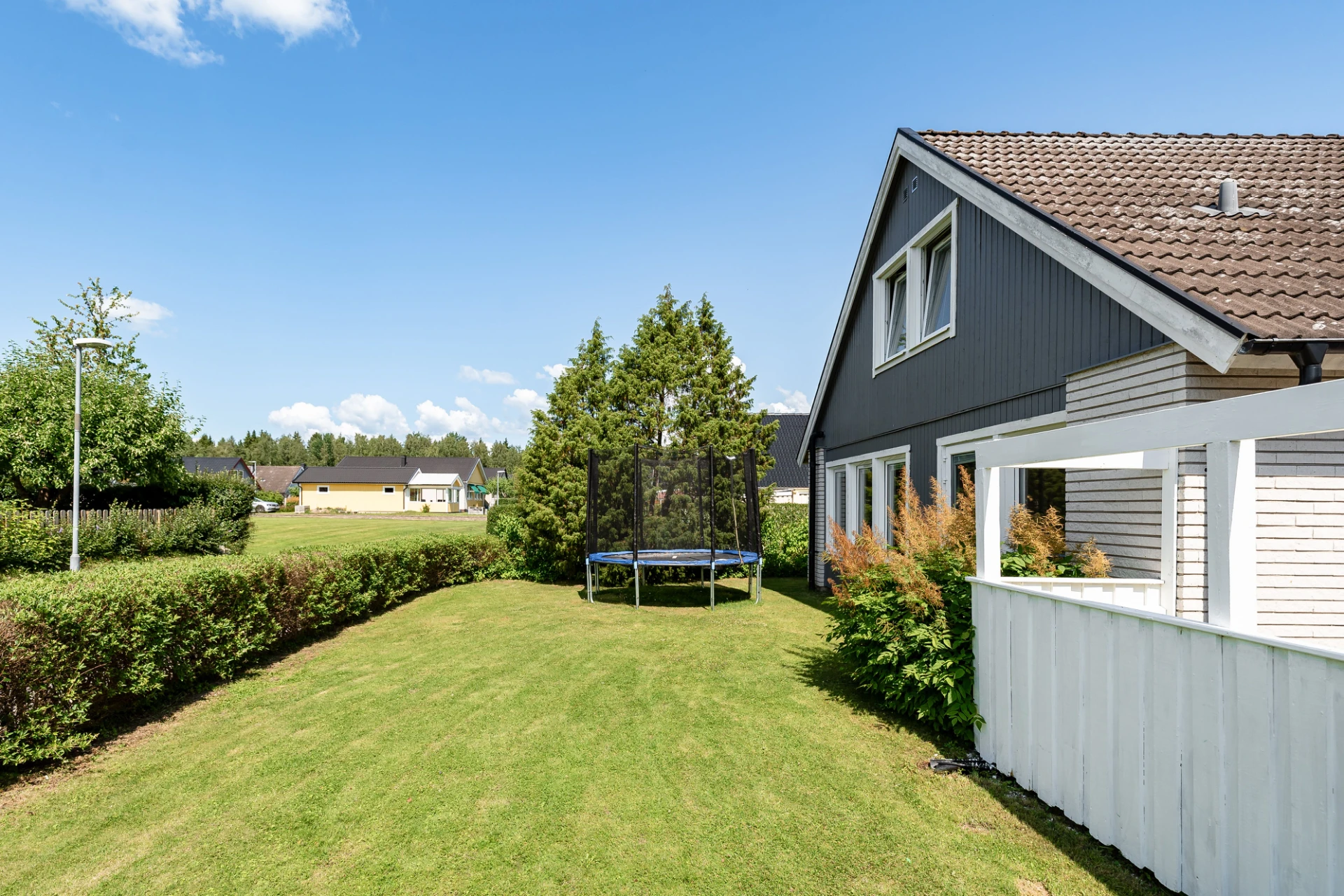 Generöst vardagsrum med härligt ljusinsläpp från stora fönsterpartier. Rummet erbjuder gott om plats för både en inbjudande soffgrupp och ett rymligt matbord – en perfekt samlingspunkt för både vardagsmys och sociala tillställningar. Målade väggar och parkettgolv.
