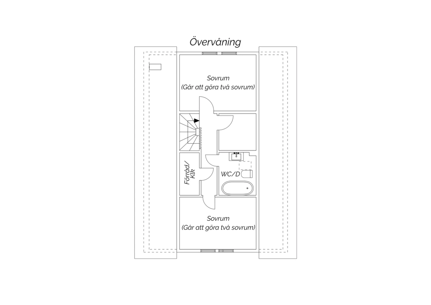 Ett mångsidigt sovrum med utrymme för en enkelsäng och en praktisk arbetshörna. Perfekt som barnrum. Rummet går att dela av till två mindre rum för den som önskar fler sovrum. Målade väggar och parkettgolv.