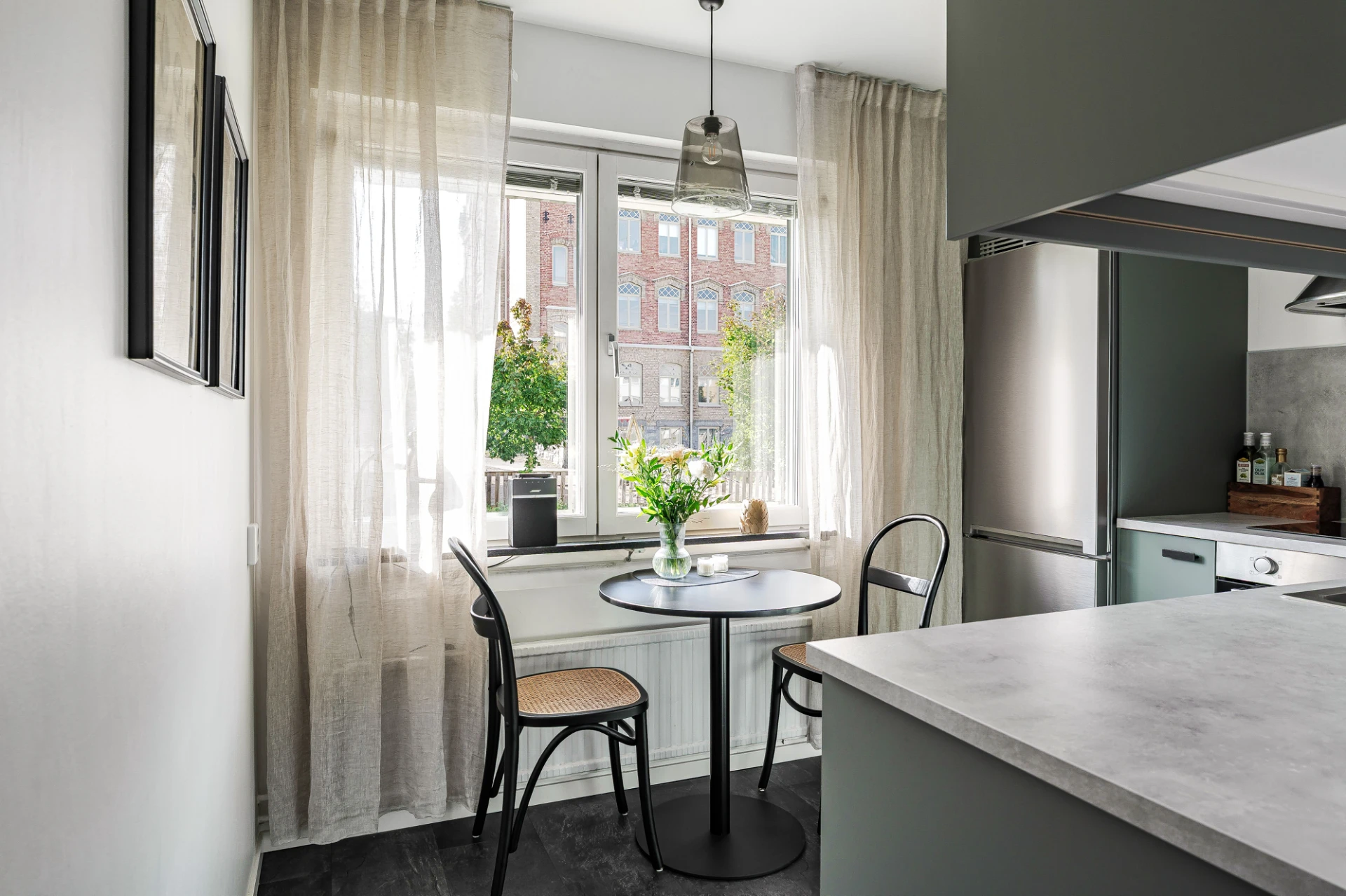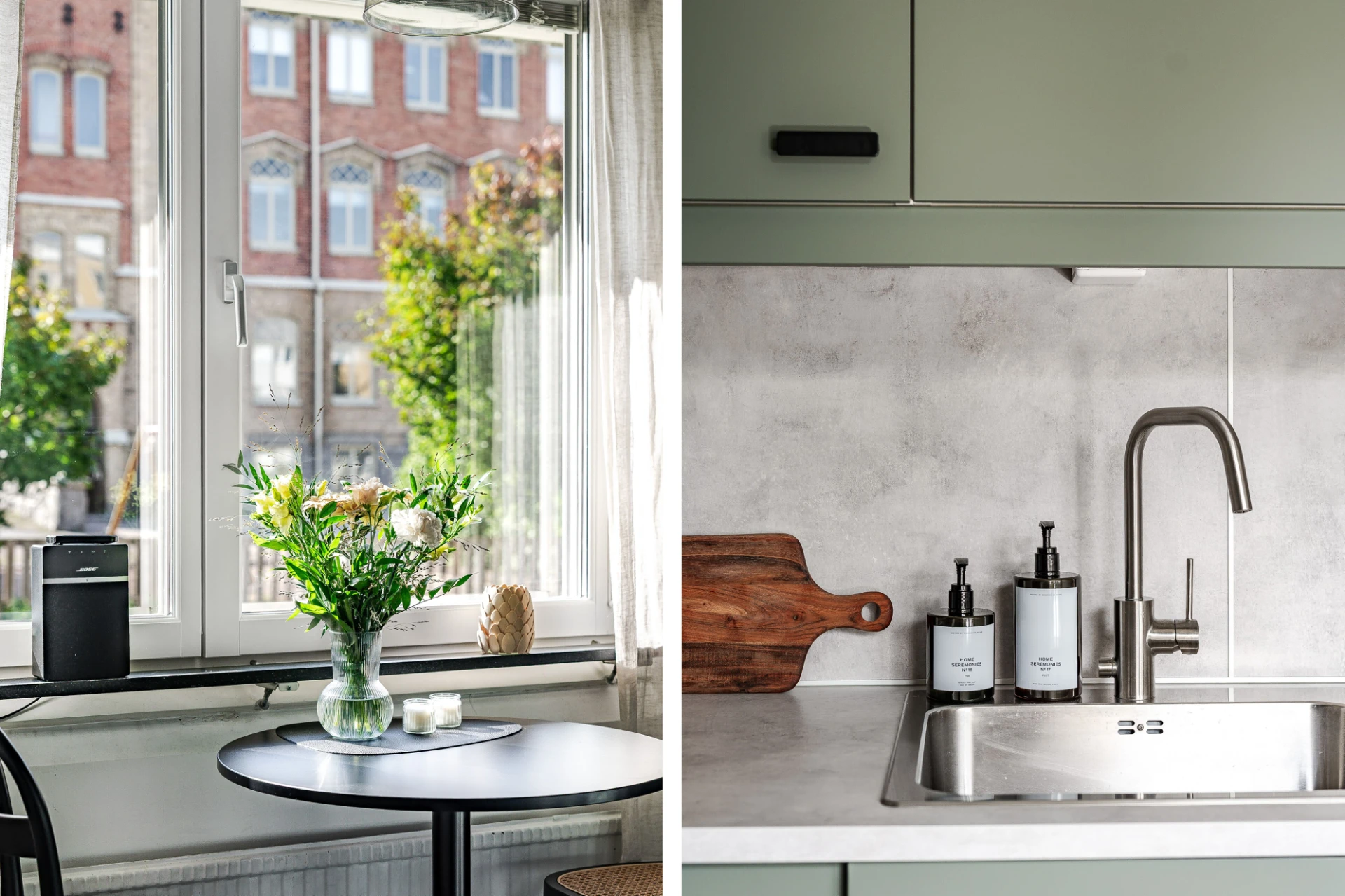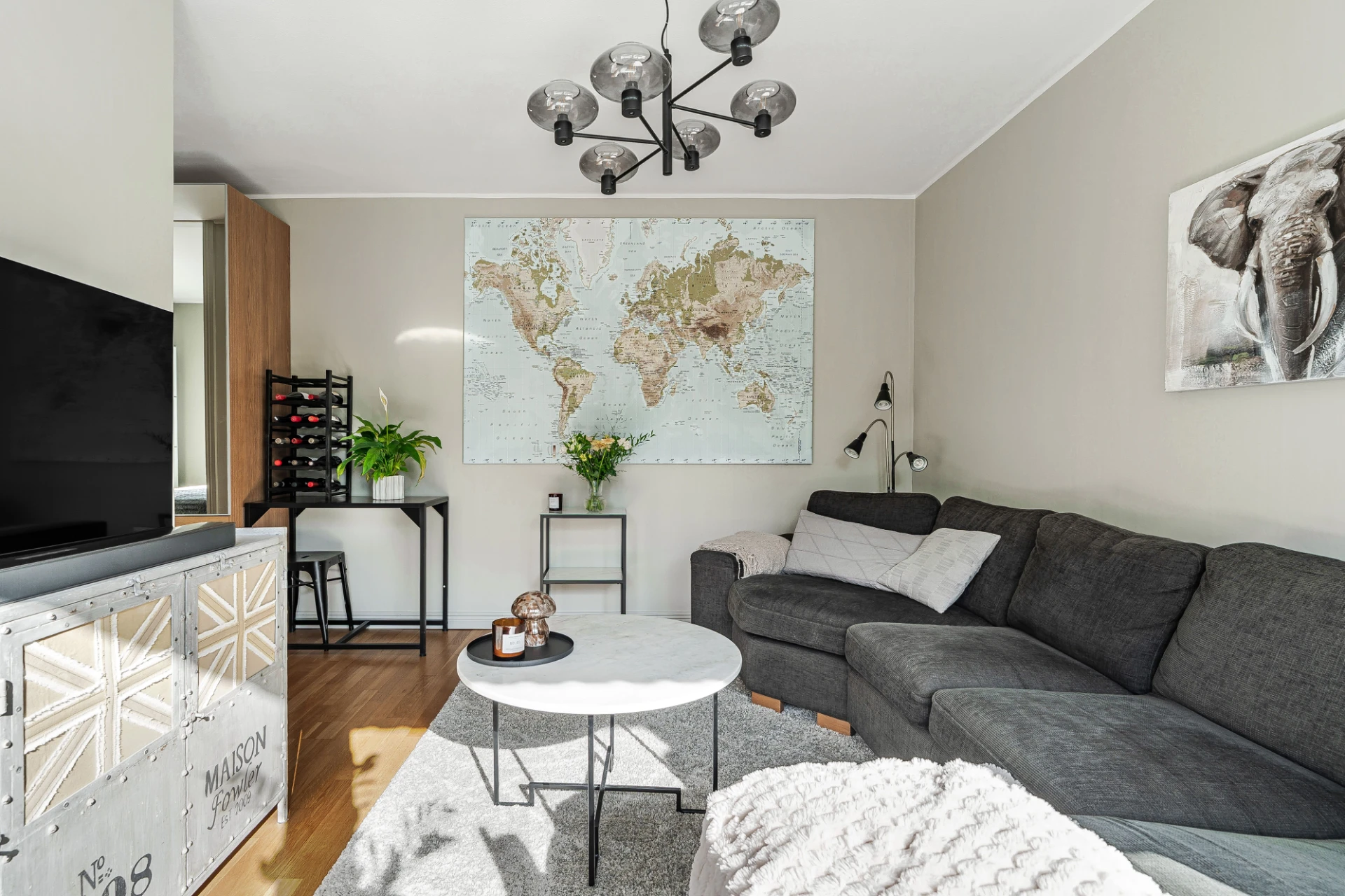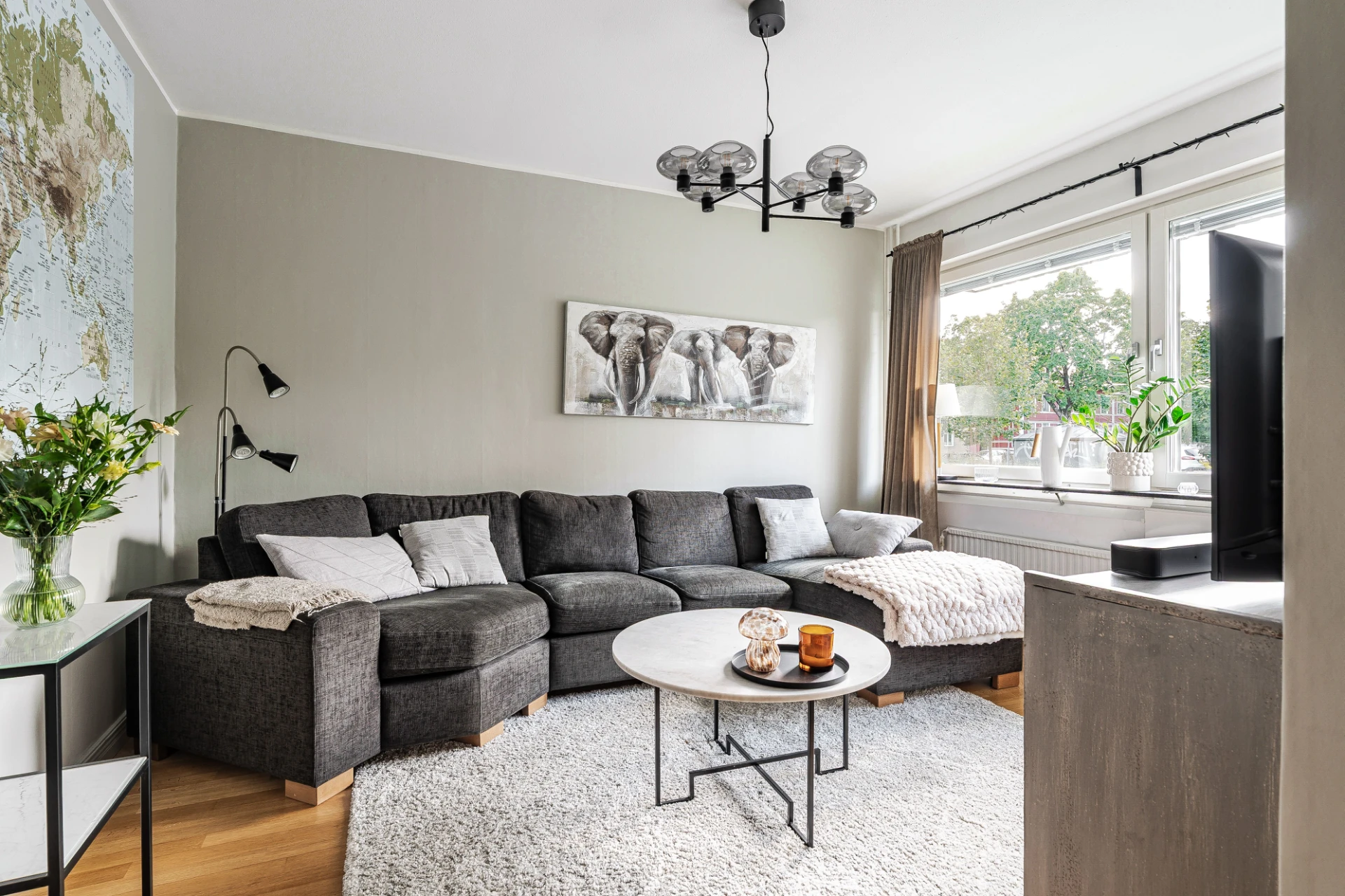 När du kliver in möts du av en välkomnande hall med praktiskt linoleummatta. Köket är stilrent och modernt med gott om arbetsyta, bra förvaring och plats för matbord. Vardagsrummet har ett fint ljusinsläpp, parkettgolv och ytterligare förvaring i garderob. Sovrummet erbjuder bra förvaringsmöjligheter i en garderobsvägg med skjutdörrar. Badrummet är helkaklat och modernt med tidlös känsla.