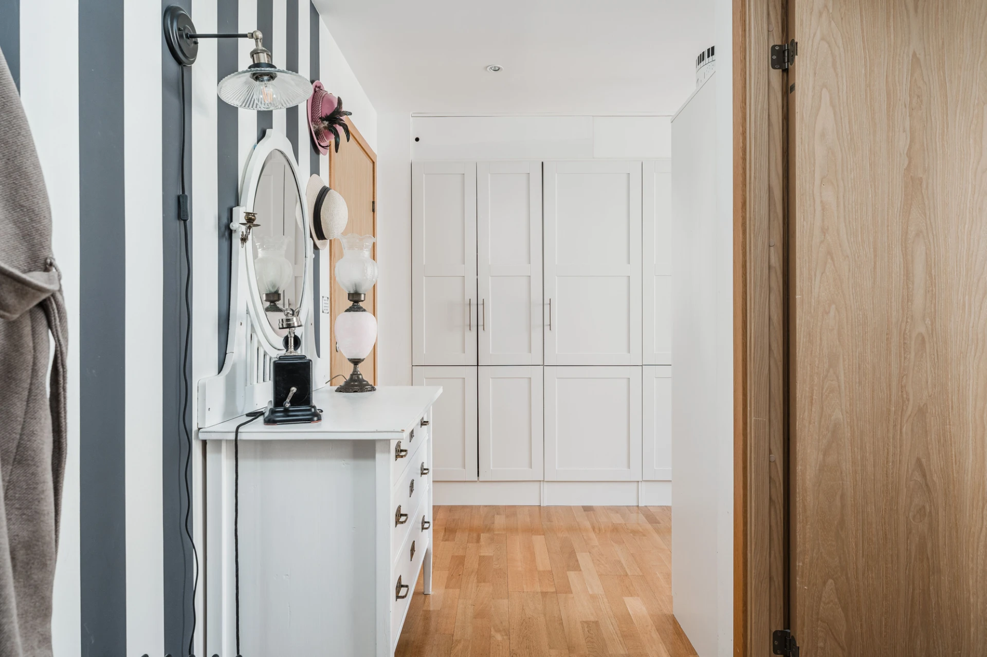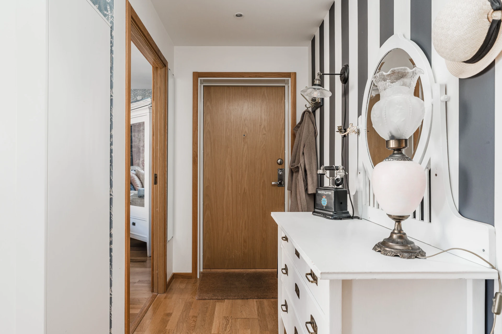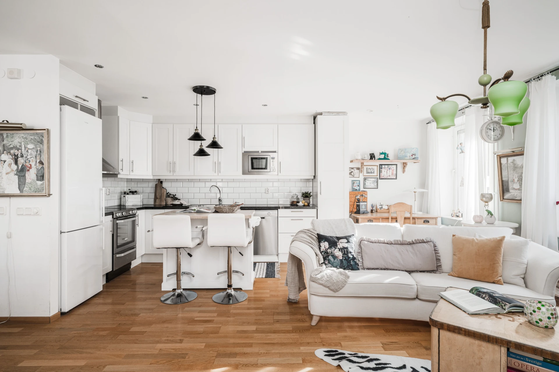 Hallen är rymlig med gott om plats för avhängning. Köket är ljust och funktionellt med bra förvaringsutrymmen och en trivsam köksö med sittplats. Köket har öppen planlösning mot det generösa vardagsrummet som är lättmöblerat och rymmer både soffgrupp och matsalsmöbler. Härifrån når du den nyligen inglasade balkongen i nordväst-läge, en perfekt plats för avkoppling i kvällssolen. Sovrummet är stort och har smart förvaring i garderober. Badrummet är helkaklat och modernt, komplett med både tvättmaskin och torktumlare för en smidig vardag.