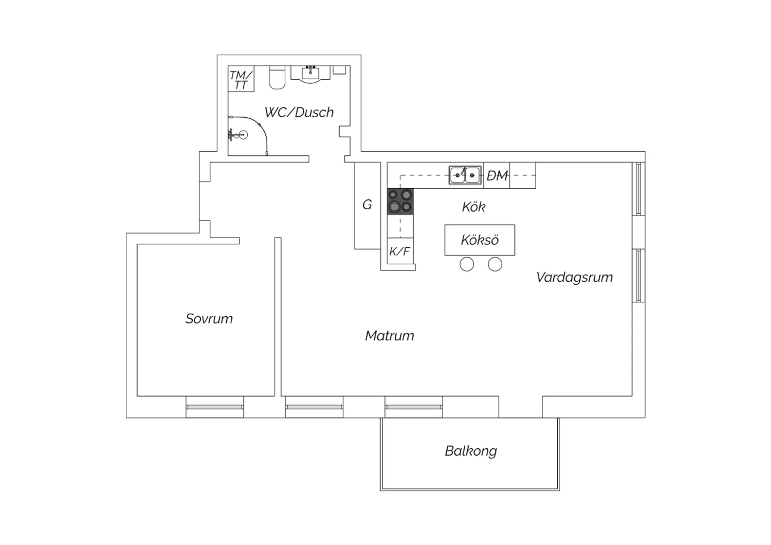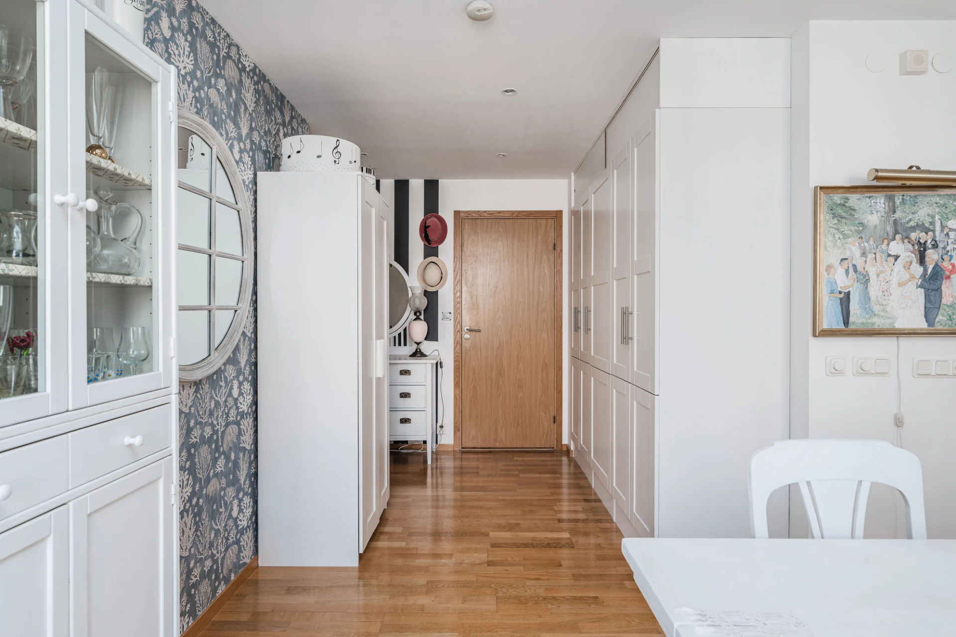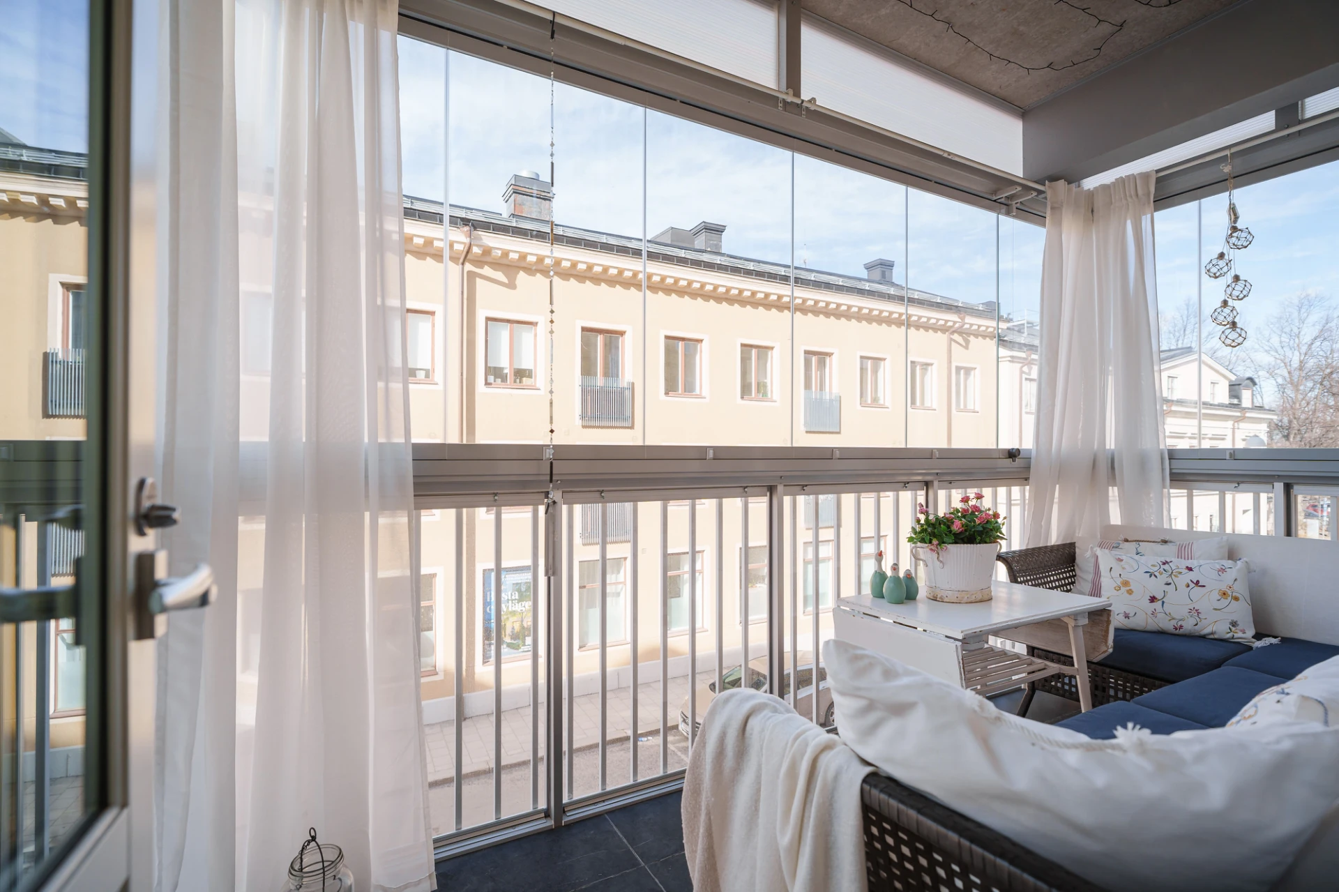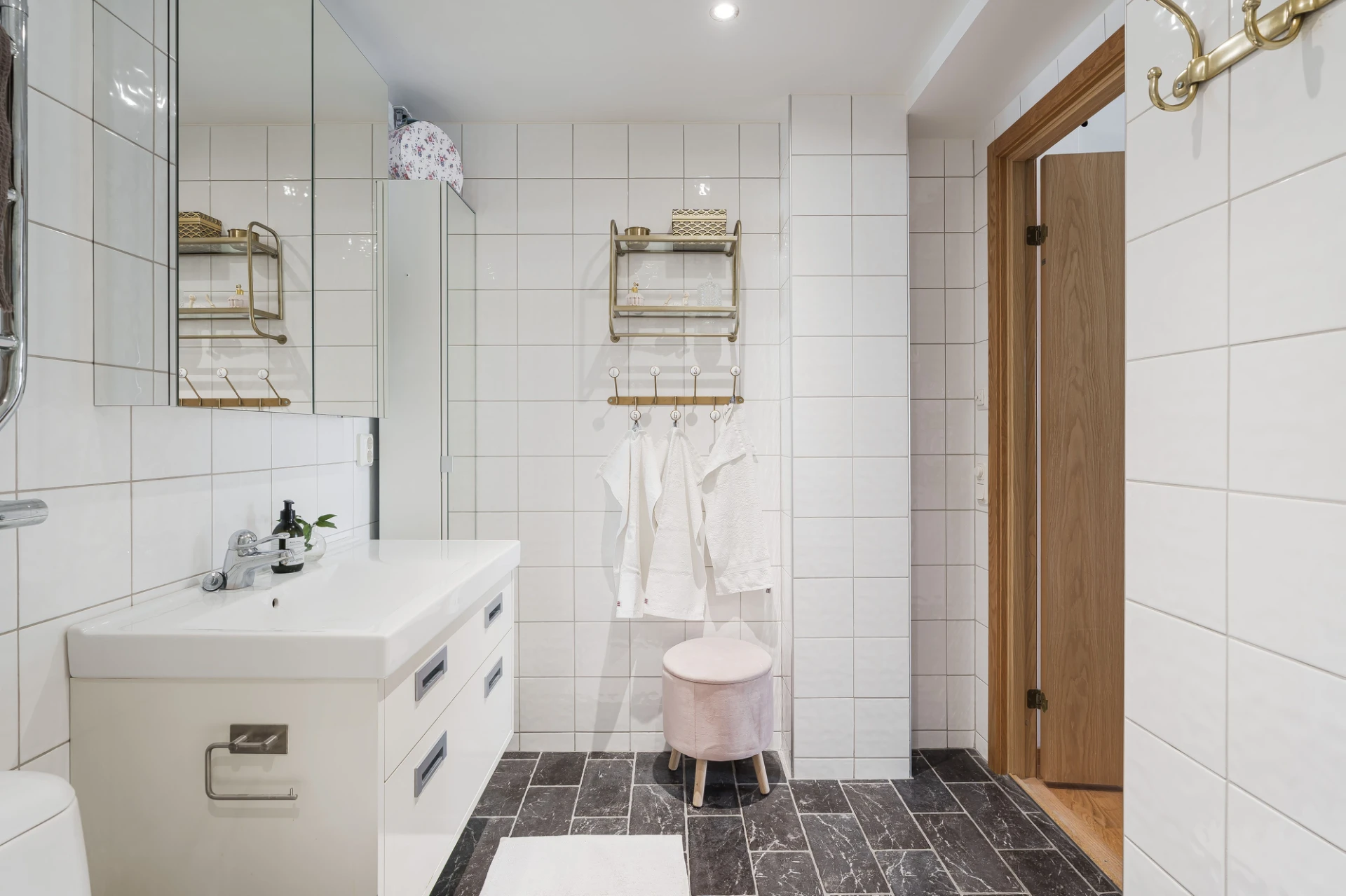 Hallen är rymlig med gott om plats för avhängning. Köket är ljust och funktionellt med bra förvaringsutrymmen och en trivsam köksö med sittplats. Köket har öppen planlösning mot det generösa vardagsrummet som är lättmöblerat och rymmer både soffgrupp och matsalsmöbler. Härifrån når du den nyligen inglasade balkongen i nordväst-läge, en perfekt plats för avkoppling i kvällssolen. Sovrummet är stort och har smart förvaring i garderober. Badrummet är helkaklat och modernt, komplett med både tvättmaskin och torktumlare för en smidig vardag.