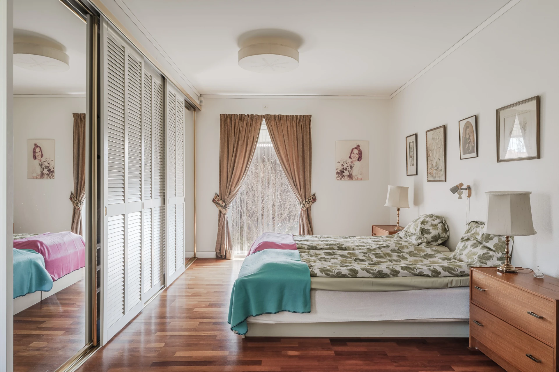 Parkettgolv med vattenburen golvvärme och ljusa väggar. Här finns plats för säng med tillhörande möblemang samt skrivbordshörna. Förvaring i platsbyggd garderob med skjutdörrar i spegelglas.