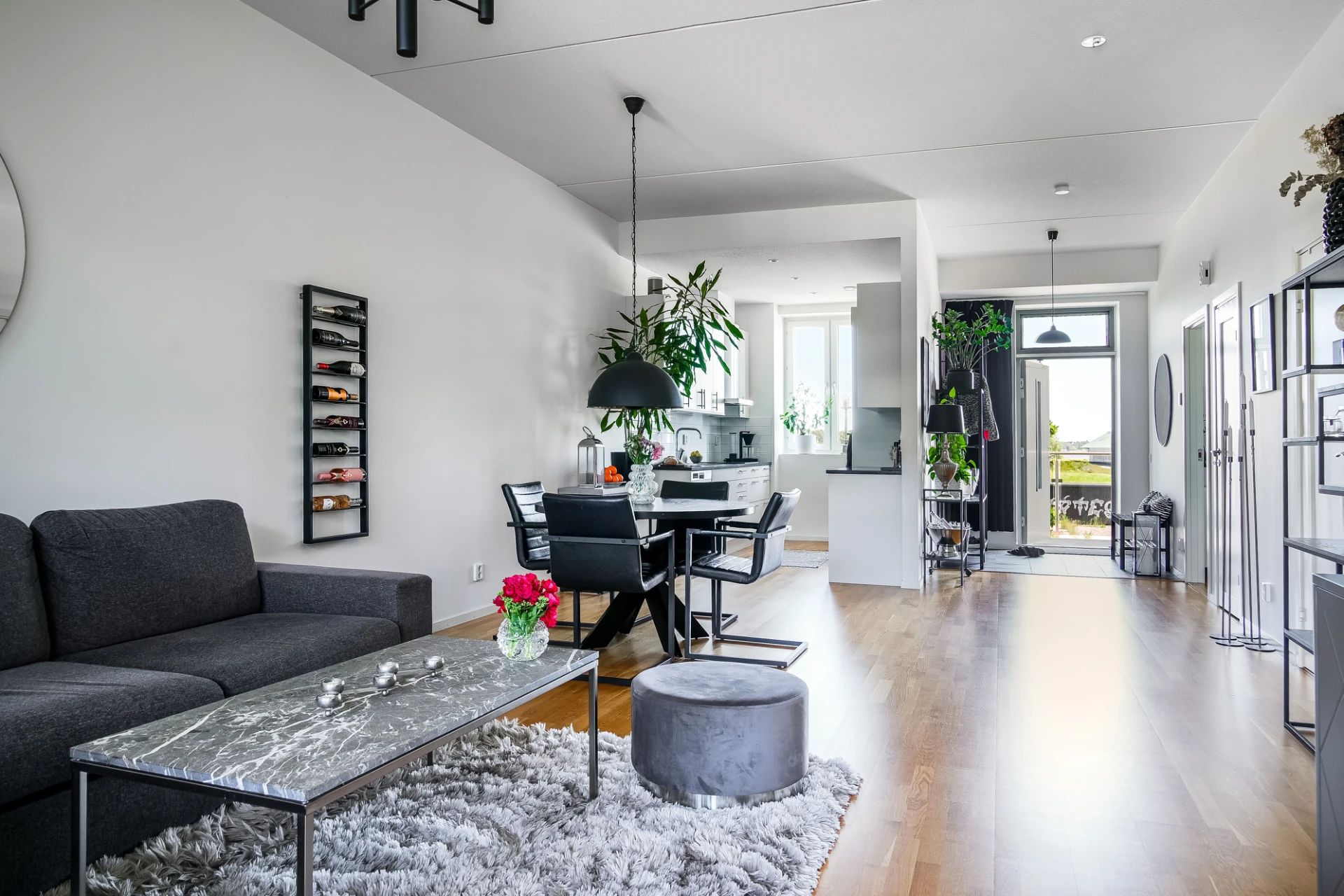 Välkommen till denna ljusa och välplanerade 3 rok med en generös takhöjd på hela 3 meter och en öppen planlösning som skapar en härligt luftig och inbjudande känsla. Här möts du av ett hem med genomtänkta detaljer, golvvärme och stora fönsterpartier som släpper in ett fantastiskt ljus från morgon till kväll.