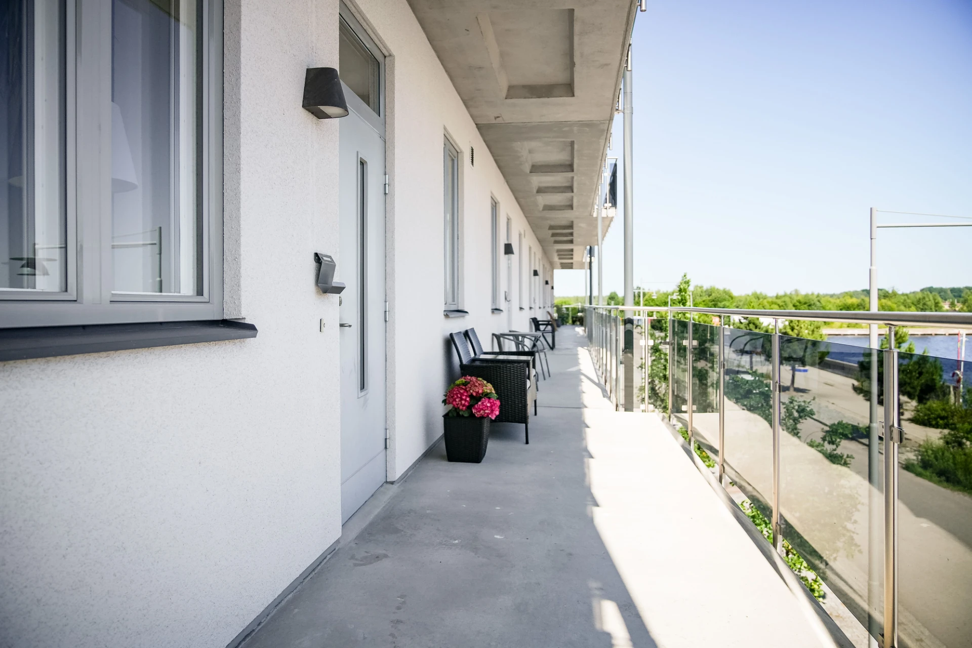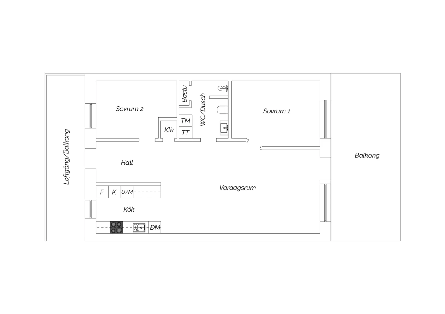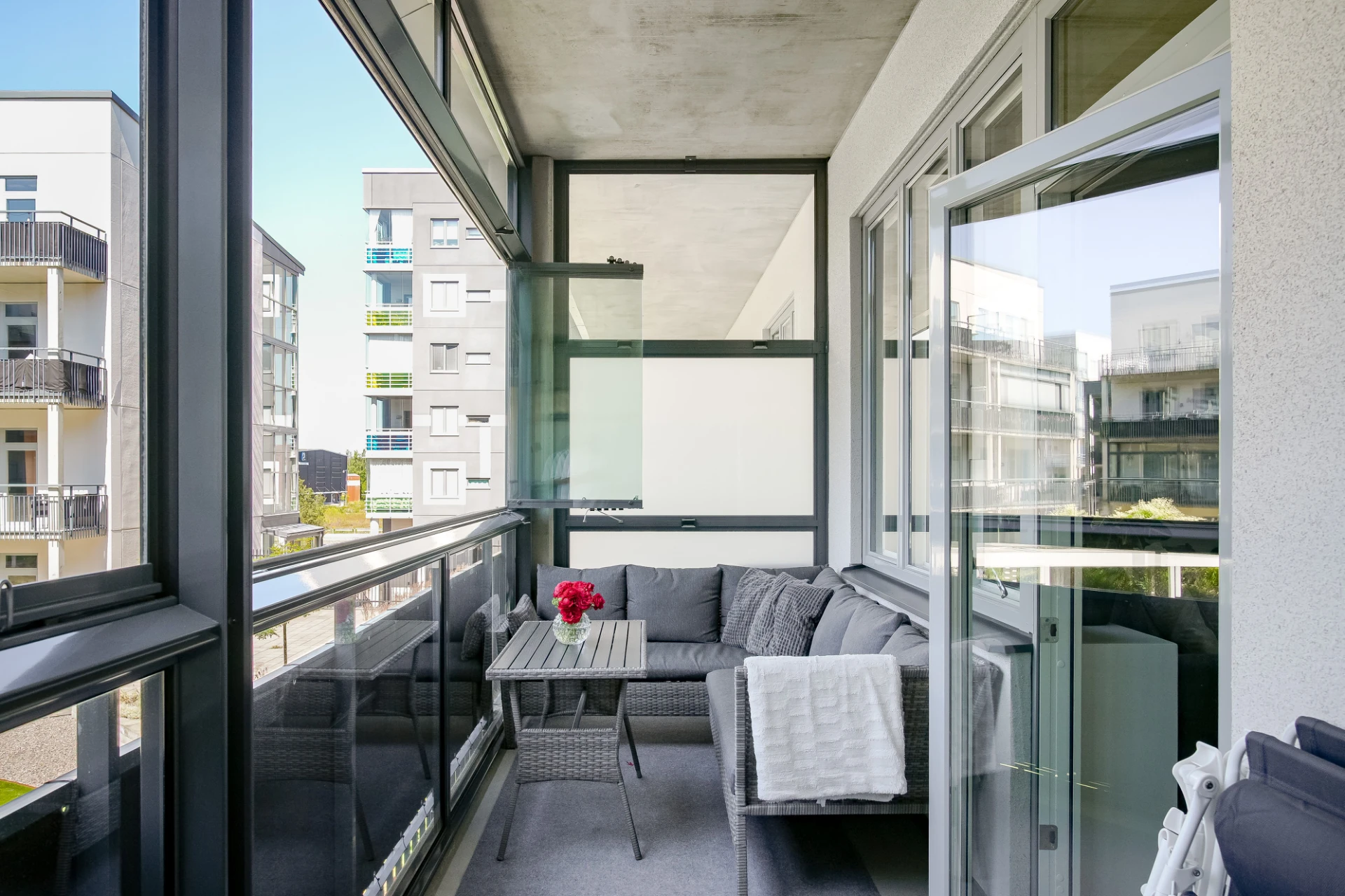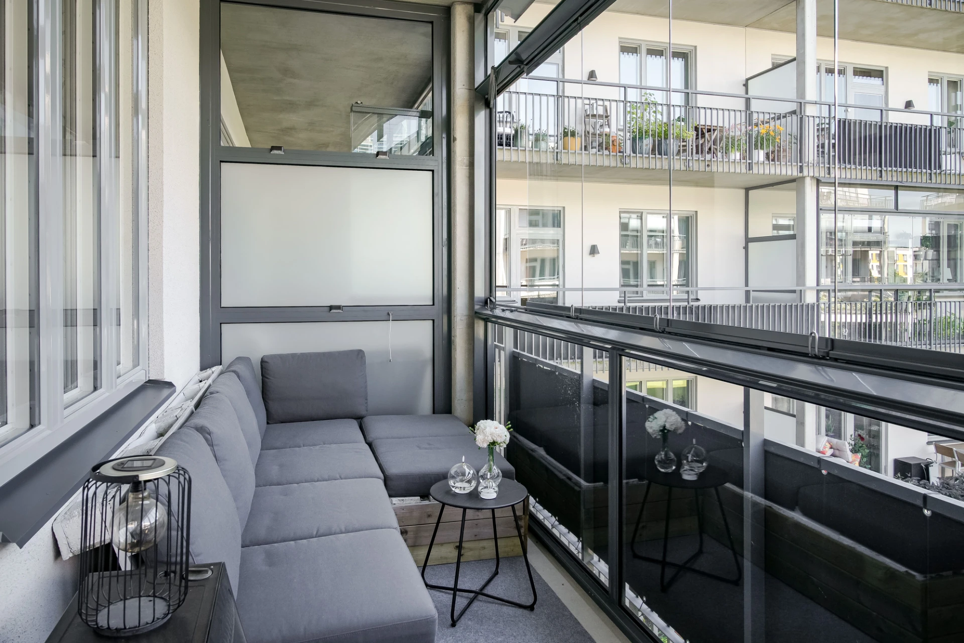 Lägenheten erbjuder dubbla uteplatser i perfekt solläge, en inglasad balkong mot den lugna innergården med eftermiddags- och kvällssol, samt en härlig loftgång på framsidan med morgon- och förmiddagssol och utsikt mot havet. Loftgången är extra bred just här, vilket gör den möjlig att inreda och använda som en generös extrayta. Det rymliga vardagsrummet och köket binds samman i en öppen och social planlösning. Från vardagsrummet når du den stora västvända inglasade balkongen, där du kan njuta av solen från lunch till solnedgång och utsikten mot naturen omkring. Bostaden rymmer två välplanerade sovrum och ett stilrent, helkaklat duschrum utrustat med dusch, tvättmaskin och torktumlare samt en lyxig IR-bastu för extra vardagslyx.