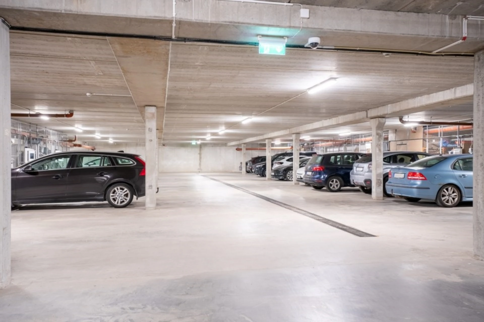 Varje lägenhet har en garageplats som tillhör lägenheten. Vid garageplatsen finns källarförrådet till lägenheten. Varje garageplats har möjlighet till elbilsladdning (3 fas/11kW).