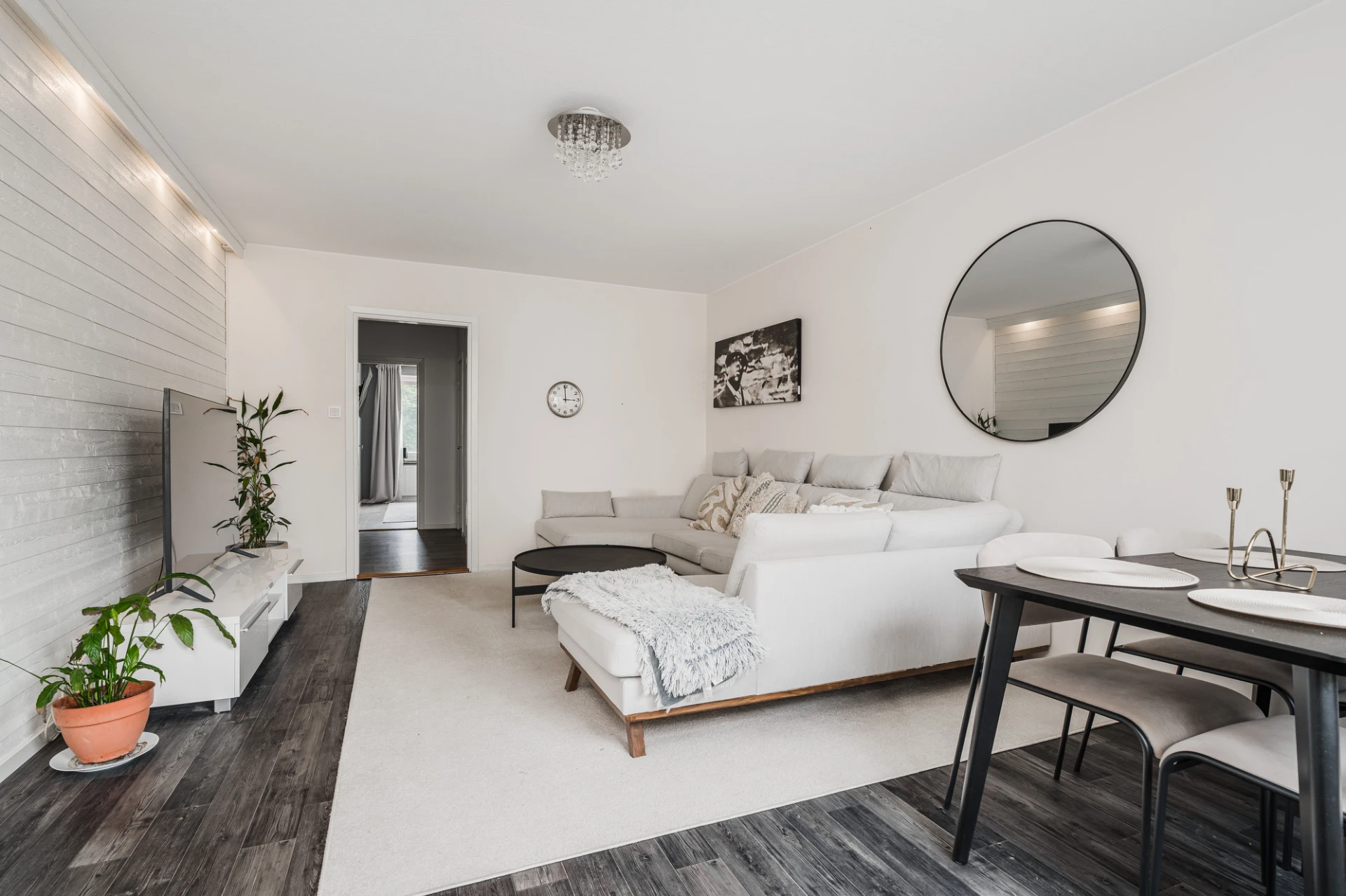 Välkommen till ett hem där allt faller på plats. Här möts du av en modern och trivsam bostad som erbjuder både smarta lösningar och stilfulla ytor.