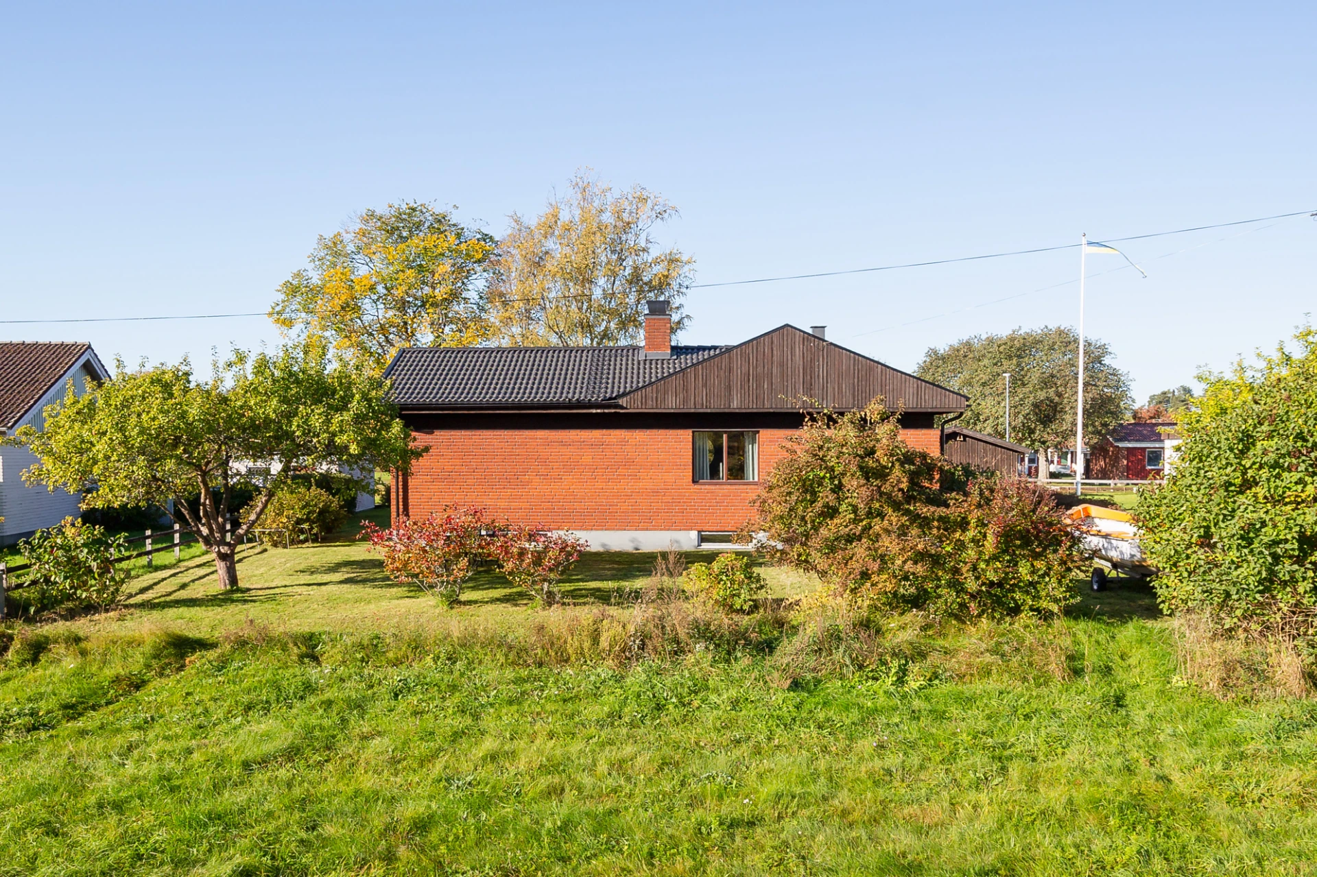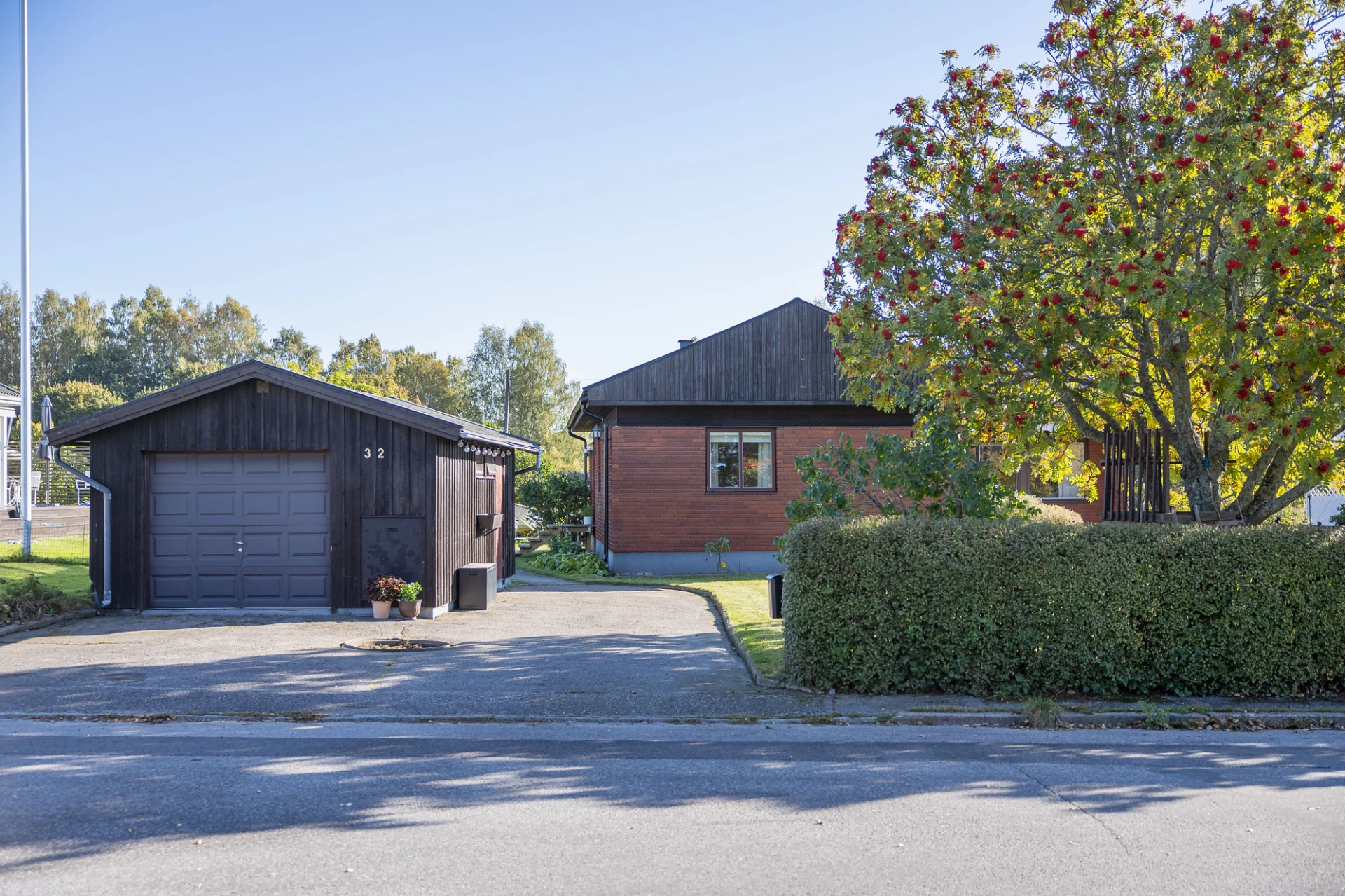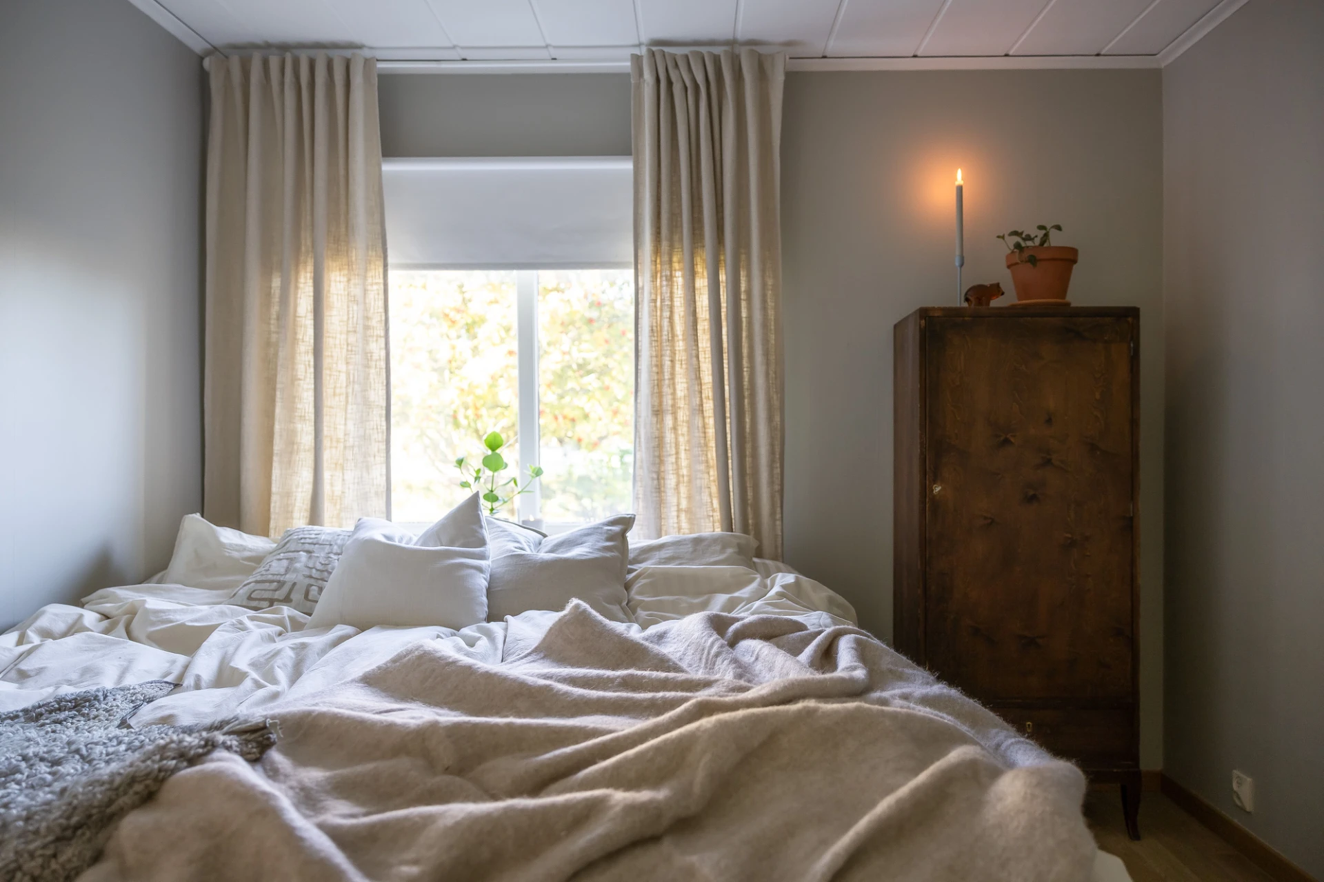 Laminatgolv och beiga väggar. Här finns plats för säng med tillhörande möblemang. Förvaring i platsbyggd garderob.