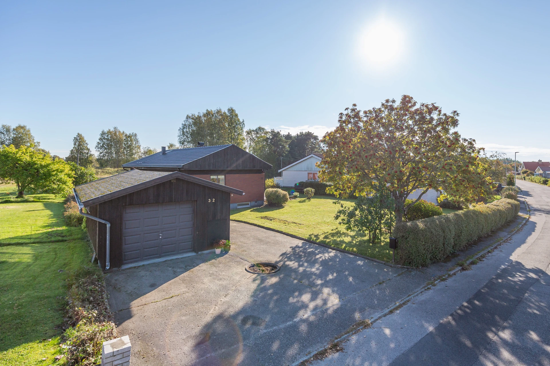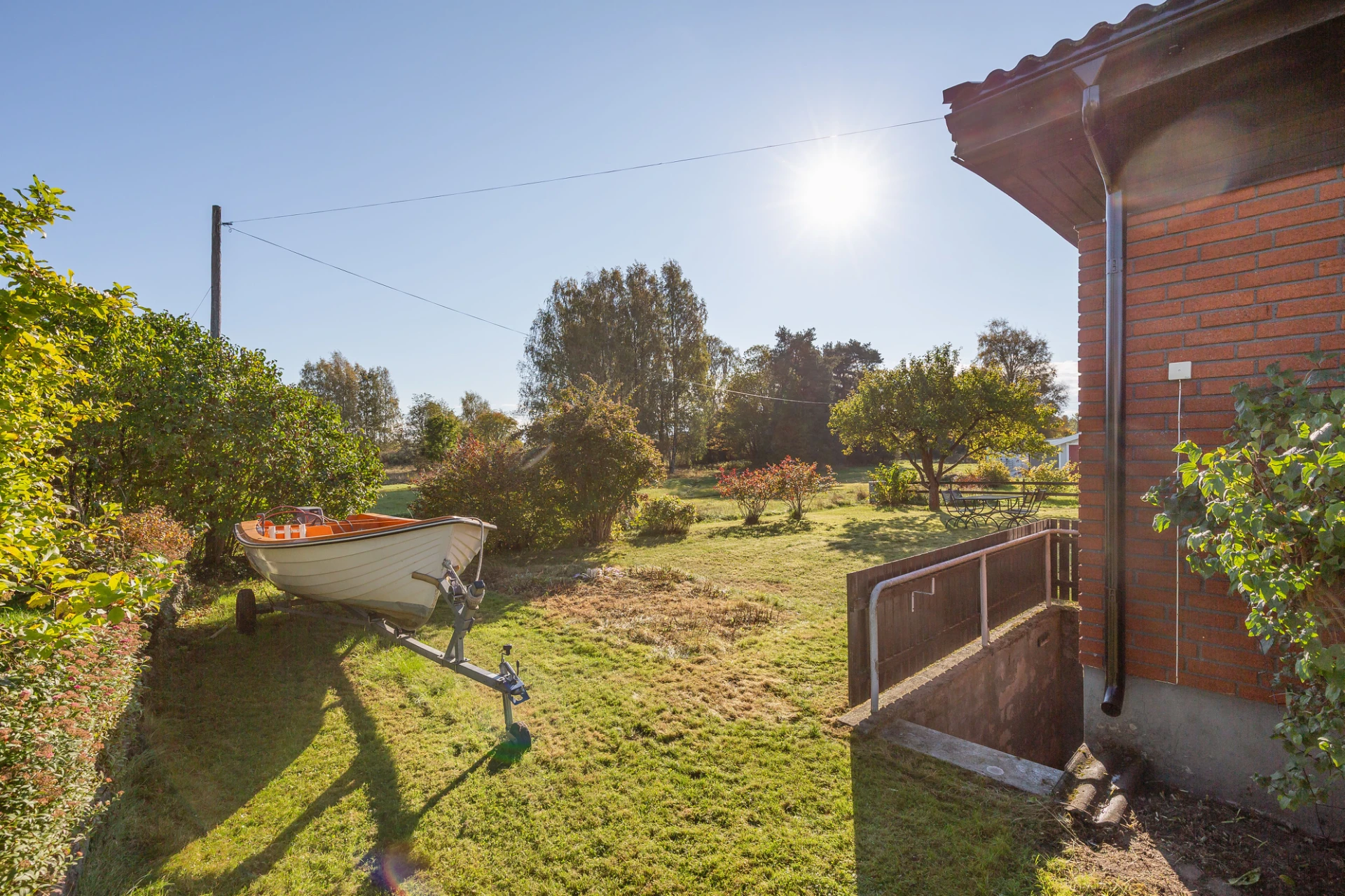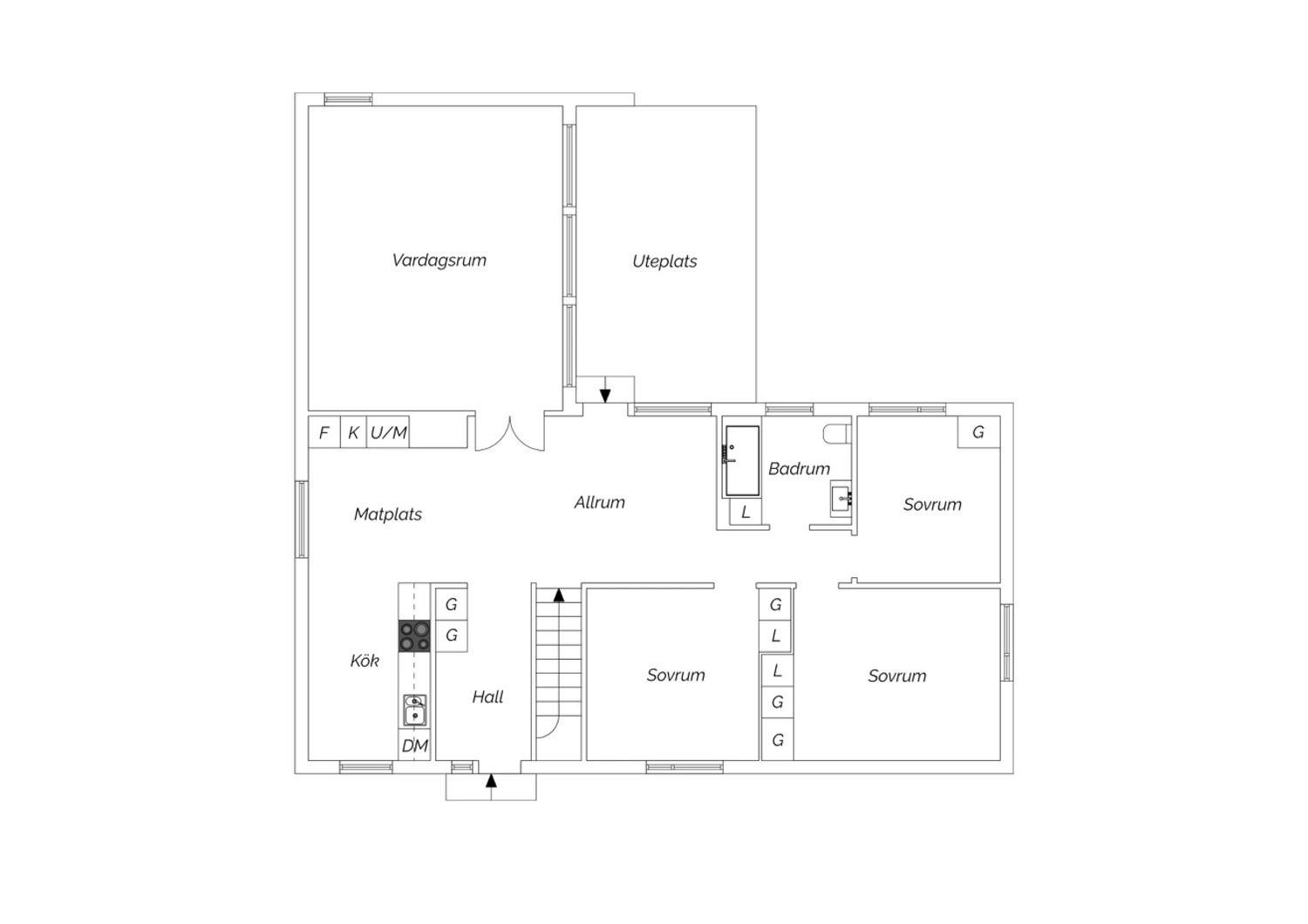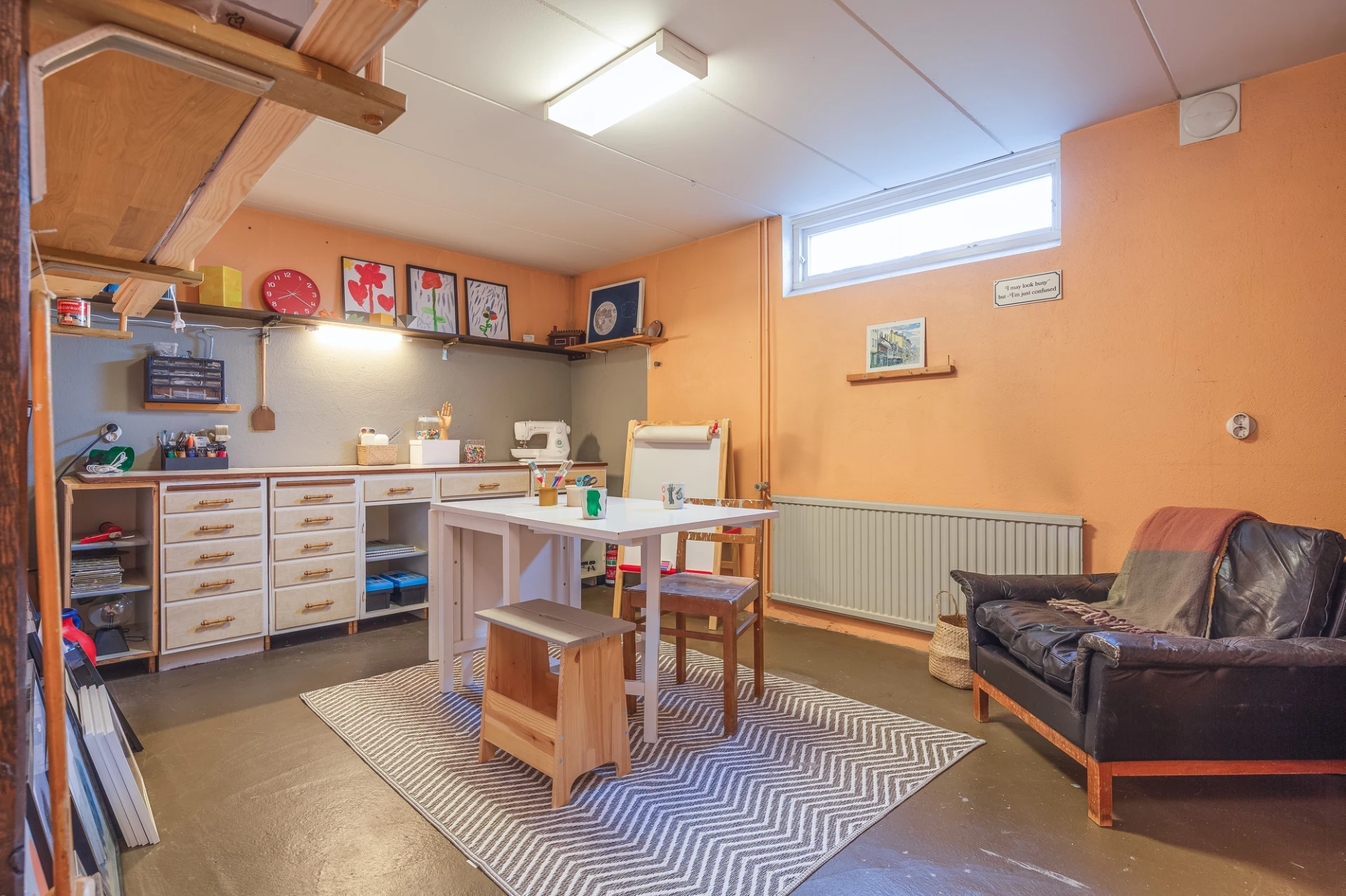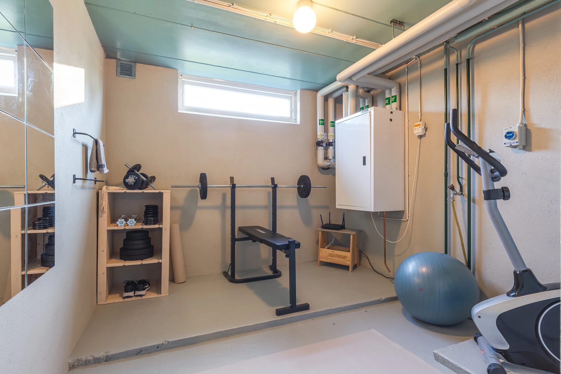 Betonggolv och ljusa väggar.