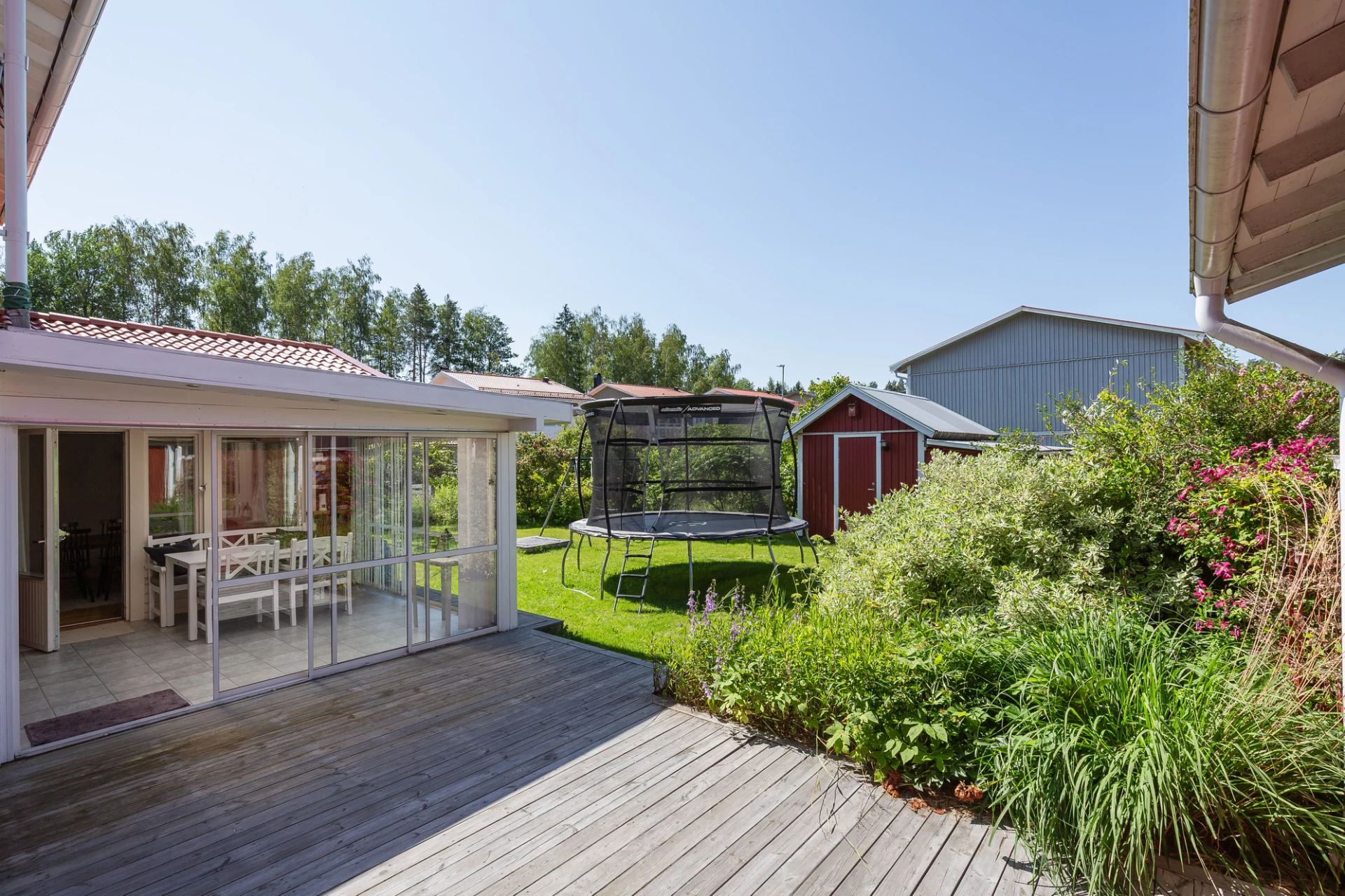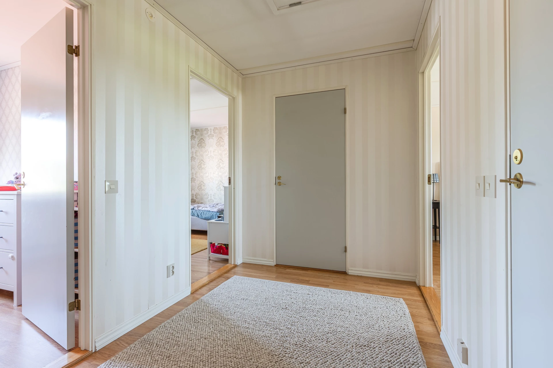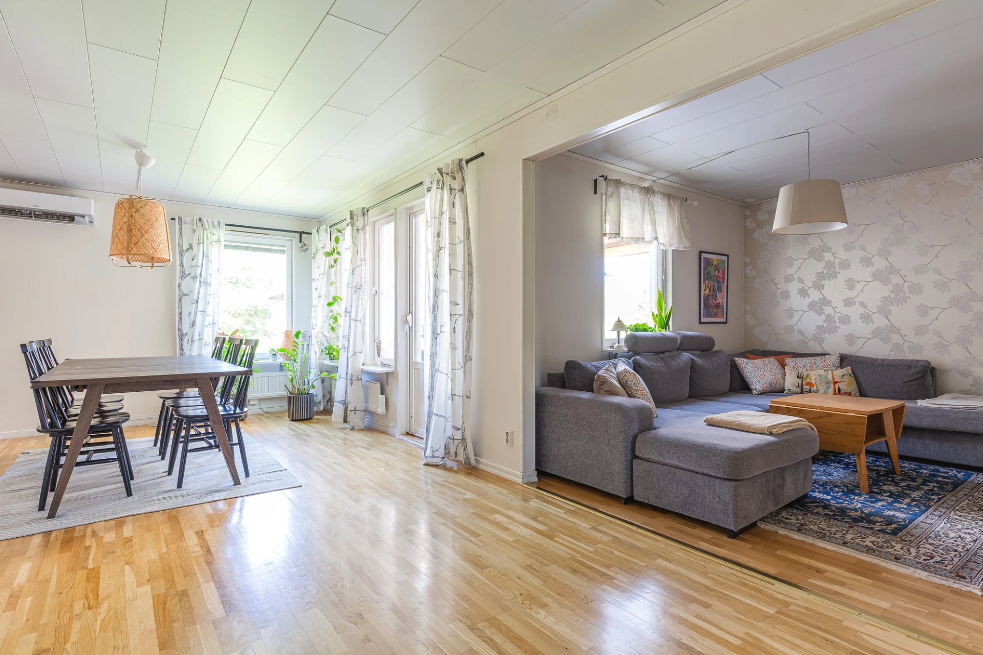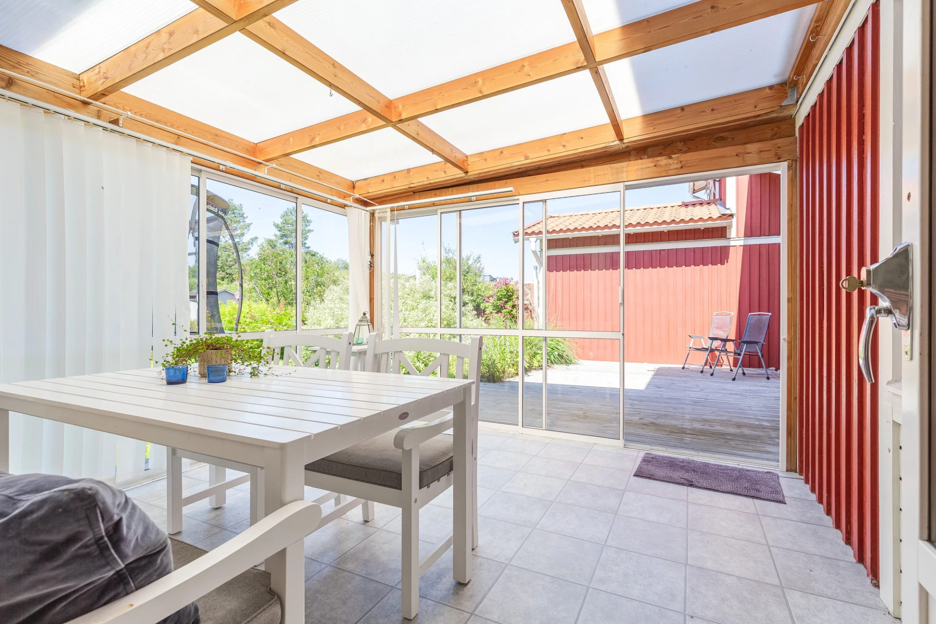 Bostaden är smakfullt fördelad på två våningsplan och erbjuder genomtänkta ytor för hela familjen. Entréplan välkomnar med en rymlig och generös hall som leder vidare till ett luftigt matrum med braskamin. Härifrån når du det inglasade uterummet och det generösa soldäcket, perfekta platser för sommarens middagar och lata dagar i solen. Den öppna planlösningen mellan matrum och vardagsrum skapar en social och trivsam känsla. För den som har behov av ett extra sovrum finns här också en utmärkt möjlighet att sätta upp en vägg och på så vis skapa ett fjärde sovrum, utan att kompromissa med bostadens funktionalitet. Det stilrena köket är funktionellt med goda förvaringsmöjligheter och plats för matbord. På entréplanet finns även ett helkaklat duschrum samt en praktisk tvättstuga med groventré. På övre plan hittar du tre sovrum varav ett med utgång till balkong, perfekt plats för morgonkaffet. Här finns även en klädkammare och ett badrum.